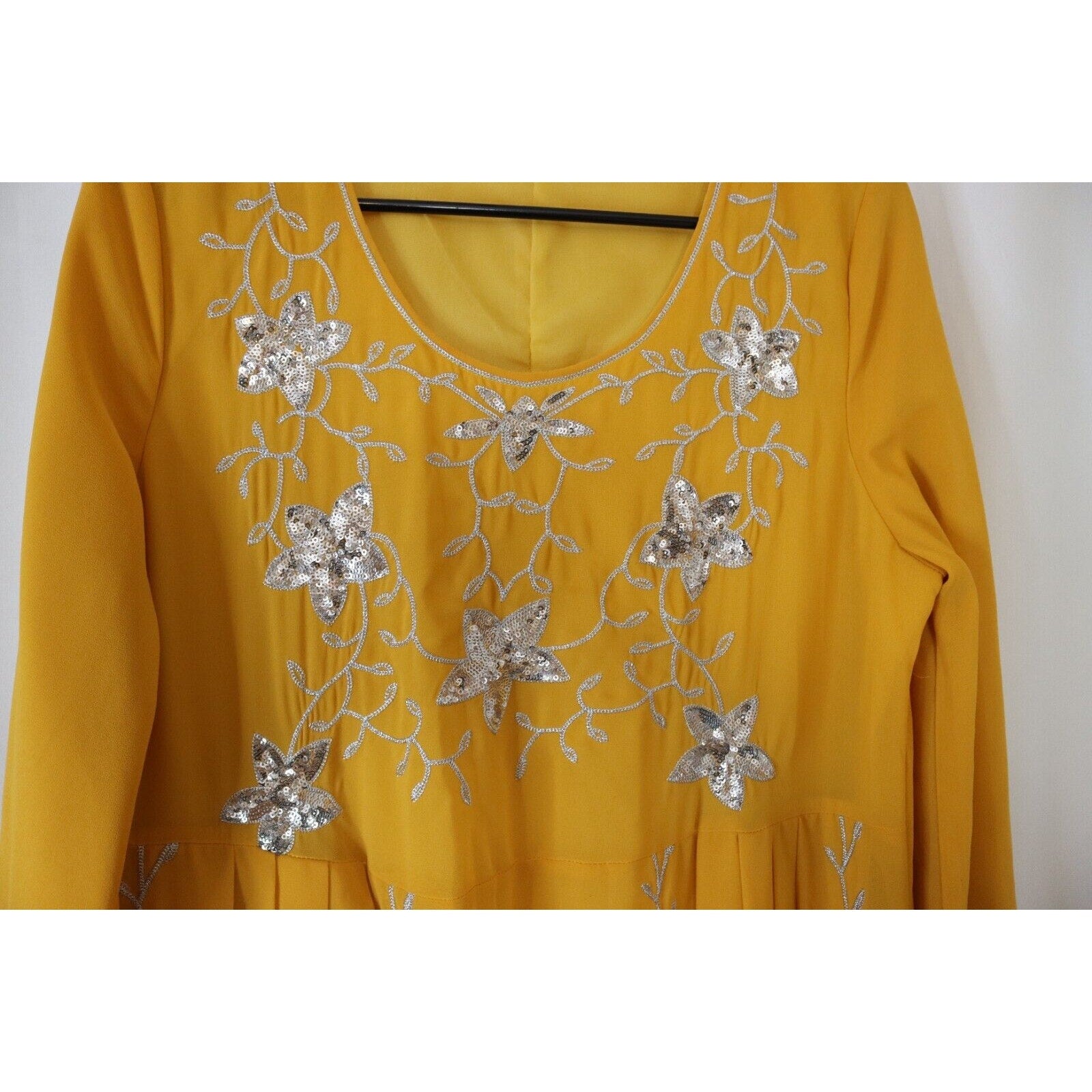 Why you'll love it: This abaya is a showstopper! The gorgeous yellow hue is perfect for adding a pop of color to your wardrobe. The long sleeves and full lining provide both comfort and a sense of elegance, making it suitable for a variety of events. The flowing maxi length creates a graceful silhouette that you'll adore.