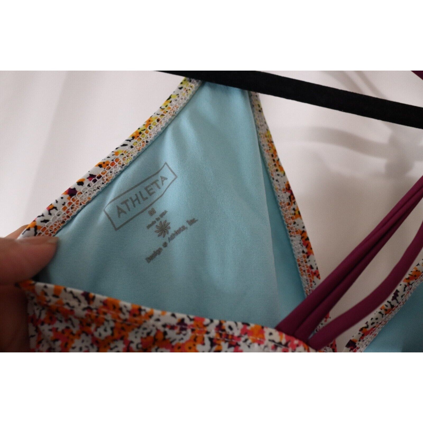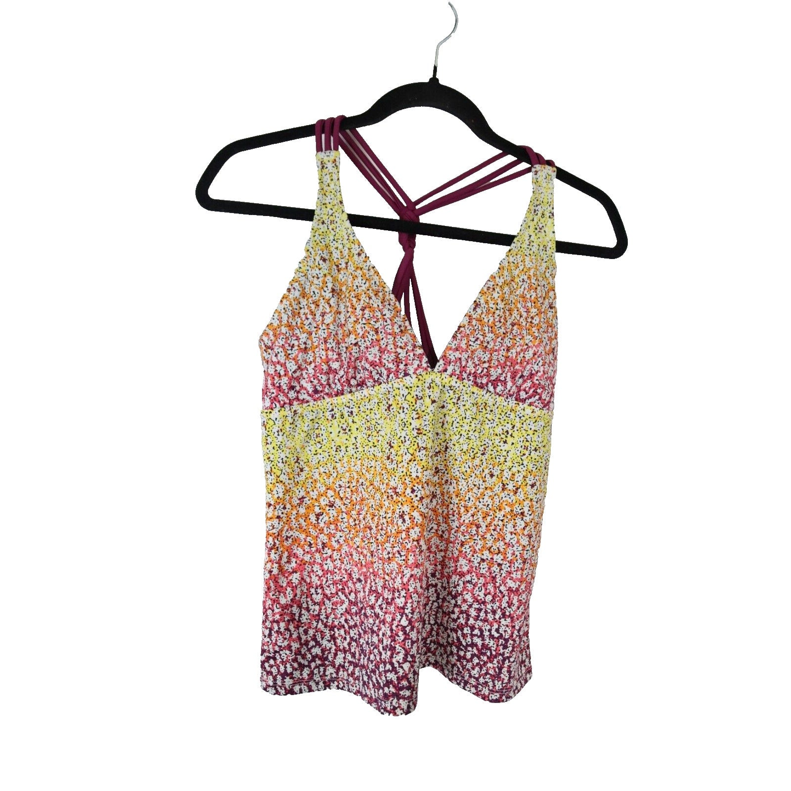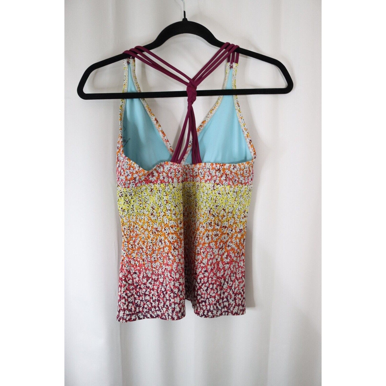 Stay stylish and comfortable during workouts with this Athleta Activewear Racerback Top. Designed for performance, this top features a breathable and moisture-wicking fabric that keeps you cool and dry. The racerback design allows for full range of motion. The multicolor pattern adds a vibrant and sporty touch to your activewear collection. No padding.