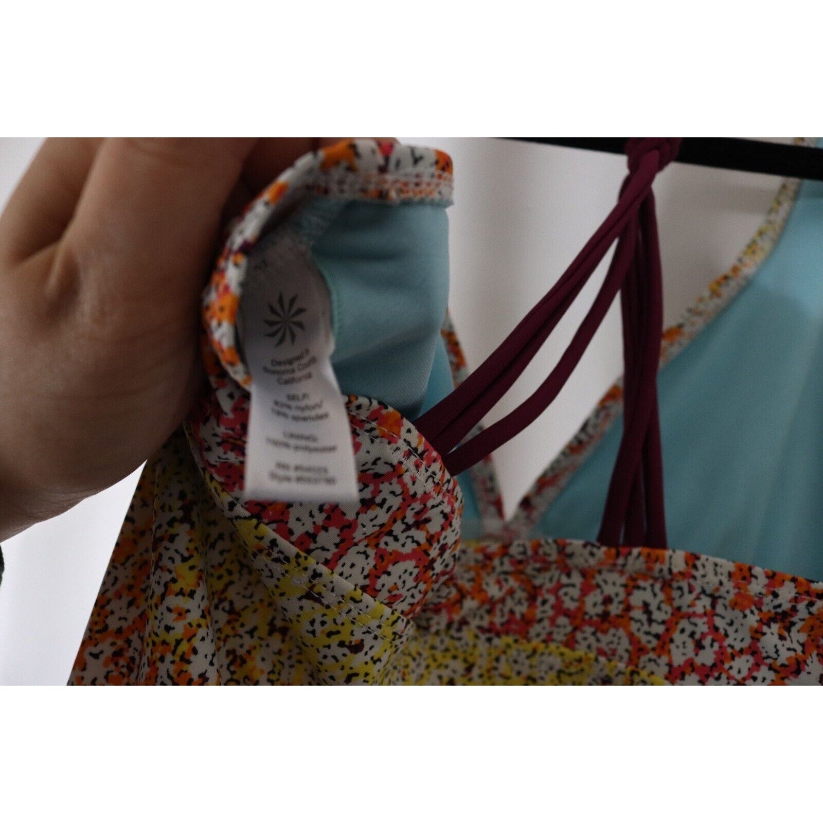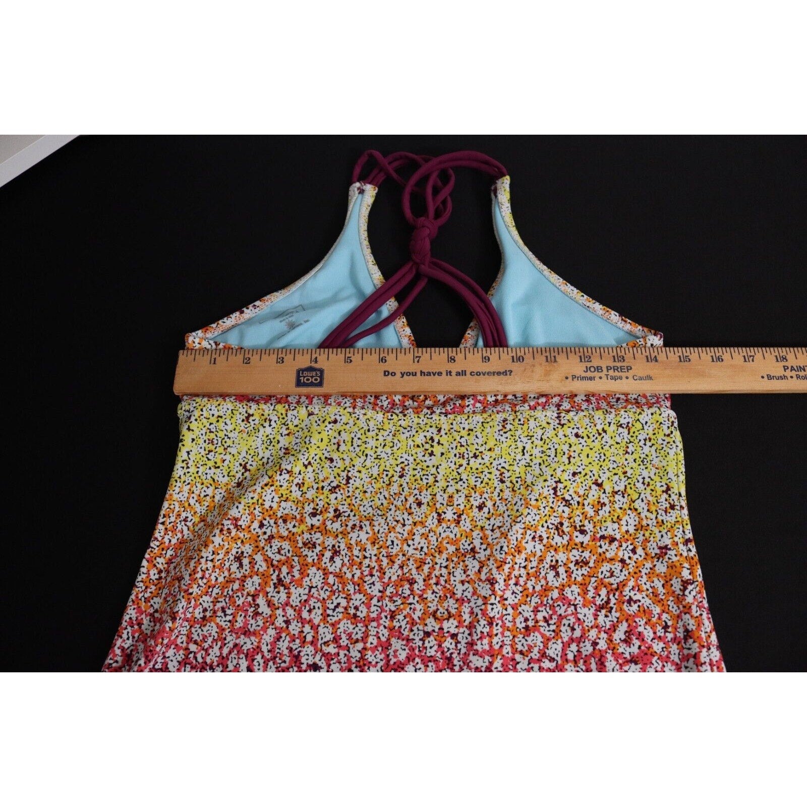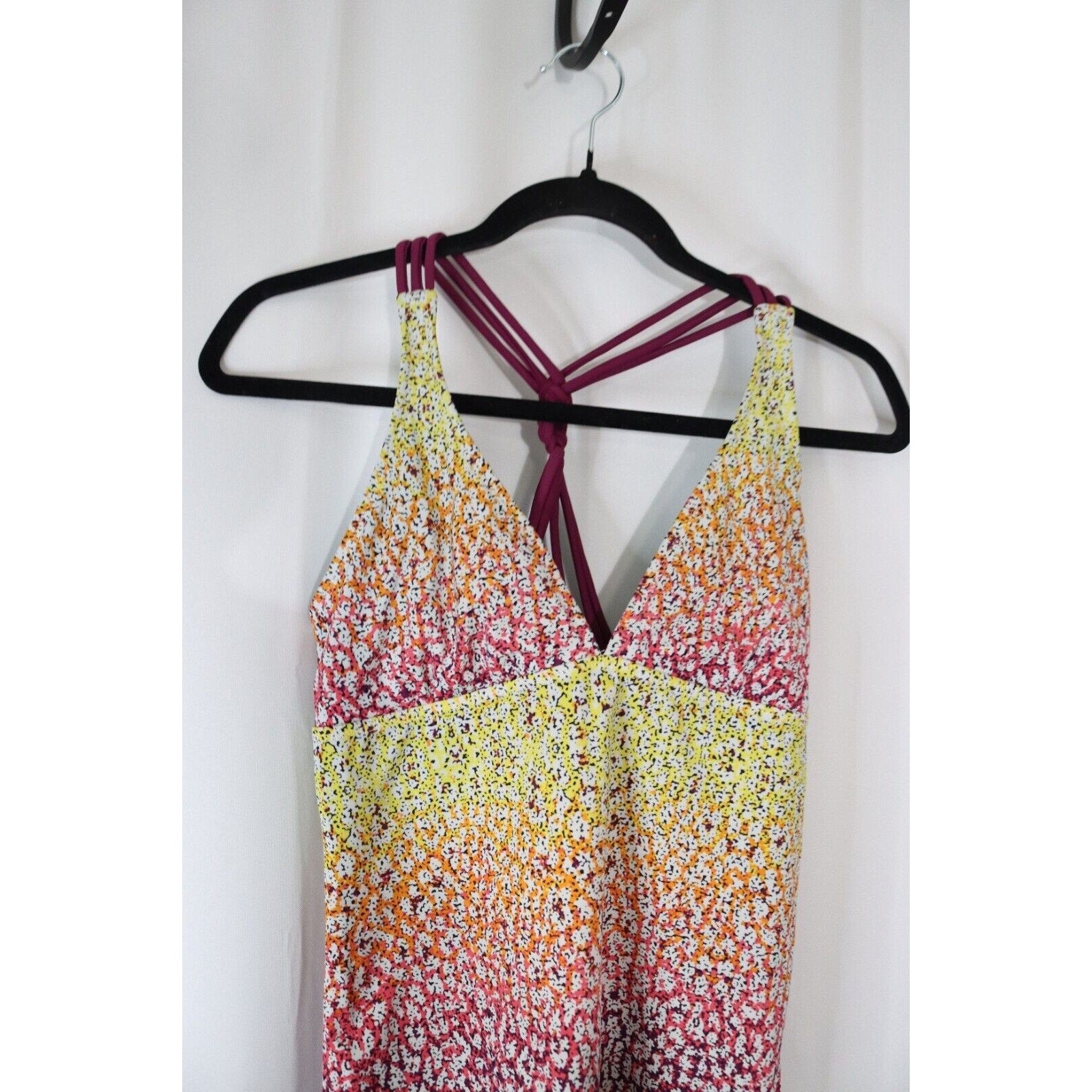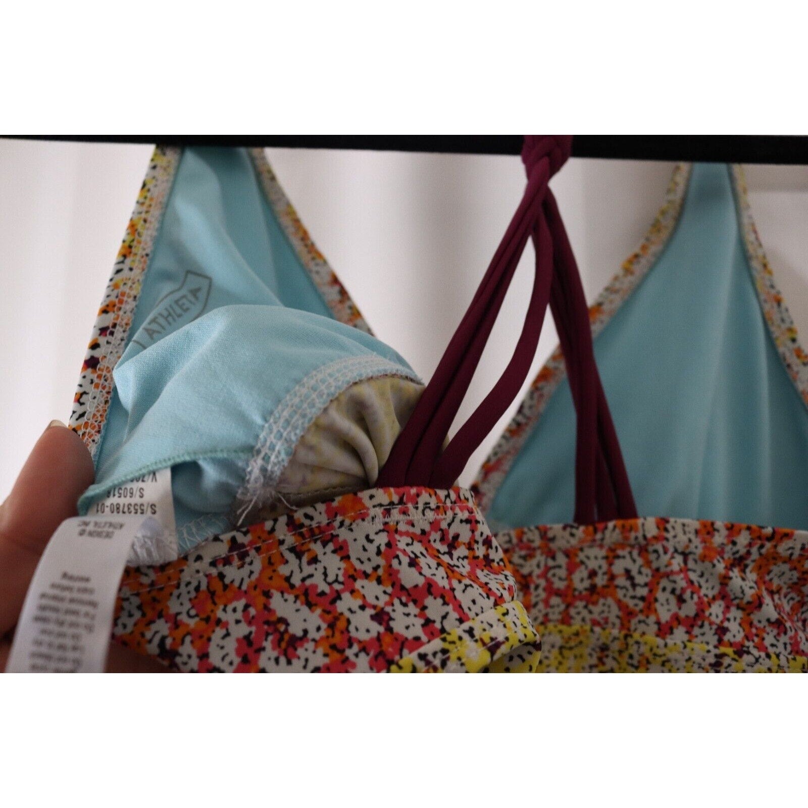 Stay stylish and comfortable during workouts with this Athleta Activewear Racerback Top. Designed for performance, this top features a breathable and moisture-wicking fabric that keeps you cool and dry. The racerback design allows for full range of motion. The multicolor pattern adds a vibrant and sporty touch to your activewear collection. No padding.
