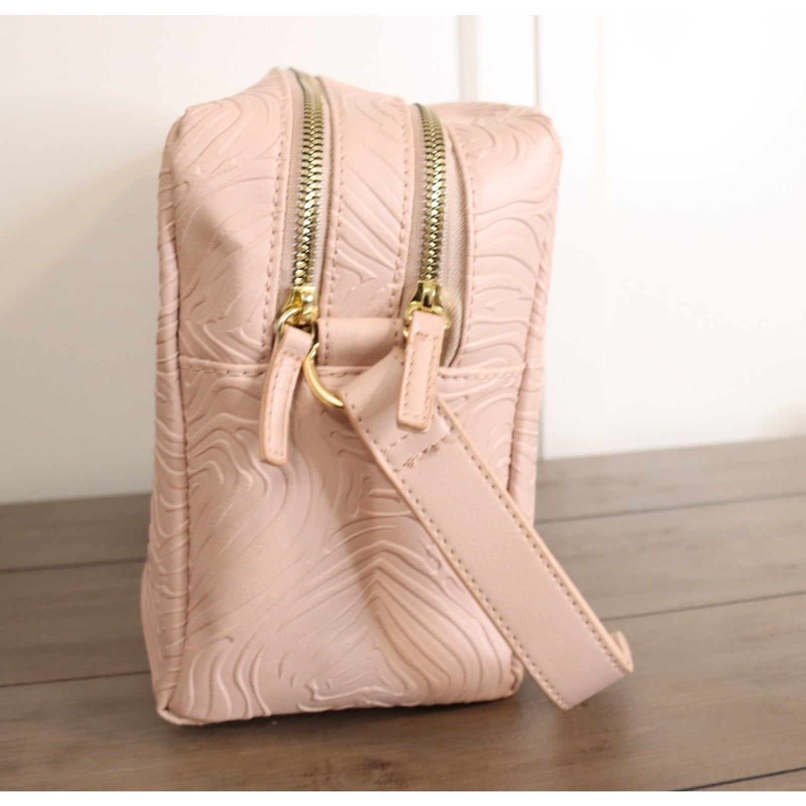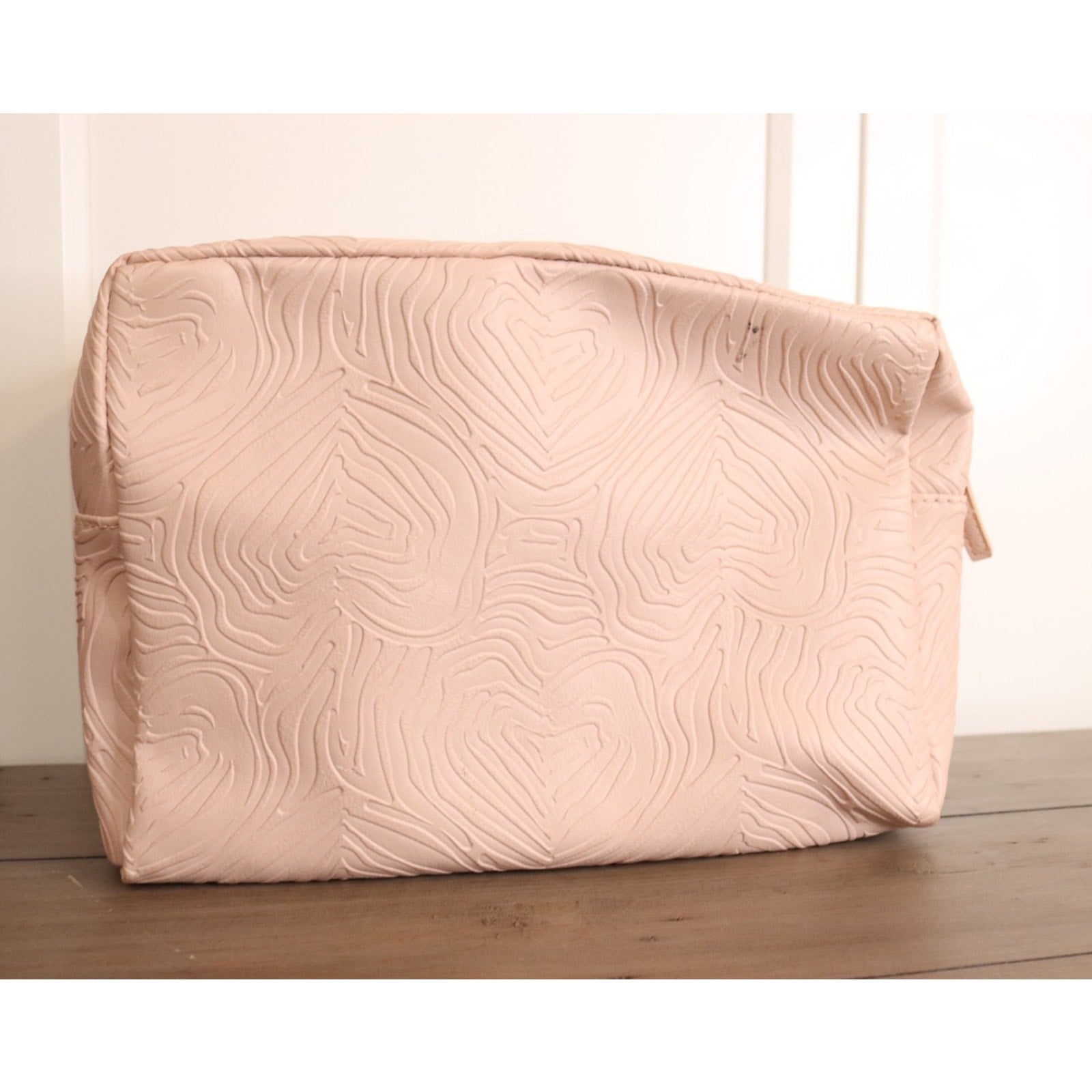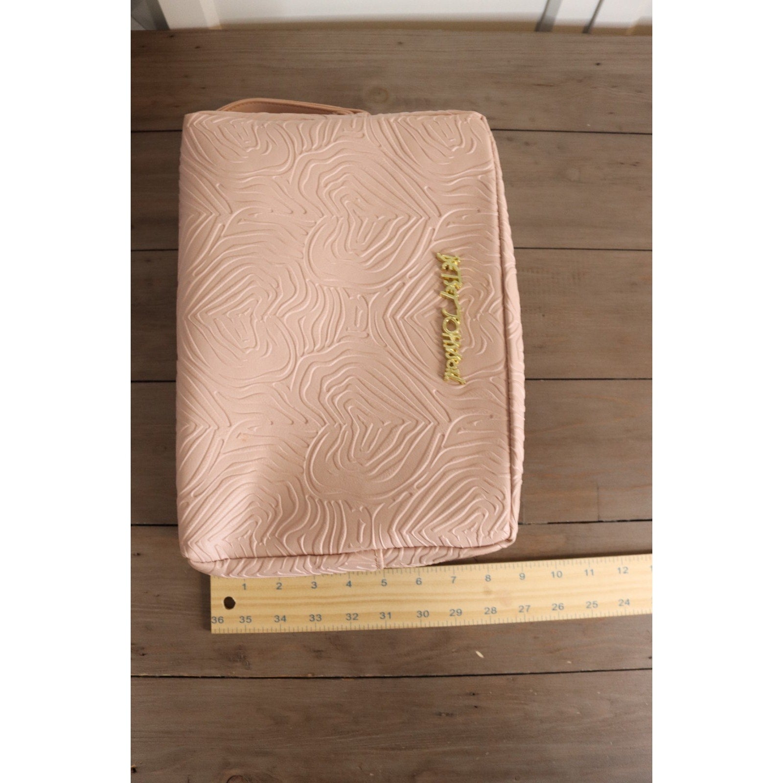 Betsey Johnson Pink Large Makeup Bag Double Zip Embossed