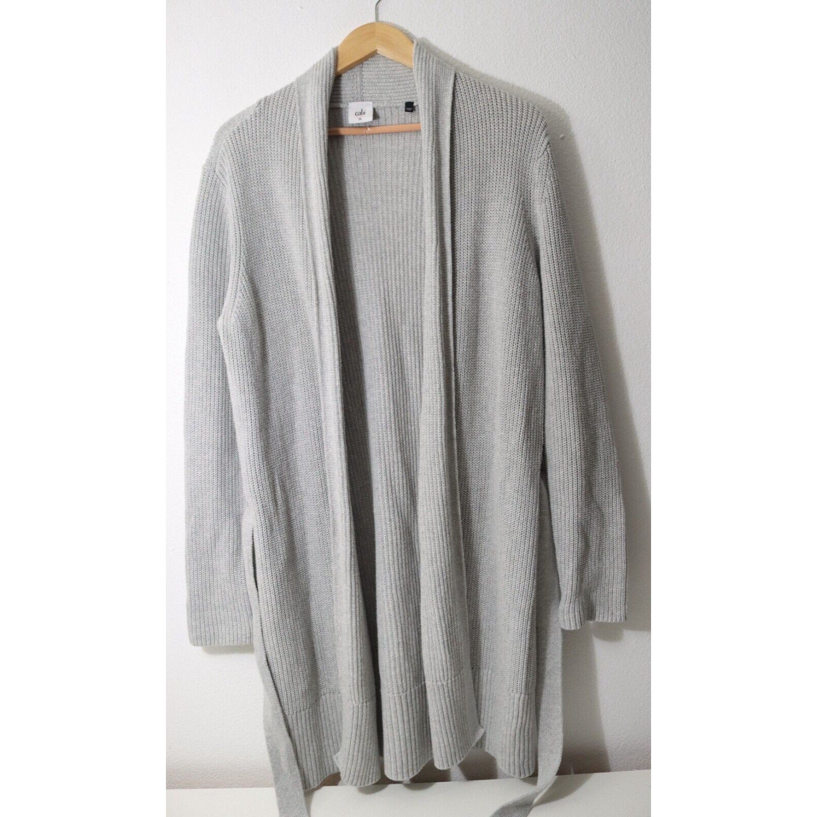 Elevate your wardrobe with this stunning Cabi Grey Duster Sweater. This sweater is perfect for the fashion-conscious woman who loves to travel and keep it casual. The long-sleeved cardigan style sweater comes in size Medium and features an open design with a tie. Crafted from high-quality cotton and other materials, this sweater is both comfortable and stylish. The solid pattern and grey color make it easy to pair with any outfit. Ideal for any occasion, this sweater is a must-have addition to your collection.