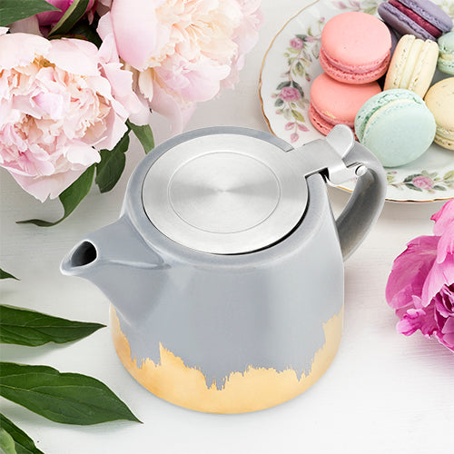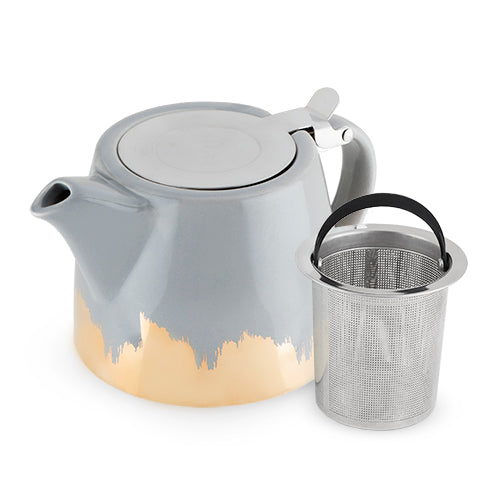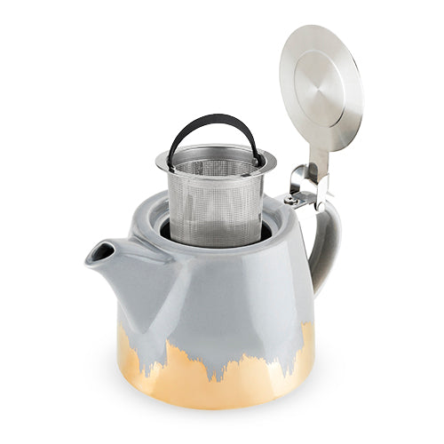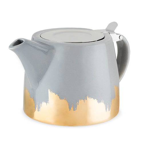 Ceramic Teapot and Infuser- 20 oz - Grey and Gold
