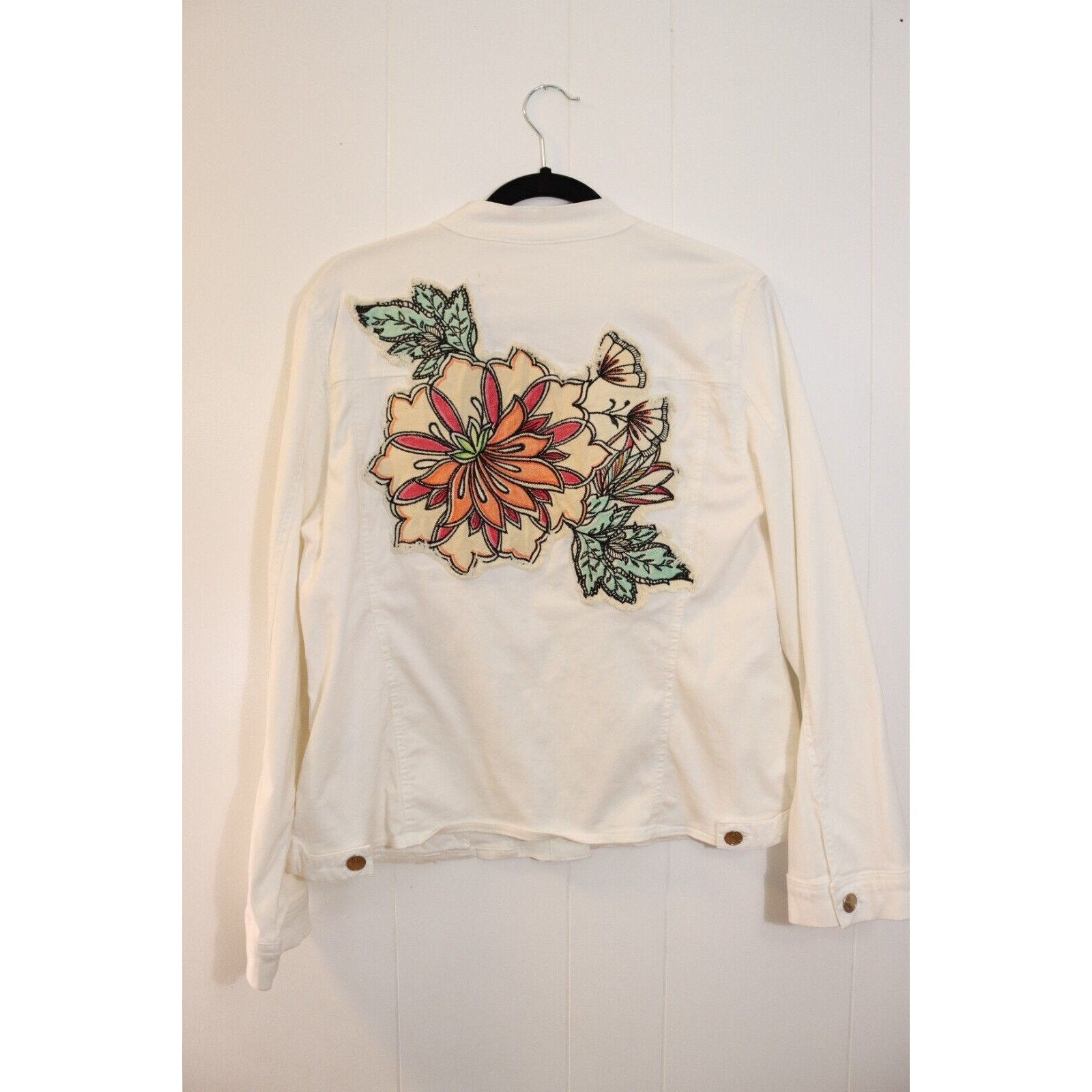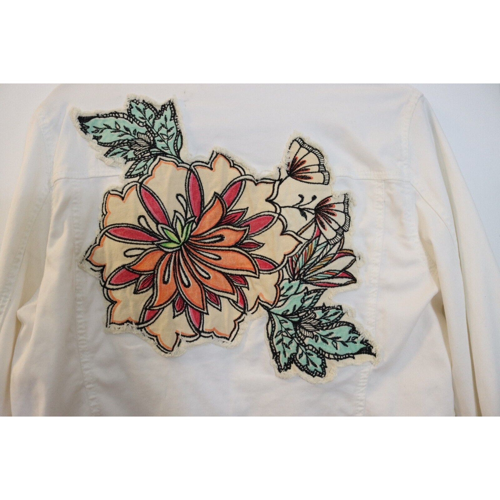Chico White Jacket Floral Emboridery Back Long Sleeve