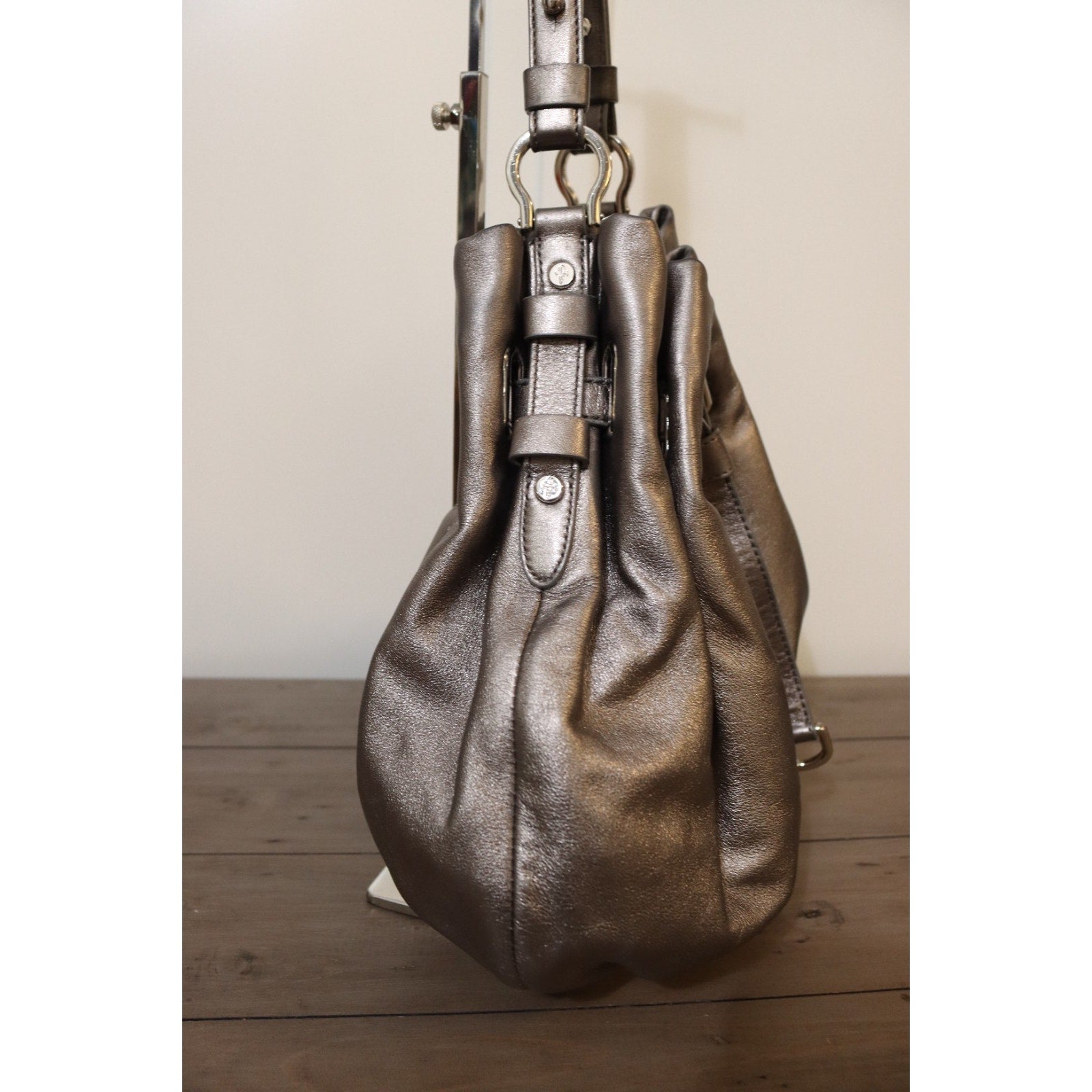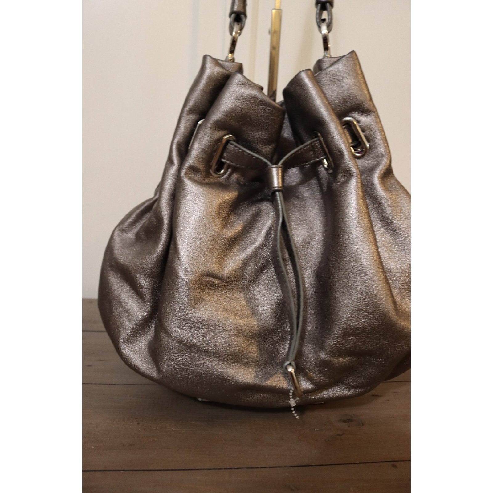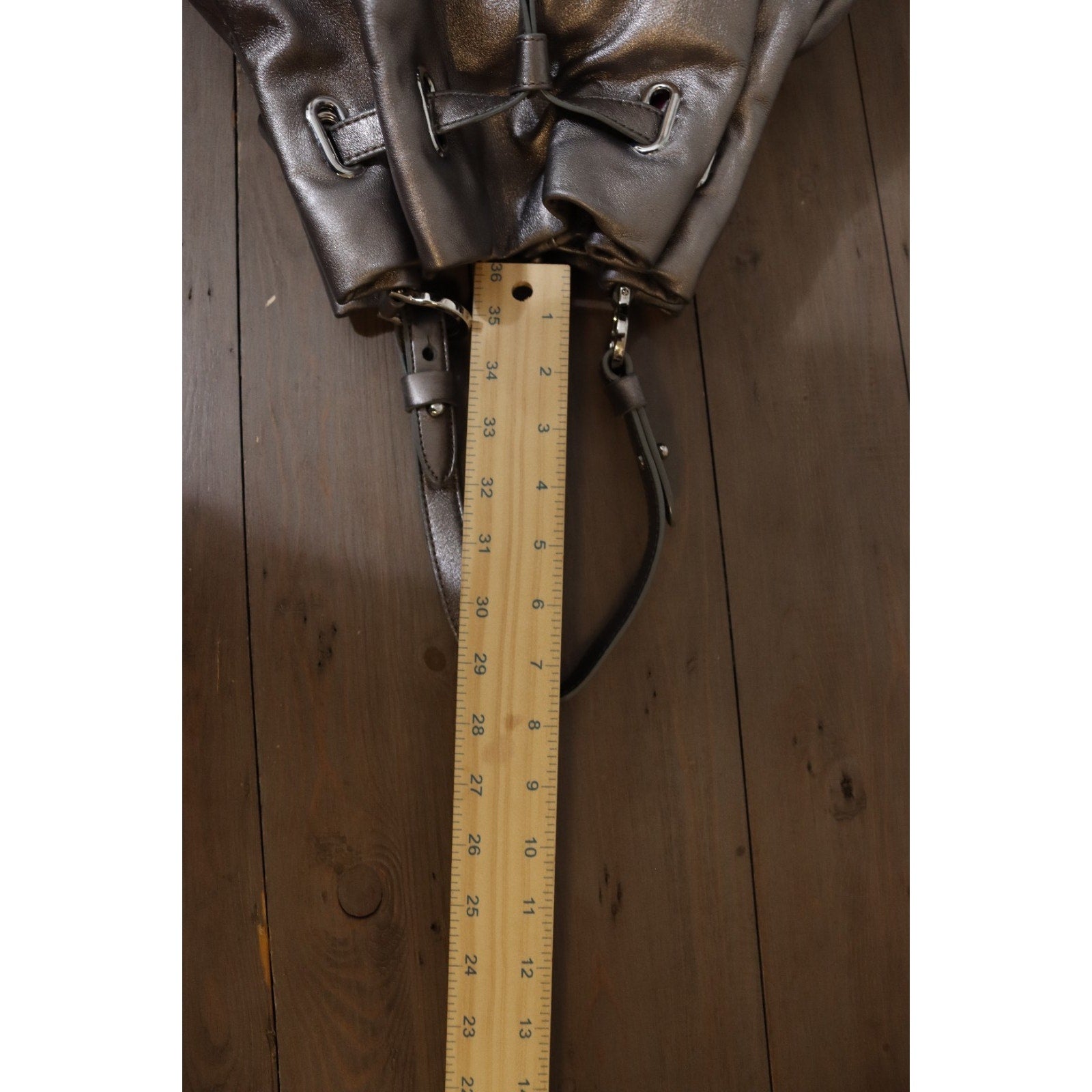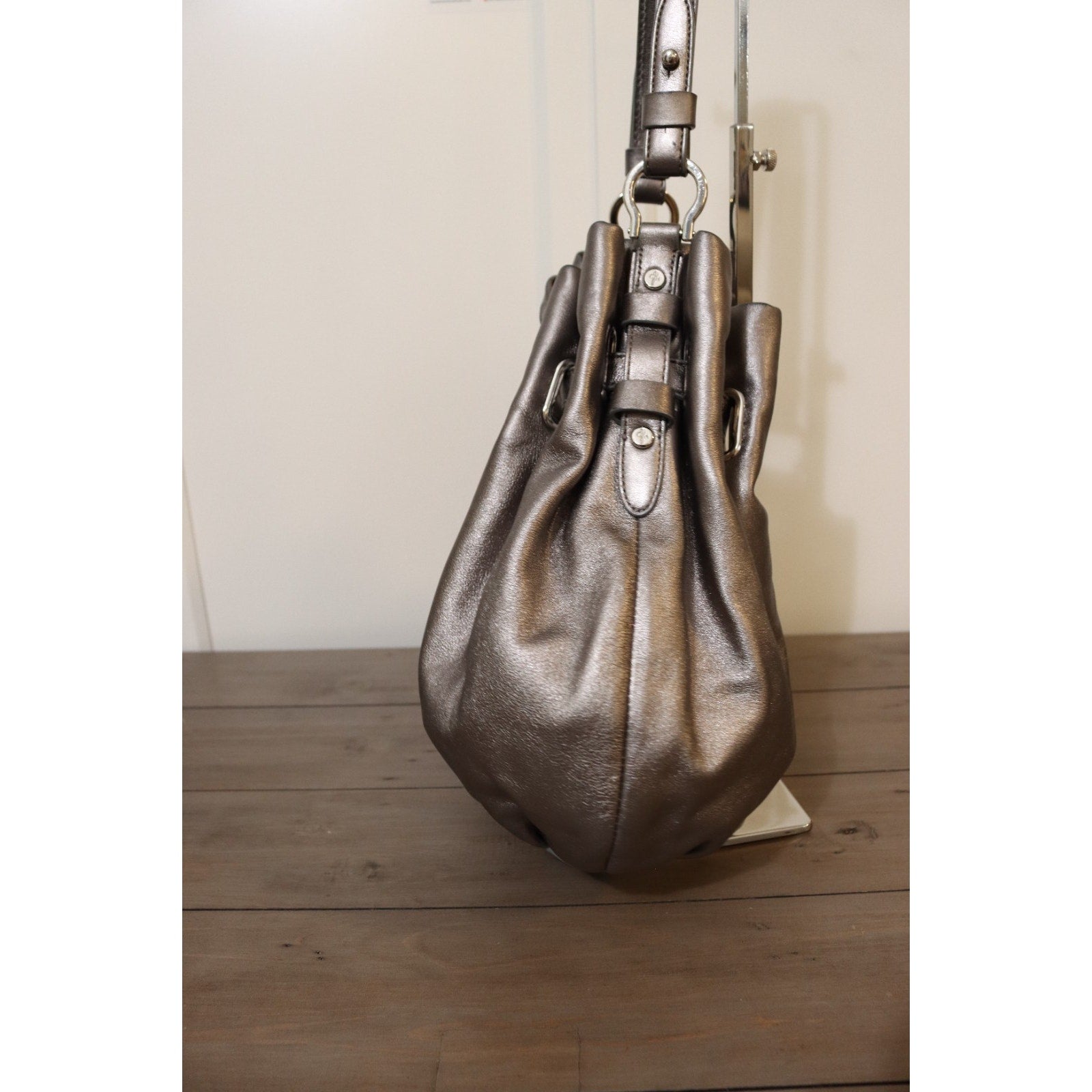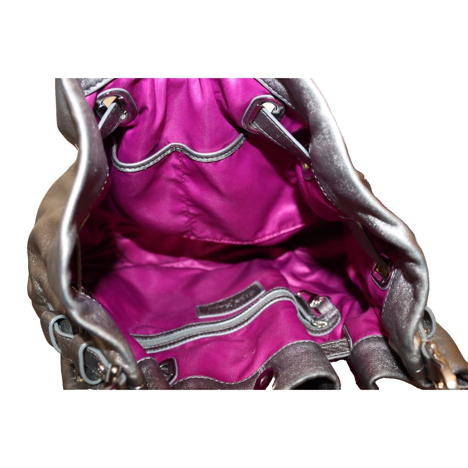 The Cole Haan Silver Leather Bucket Bag Drawstring is a stylish and spacious handbag perfect for women on the go. Made from leather with a solid silver exterior and matching hardware, this large bucket bag features a drawstring closure and inner pockets for organization. The silver leather handle/strap adds a touch of sophistication, making it a versatile accessory for any outfit. Whether carrying essentials for a day out or dressing up an ensemble, this Cole Haan bag is a chic and practical choice for fashion-forward women.