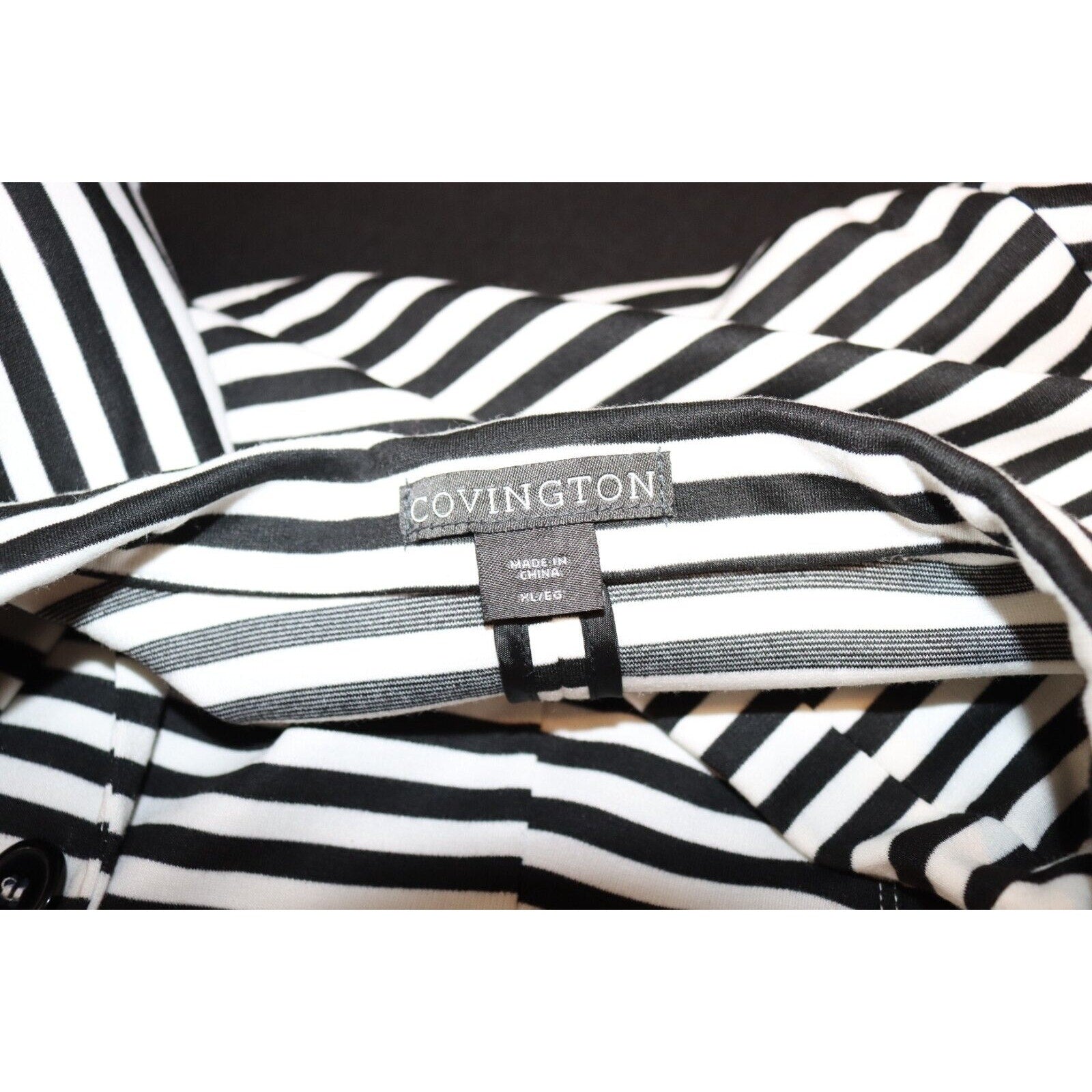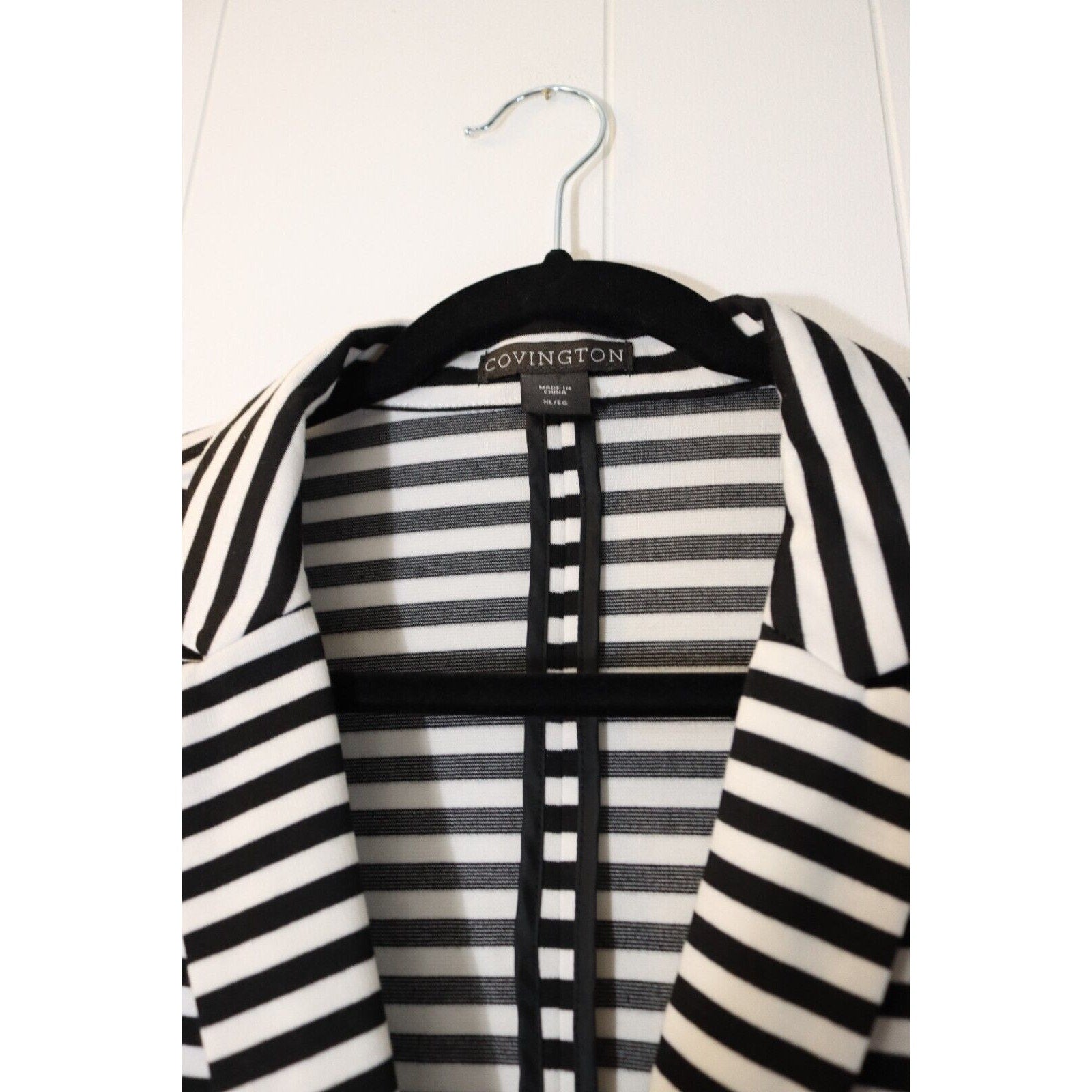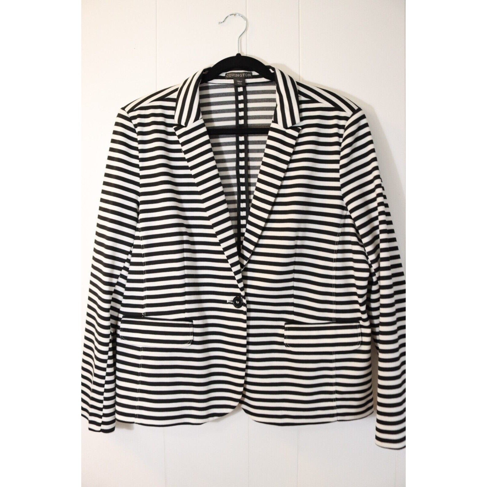Elevate your wardrobe with this stylish Covington Stripe Blazer in size XL. Made of high-quality polyester, this blazer features a classic striped pattern, long sleeves, and a button closure. Perfect for both casual and formal occasions, this blazer is a versatile addition to any wardrobe. With its regular fit and basic jacket style, this blazer is a must-have for any fashion-forward woman. The multicolor design adds a pop of color to any outfit, making it a great choice for business meetings, parties, and more. Add this Covington blazer to your collection today and step out in style!