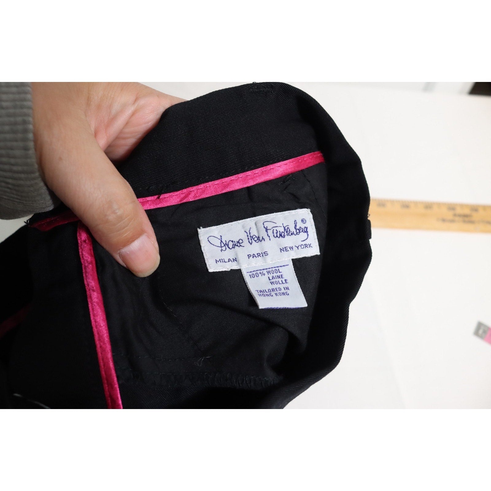 The Diane Von Furstenberg Black Size 6 Vintage Dress Pant is a stylish and versatile addition to any woman's wardrobe. Made of high-quality wool, these dress pants feature a solid black color and a high rise waist. With an inseam of 26 inches, they are suitable for various occasions including travel, casual outings, formal events, and business meetings. The brand, Diane von Furstenberg, is known for its high-end fashion, making these pants a timeless and chic choice for the summer, fall, and spring seasons.