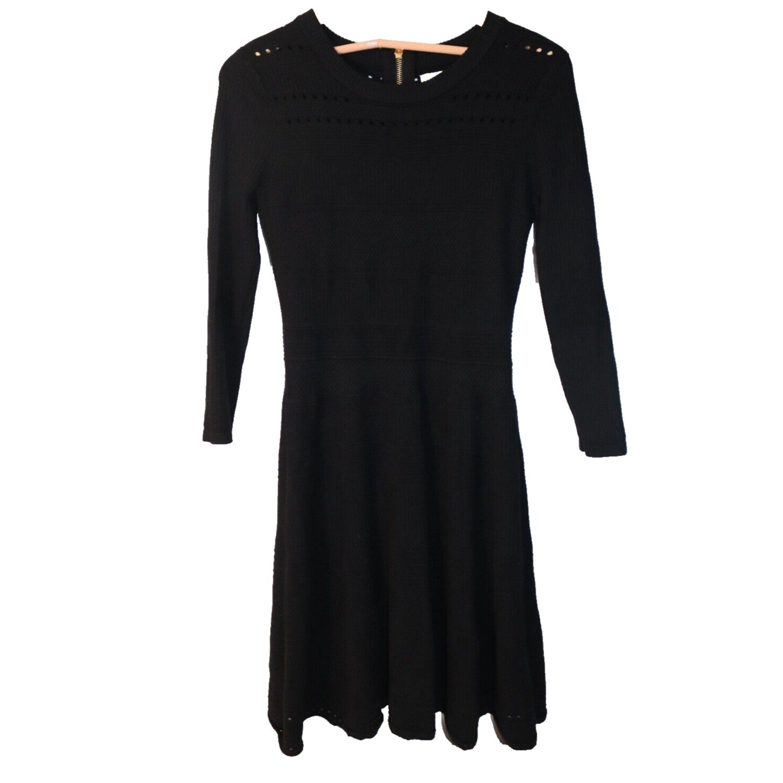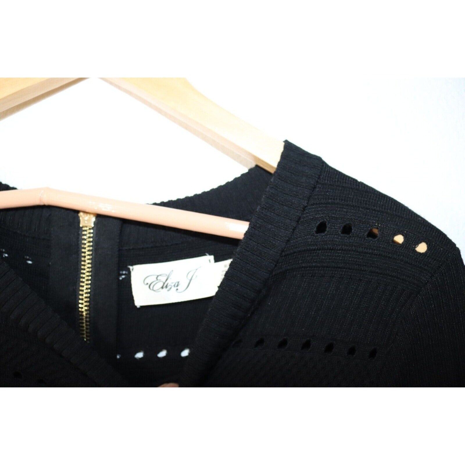 This elegant black skater dress by Eliza J is a must-have for any fashion-forward woman. The dress features a solid pattern, long sleeves, and a zip closure for easy wear. It is perfect for a variety of occasions, including parties, cocktails, casual outings, and formal events. The dress is made of a stretchy material that is a combination of nylon and rayon, ensuring a comfortable and flattering fit. It has a fit and flare style with an A-line silhouette that is perfect for the fall and spring seasons. The dress is also accented with a zipper and is available in size medium. Add this stunning dress to your wardrobe today!