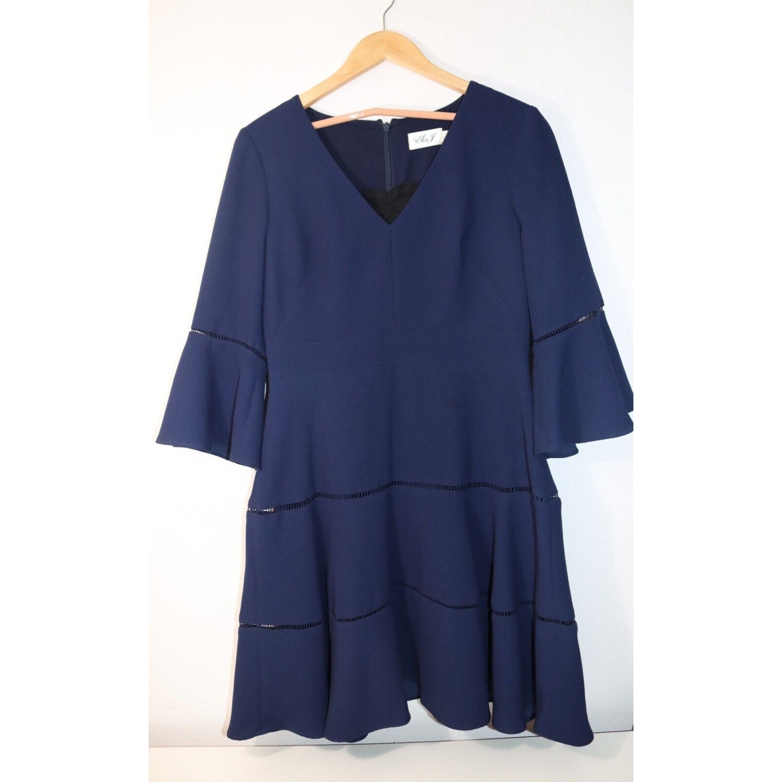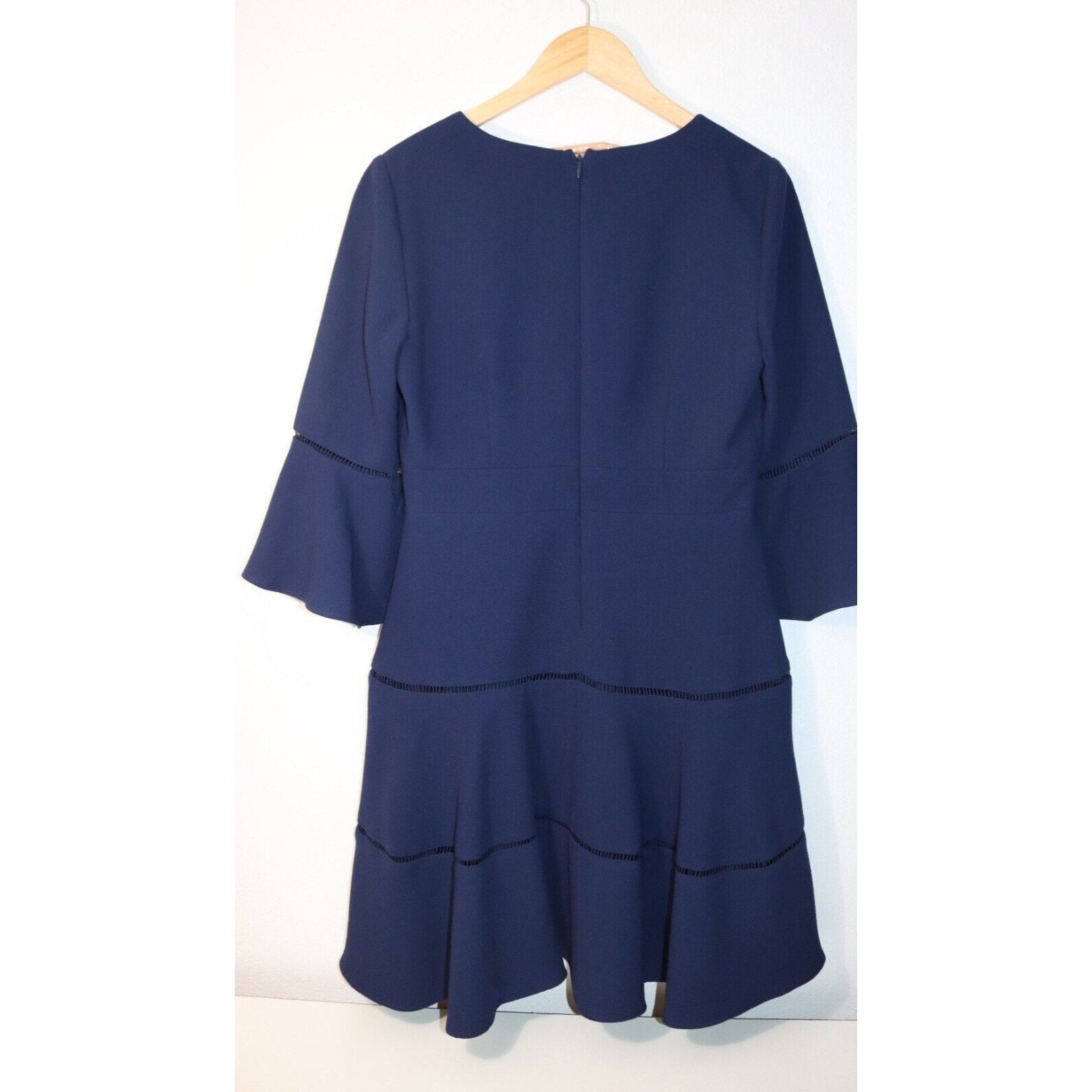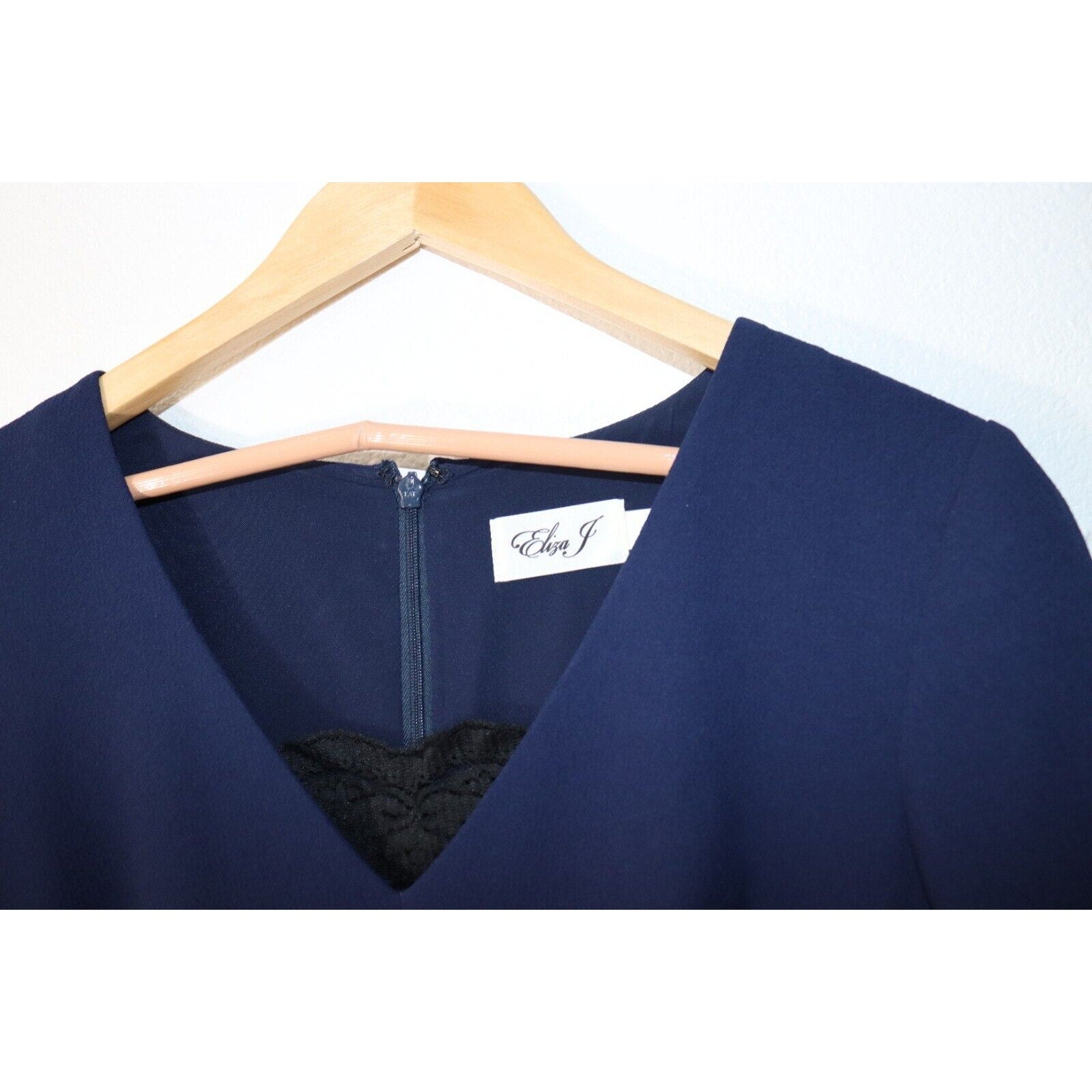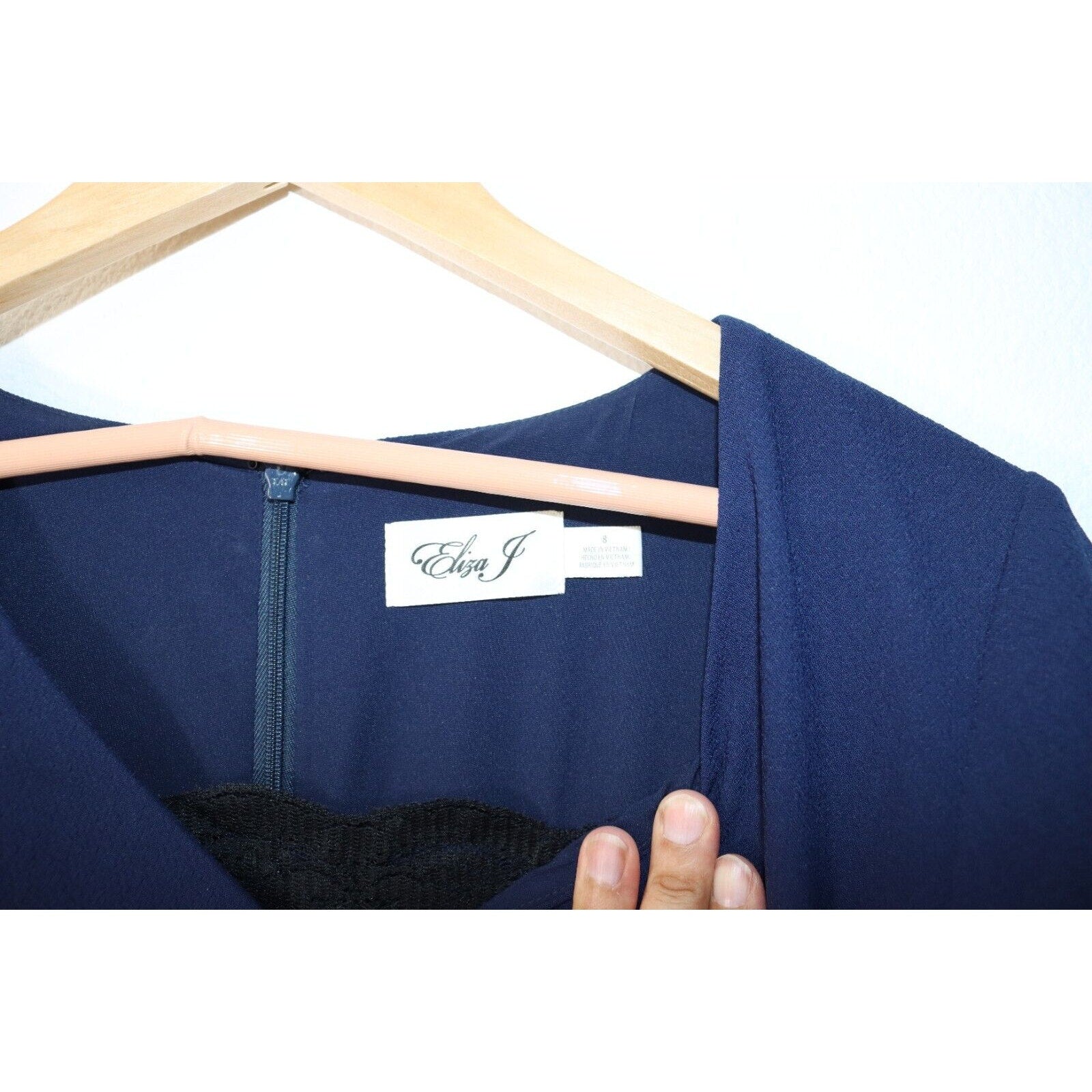 This elegant navy Eliza J dress is perfect for any occasion, whether it be a wedding, party, or casual outing. The dress features a solid pattern with 3/4 sleeves and a zip closure for easy wear. Its fit and flare style accentuates the figure, while the zipper accents add a touch of edge. Made of high-quality polyester material, the dress is both comfortable and durable. The short dress length makes it perfect for showing off your legs. Ideal for women in size 8, this dress is sure to make a statement wherever you go.