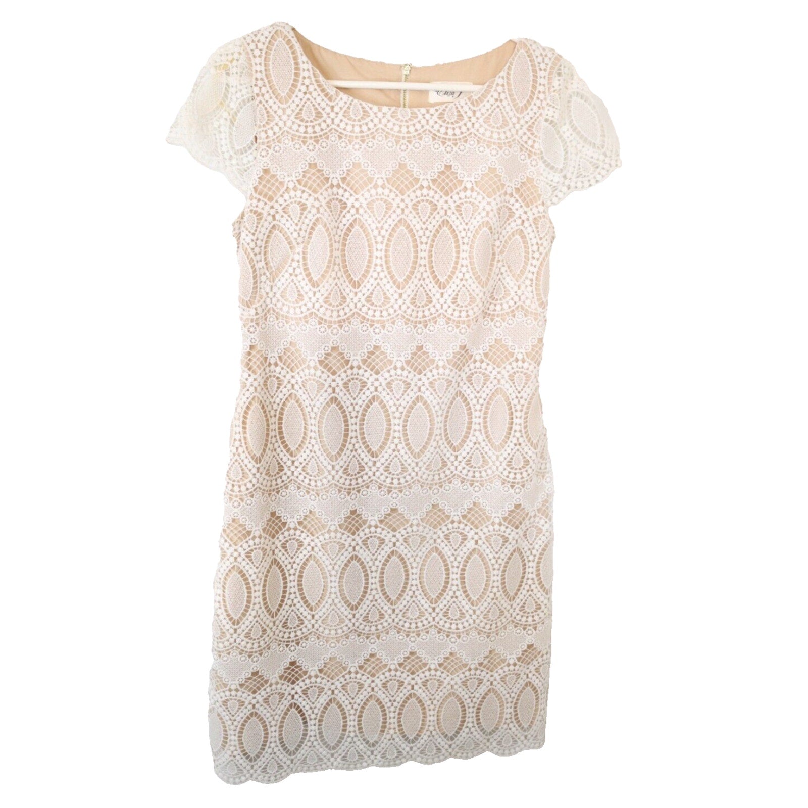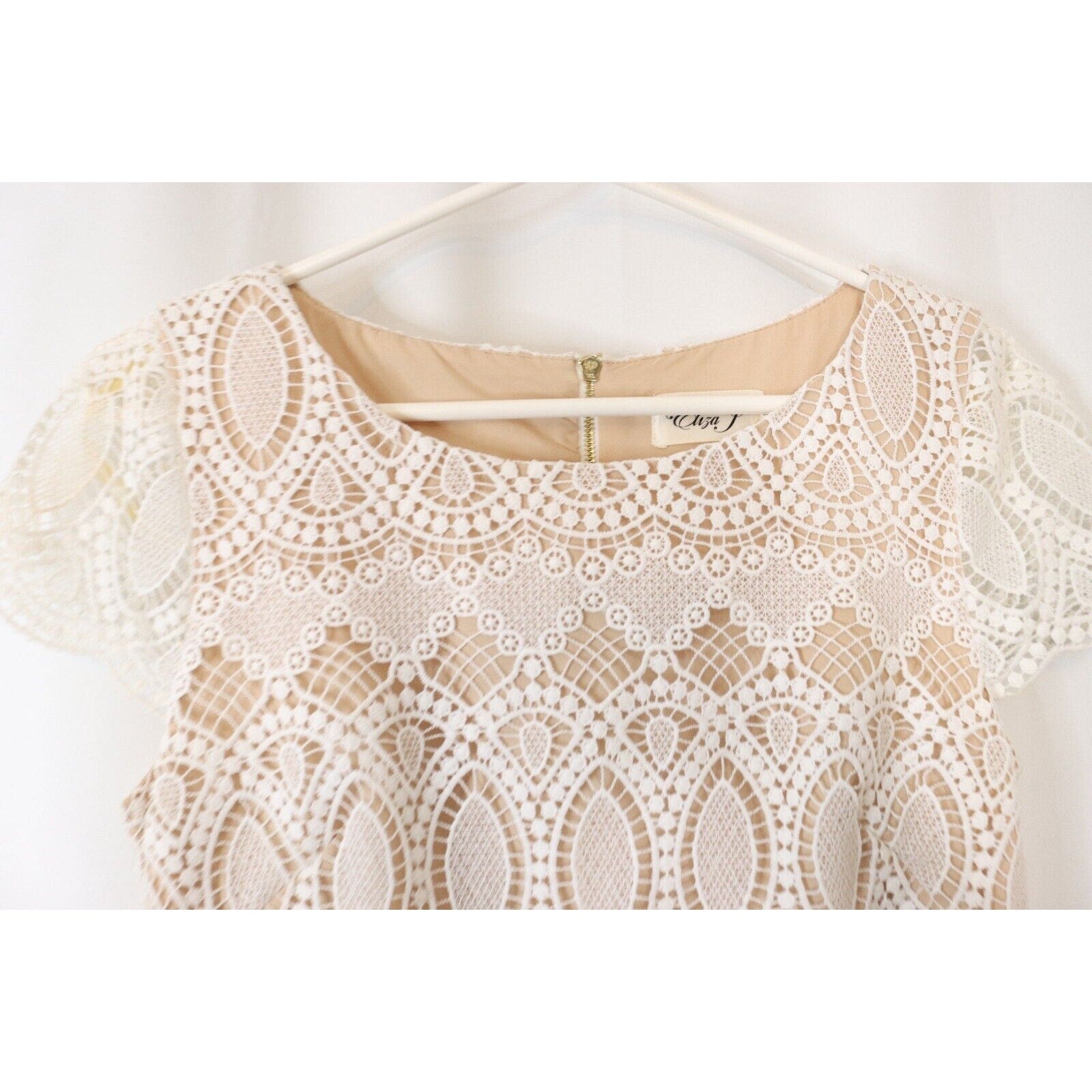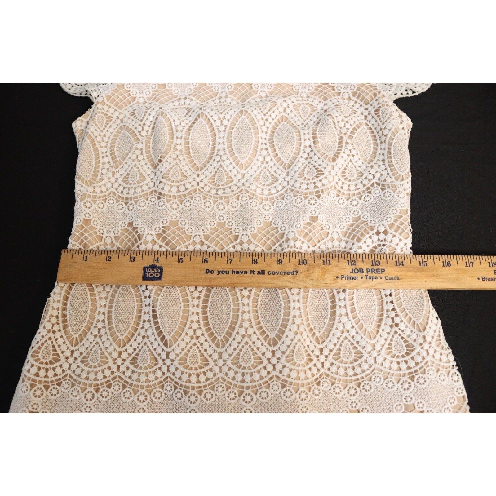 This stunning Eliza J. dress is perfect for any formal occasion or party. The lace fabric is delicate and elegant, while the nude lace detailing adds a touch of sophistication. The short sleeves and zip closure make it easy to wear, and the mini length adds a hint of playfulness to the dress. The dress is available in size 2 and is suitable for women of all sizes. The dress is perfect for summer, fall, and spring seasons. Whether you're attending a wedding or a cocktail party, this dress is sure to turn heads.