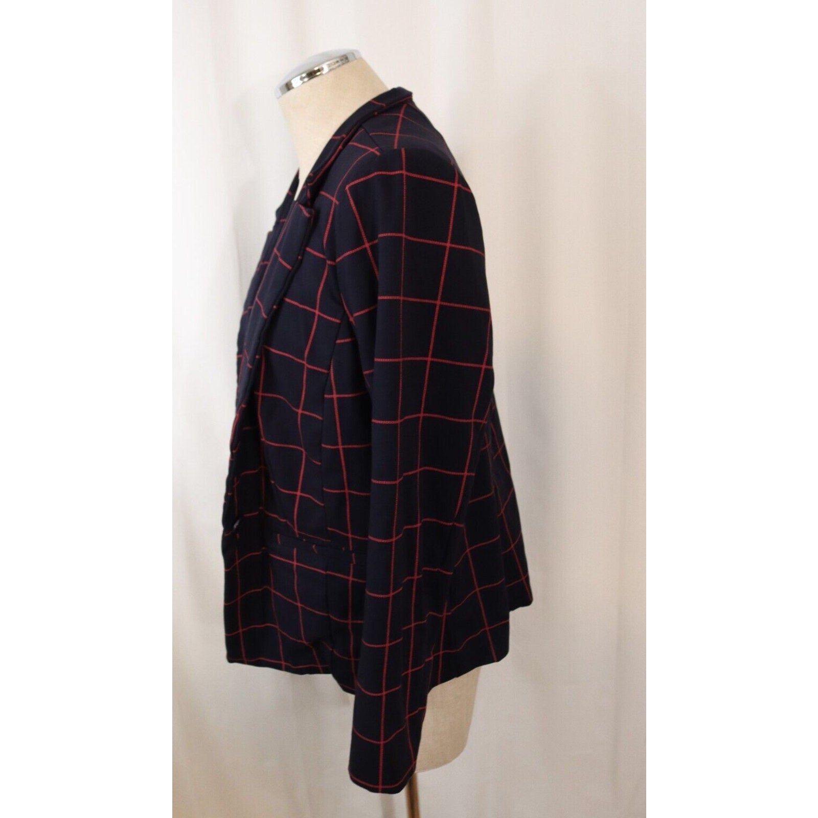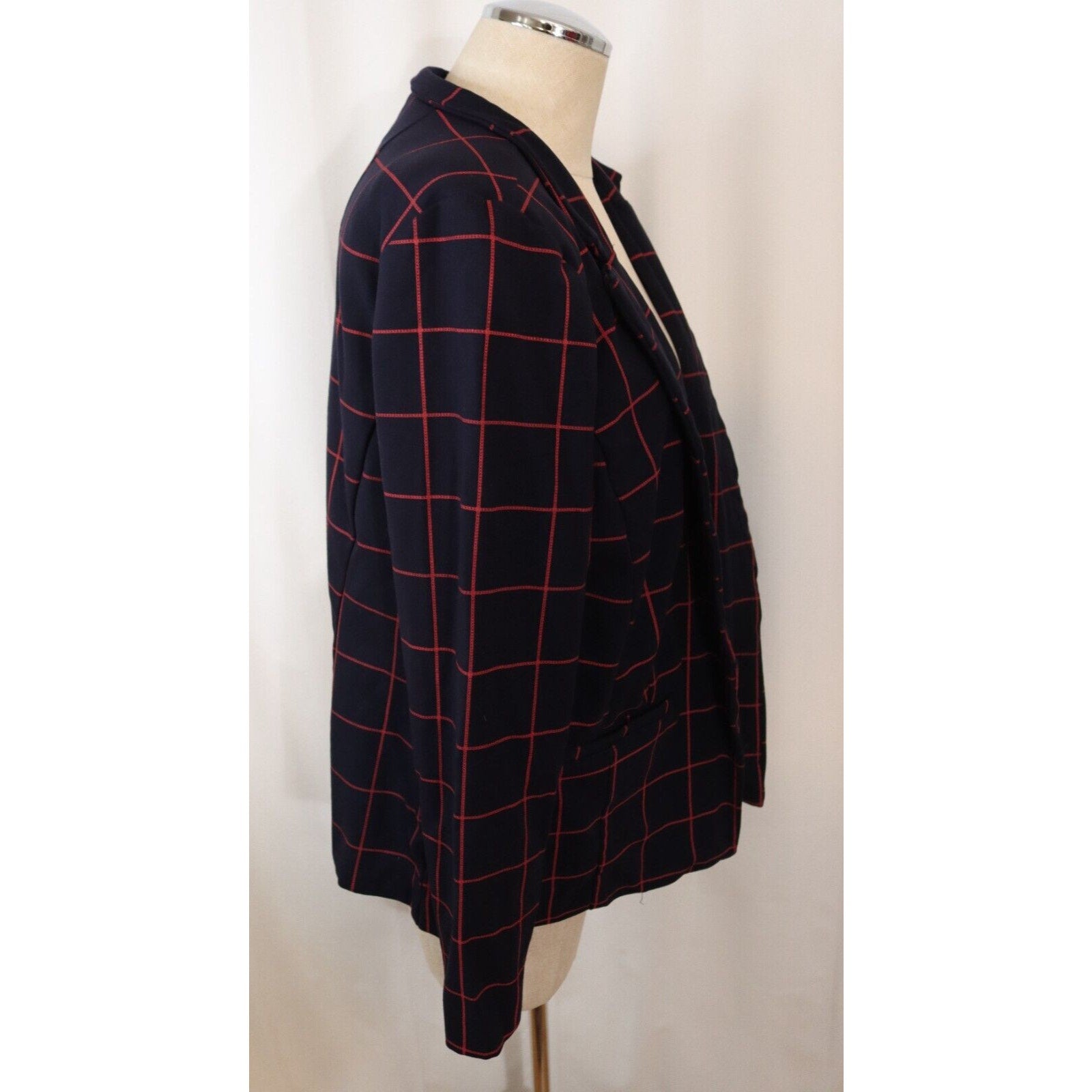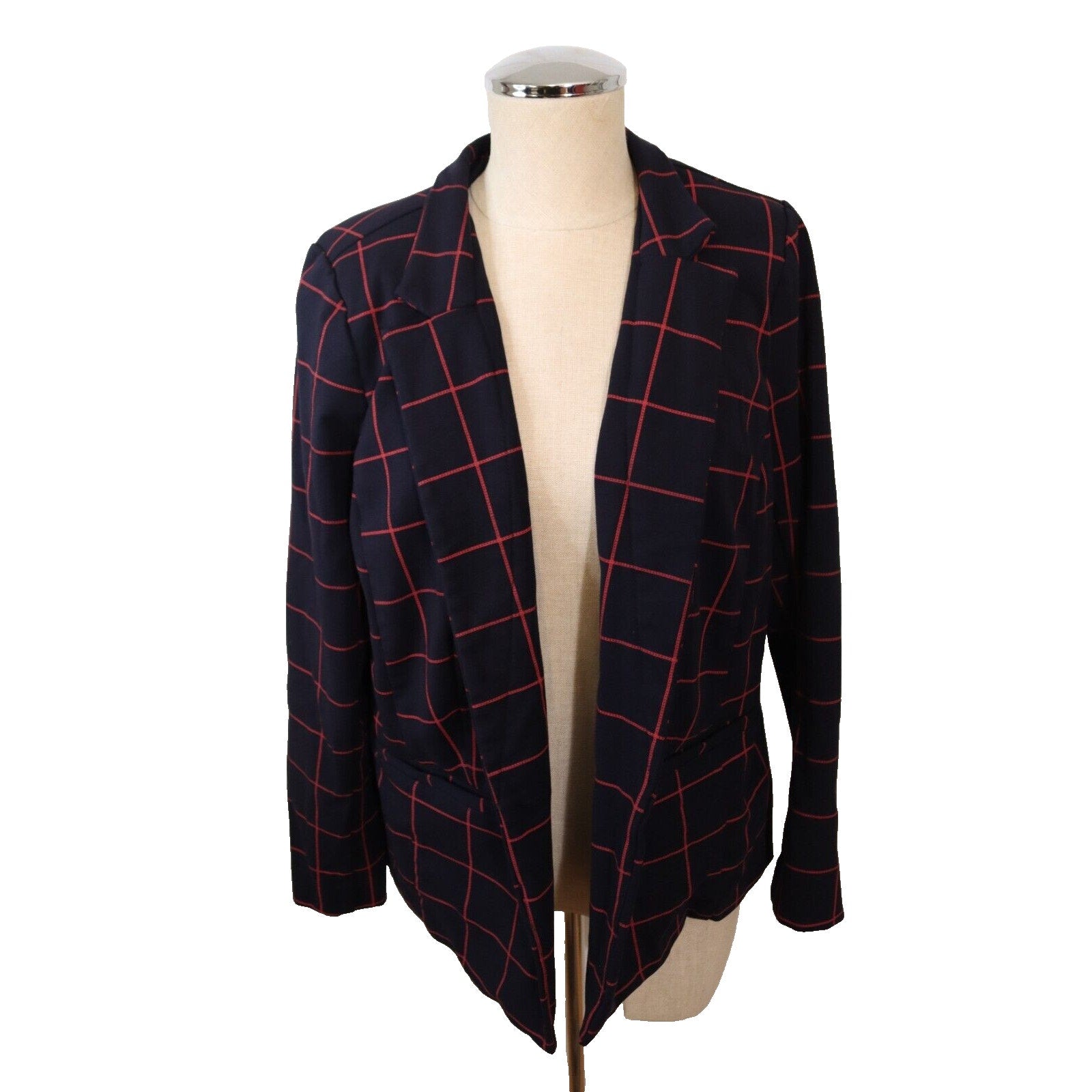 Elevate your wardrobe with this stunning Eloquii blazer in a beautiful red and navy color combination. Crafted from a comfortable cotton blend material, this blazer features long sleeves and a button closure that adds a touch of sophistication to your outfit. Perfect for any occasion, whether it's for travel, casual outings, formal events, workwear, or business meetings, this blazer is a versatile addition to your wardrobe. The blazer is available in size 14 and is tailored to fit a regular size type. The lining material is made of polyester, which adds a touch of elegance to the blazer. The blazer is suitable for wear during the winter, fall, and spring seasons. Make a statement with this Eloquii blazer, which is perfect for any fashion-conscious woman.