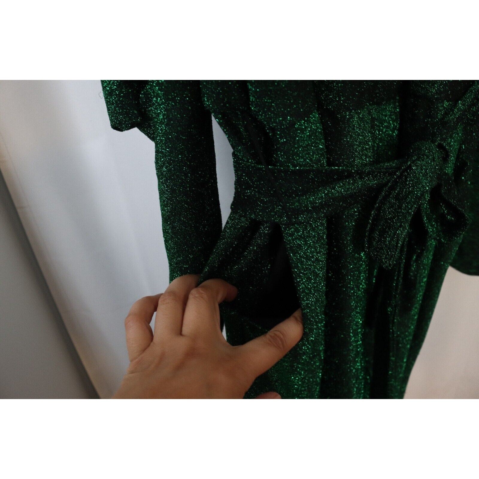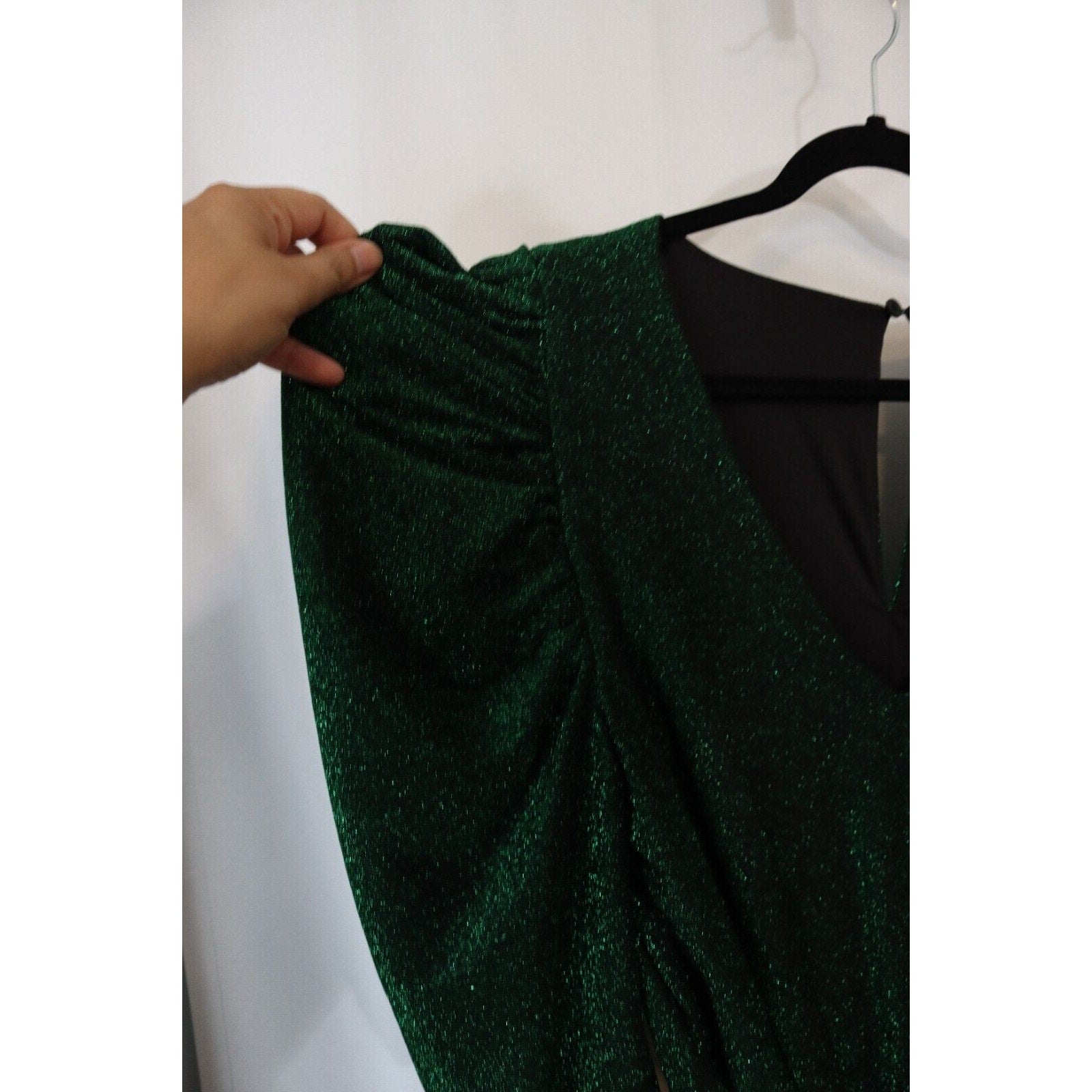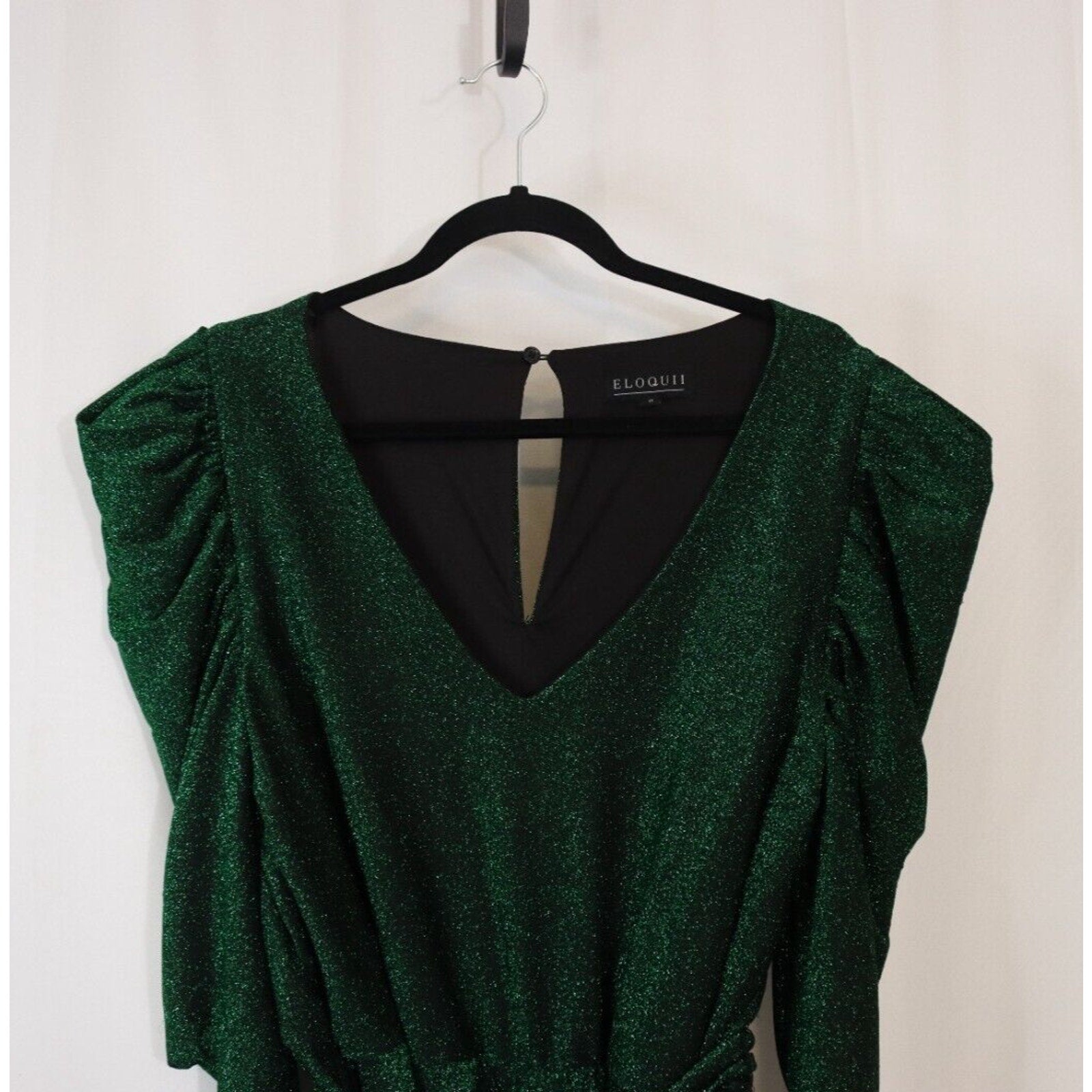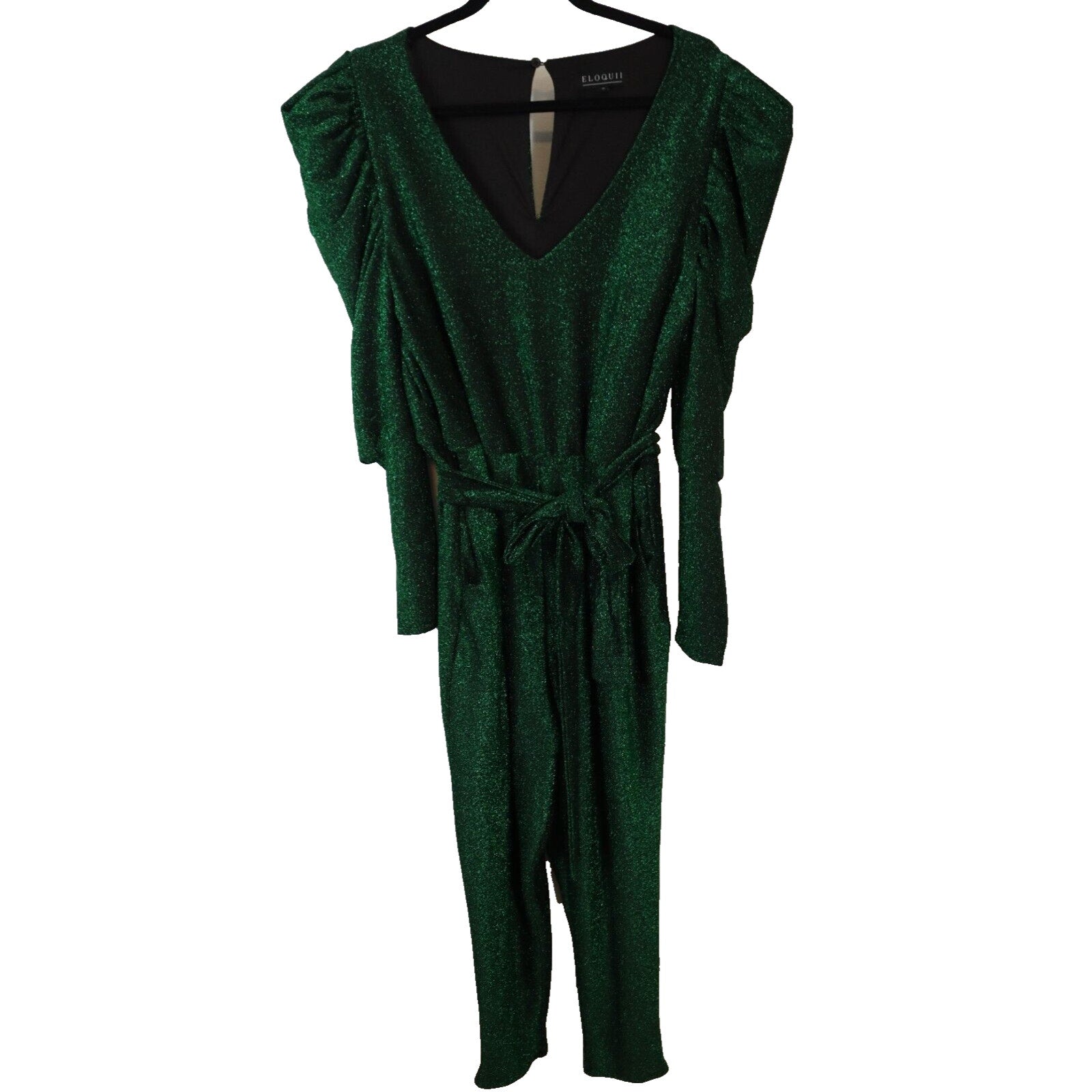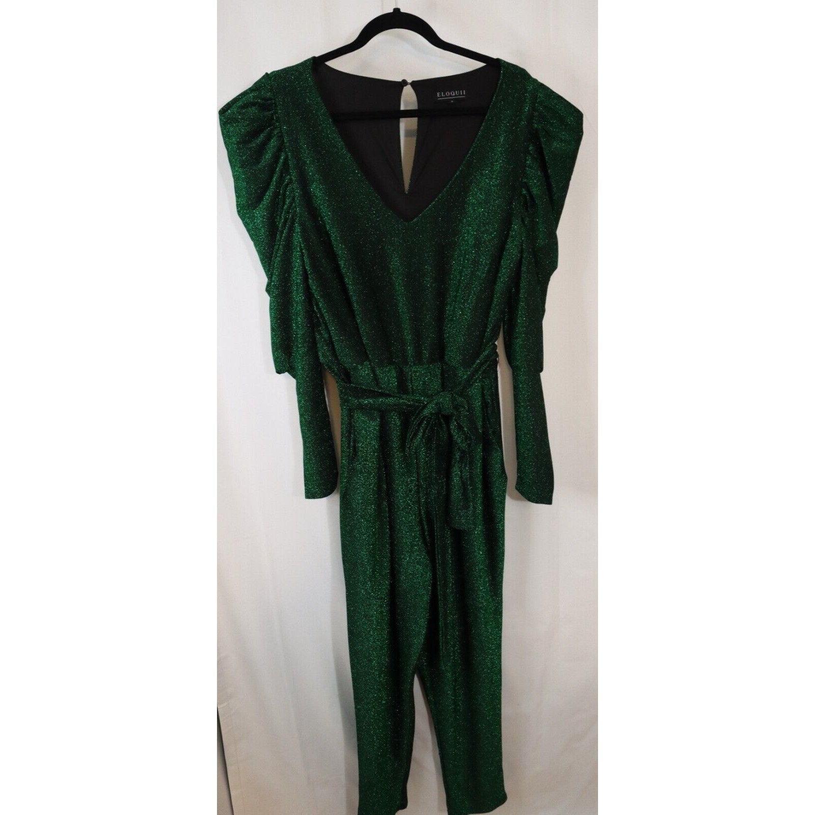 This gorgeous green jumpsuit from Eloquii is the perfect choice for any formal occasion. The sparkly details add a touch of glamour, while the long sleeves and pockets provide both style and practicality. Its size 16, regular fit design is perfect for women who want to feel both elegant and comfortable. The jumpsuit has a 30-inch inseam and is ideal for weddings, parties, and cocktail events. Its stylish design is perfect for any woman who wants to make a statement, and the green color is sure to turn heads.