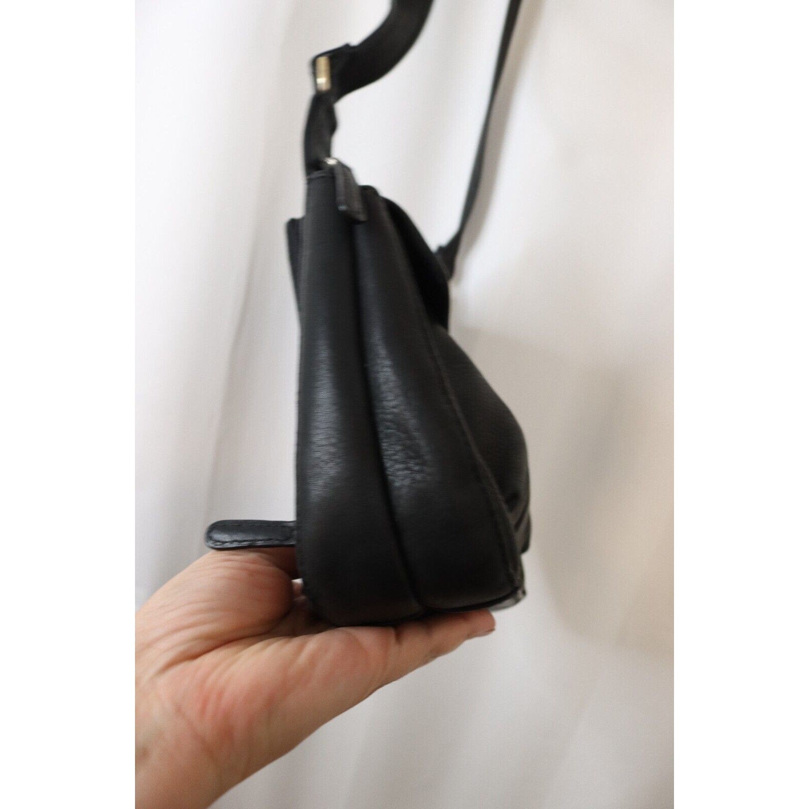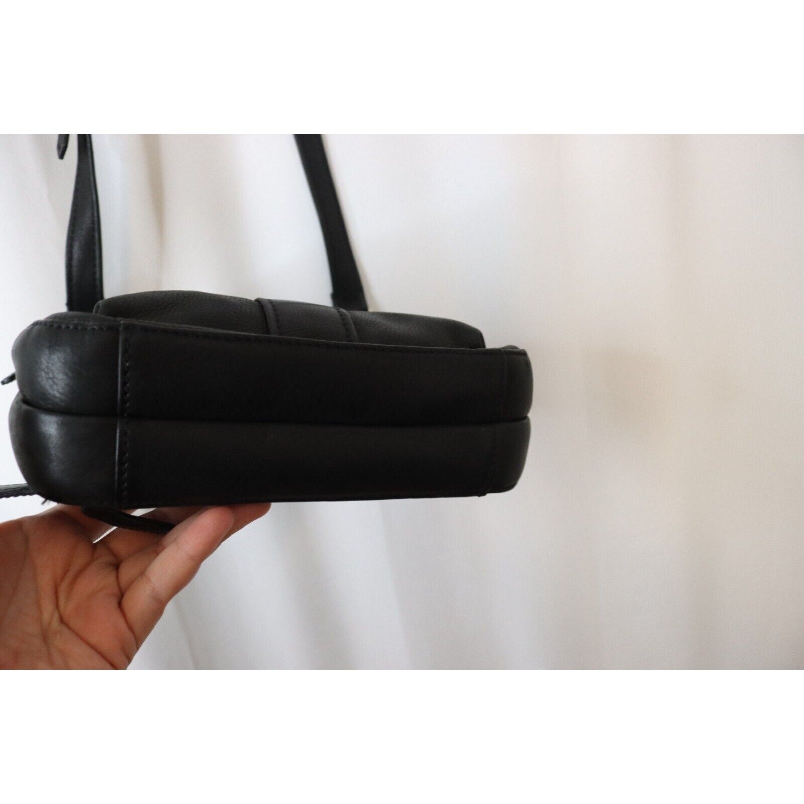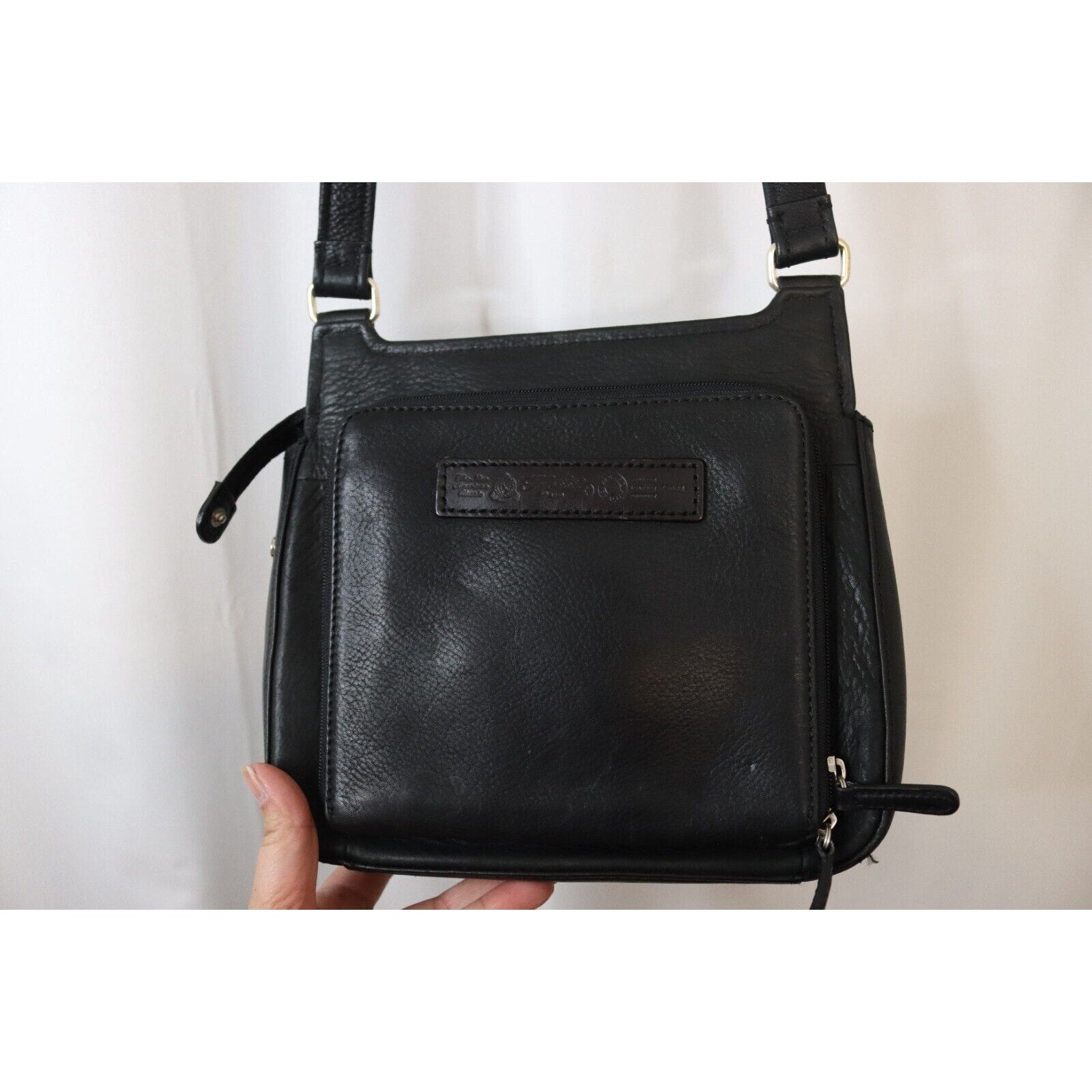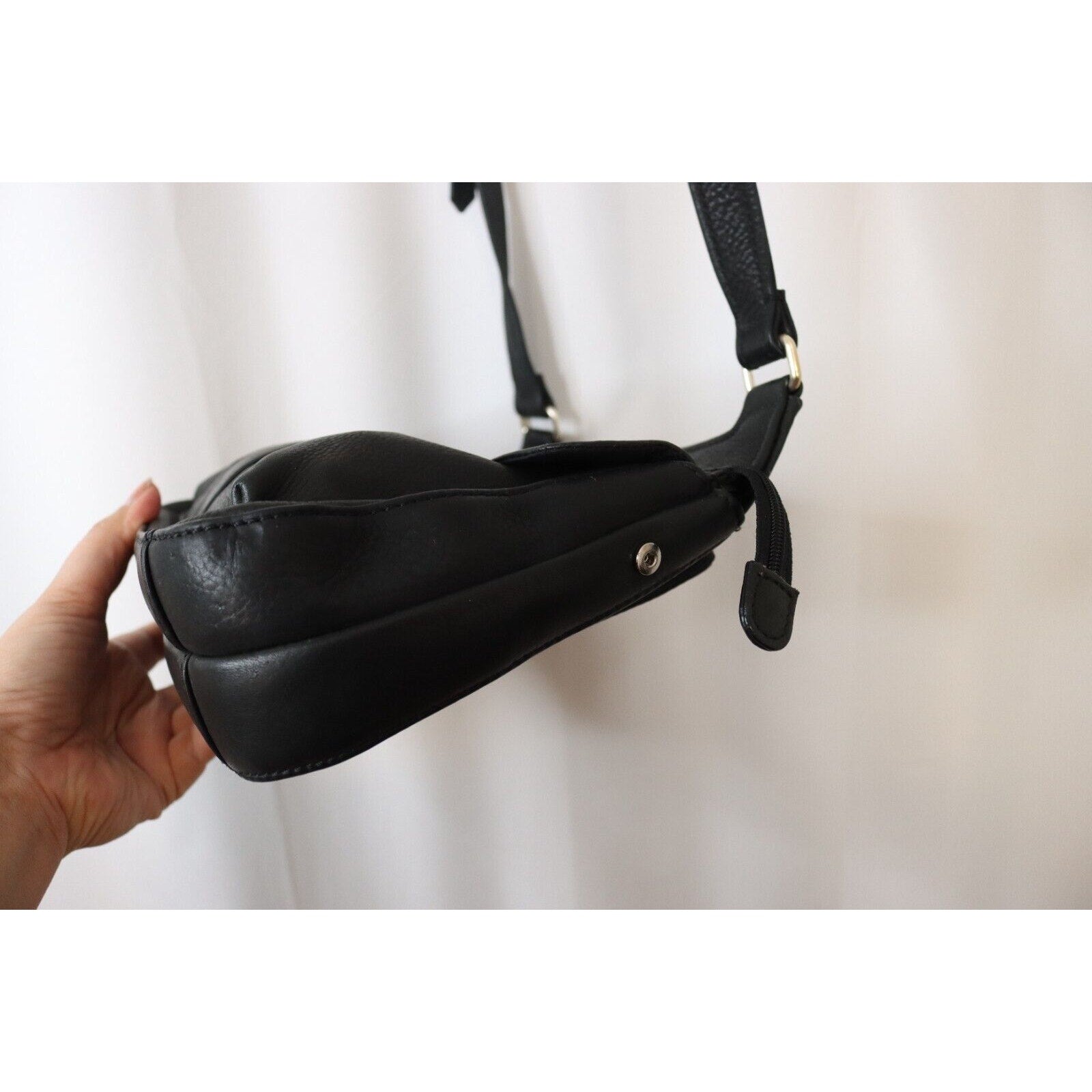 This is a Fossil black leather crossbody bag with a credit card organizer feature. It has a zip closure, silver hardware, and a medium size. The bag includes a crossbody strap with a black handle and lining. It is suitable for women and has adjustable straps. Top zipper does not open wide.