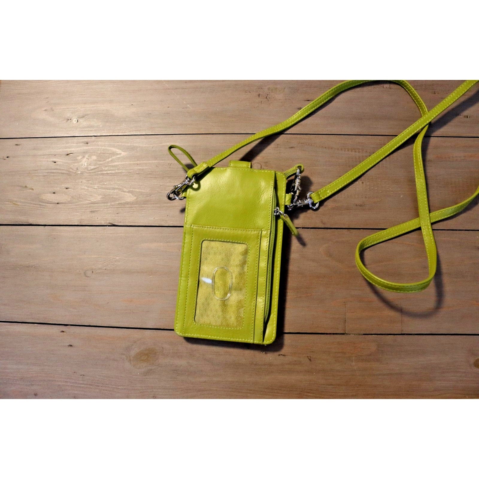 The Green Leather Crossbody Wallet Detachable Reid is a stylish and practical accessory for women on the go. Made of solid green leather with a fabric lining, this rectangular shaped wallet features a convenient crossbody strap with a silver hardware finish. Perfect for everyday use, it is small enough to carry all your essentials while keeping your belongings secure with its anti-theft feature. The adjustable strap allows for added comfort and convenience, making it a versatile choice for any occasion.