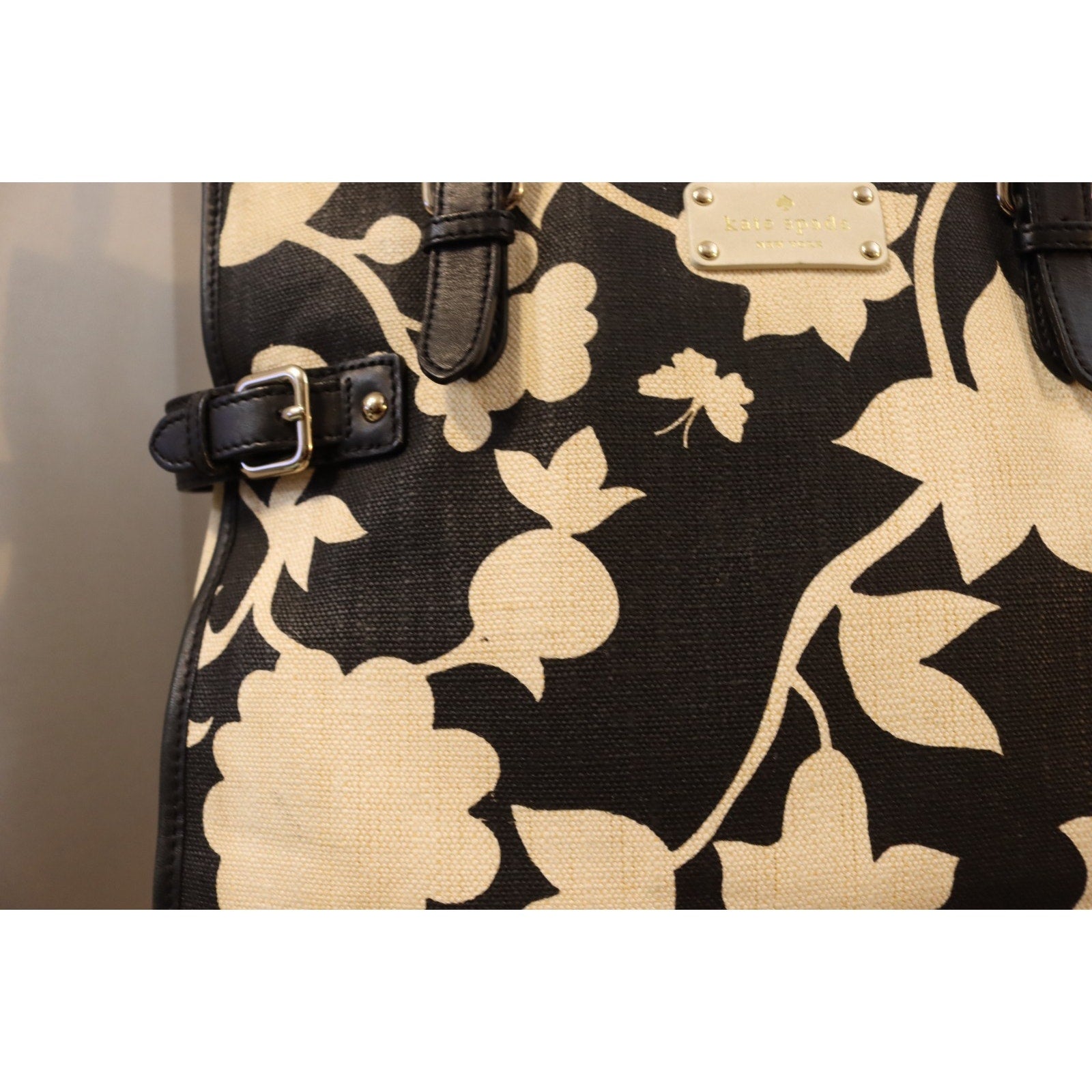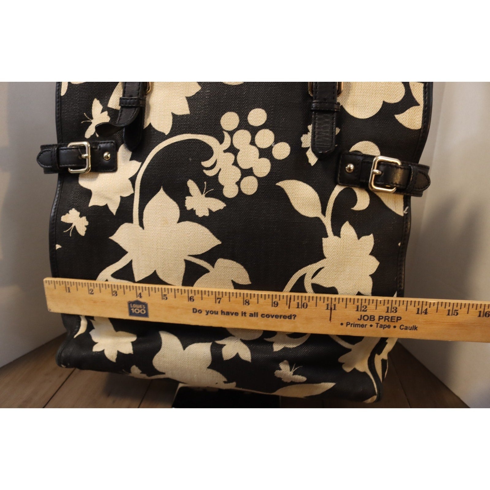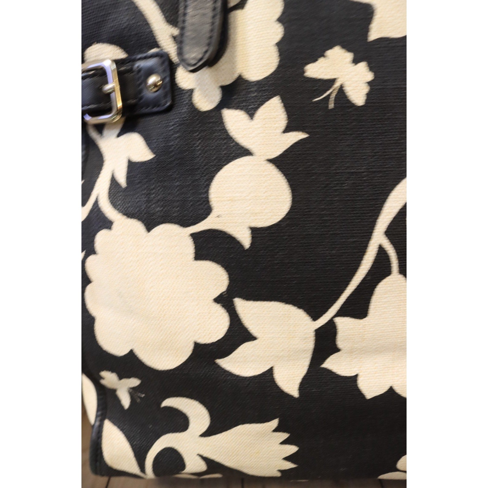 The Kate Spade Large Black and White Tote Bag Canvas is a stylish and spacious handbag perfect for women who appreciate designer fashion. With a bold floral pattern in black and white, this rectangular tote features double black handles and a yellow fabric lining for a pop of color. Made from durable canvas material, this large tote is not only fashionable but also practical with inner pockets for organization. Perfect for everyday use or special occasions, this tote embodies the chic and feminine style associated with Kate Spade.