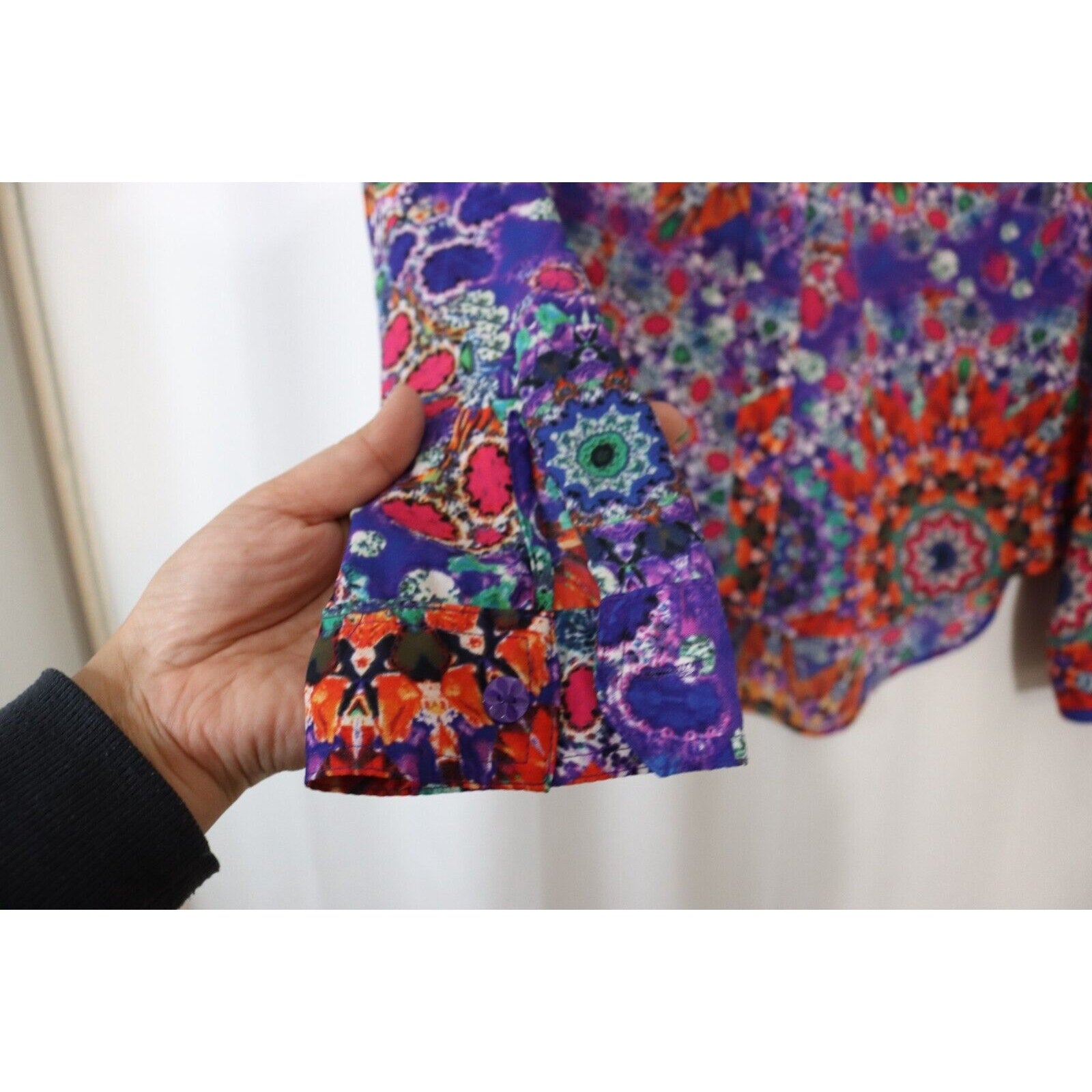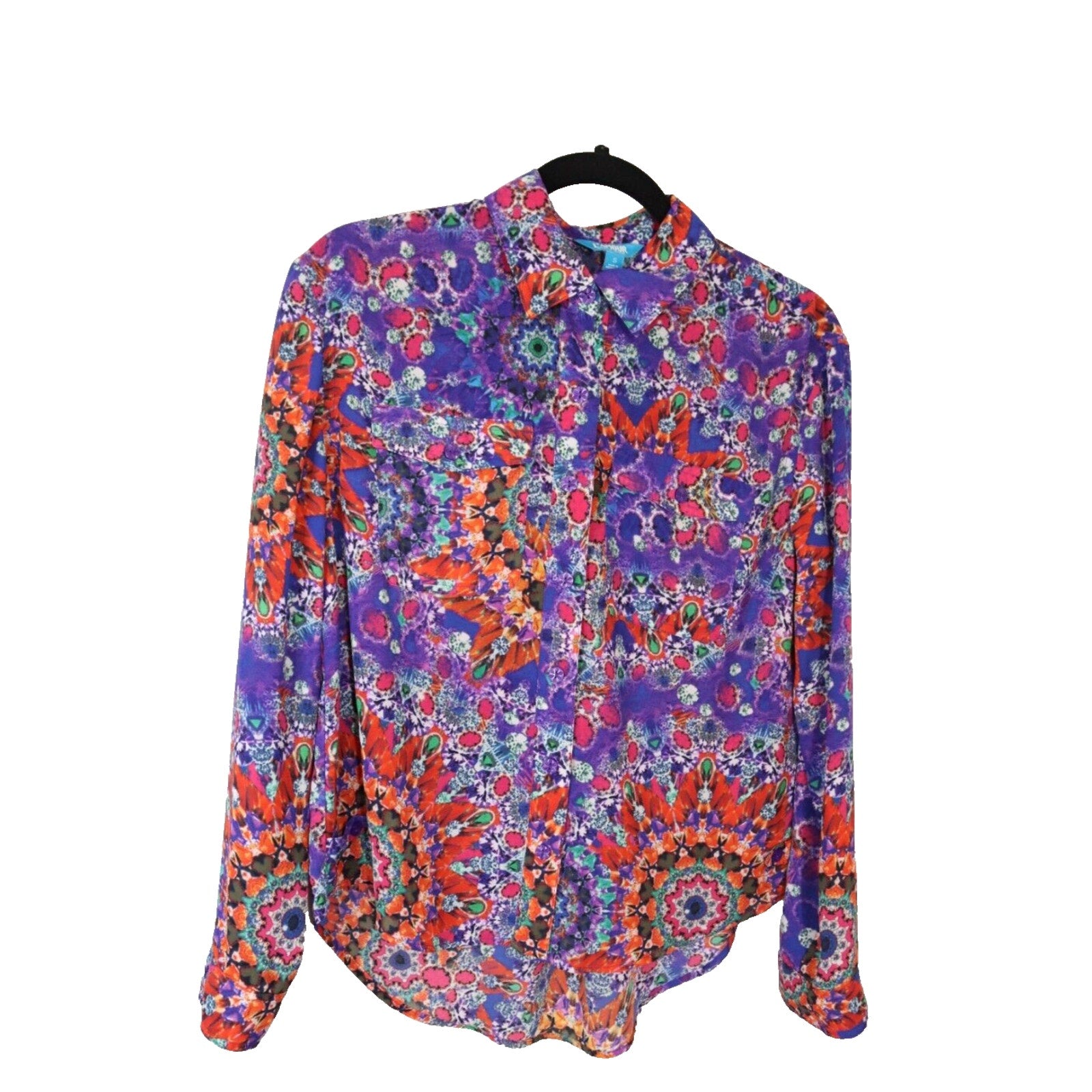 This beautiful button-up top by Nanette Lepore is a must-have for any fashion-forward woman. Featuring a stunning floral pattern and a collared neckline, this top is perfect for both casual and formal occasions. The long sleeves and high-low hemline add a touch of elegance to the overall design. Made from sheer polyester material, this top is both comfortable and lightweight. The button closure ensures a secure fit, while the multicolor design adds a pop of color to any outfit. Available in size small, this top is perfect for any woman looking to add a basic yet stylish piece to her wardrobe.