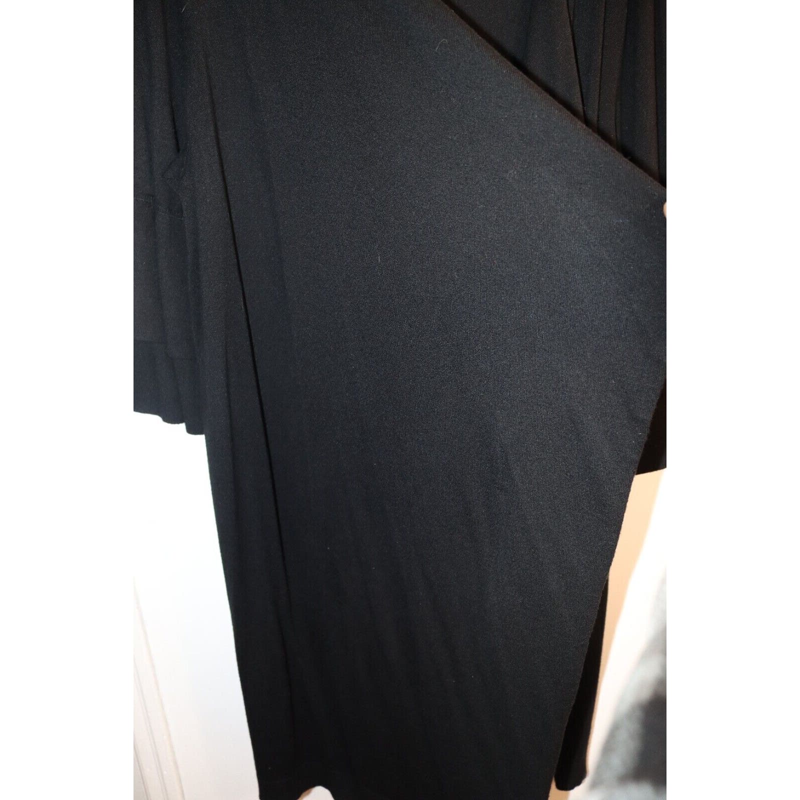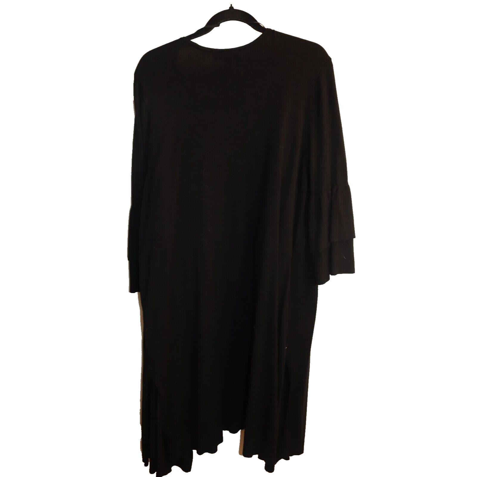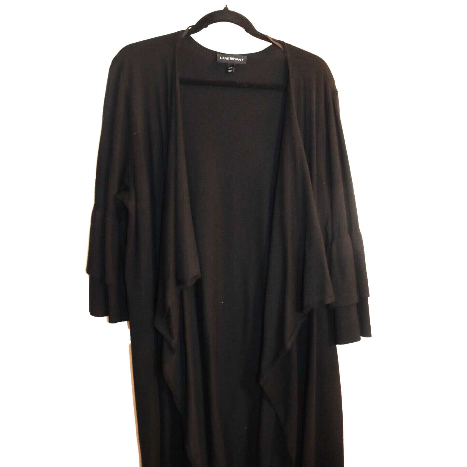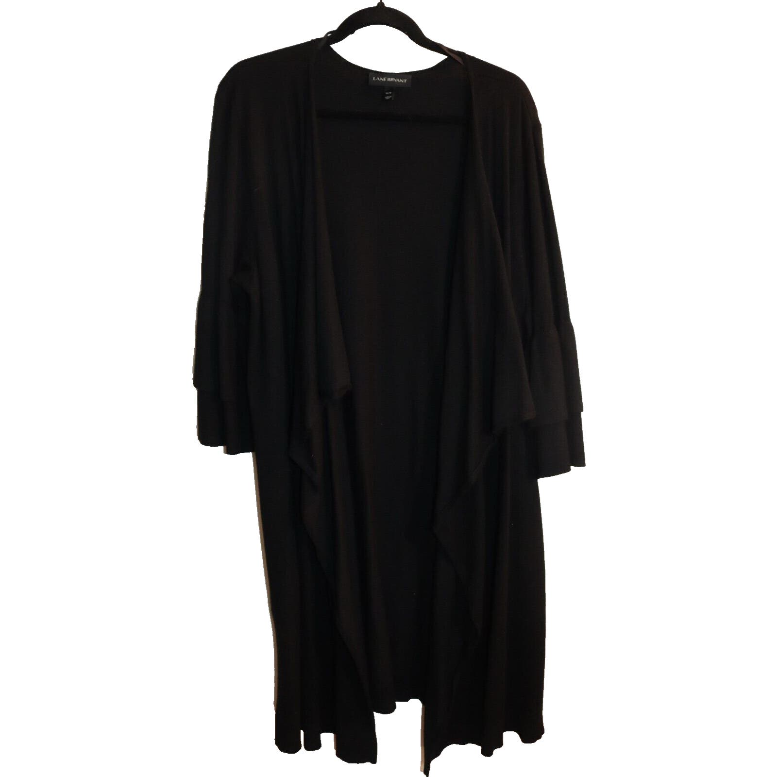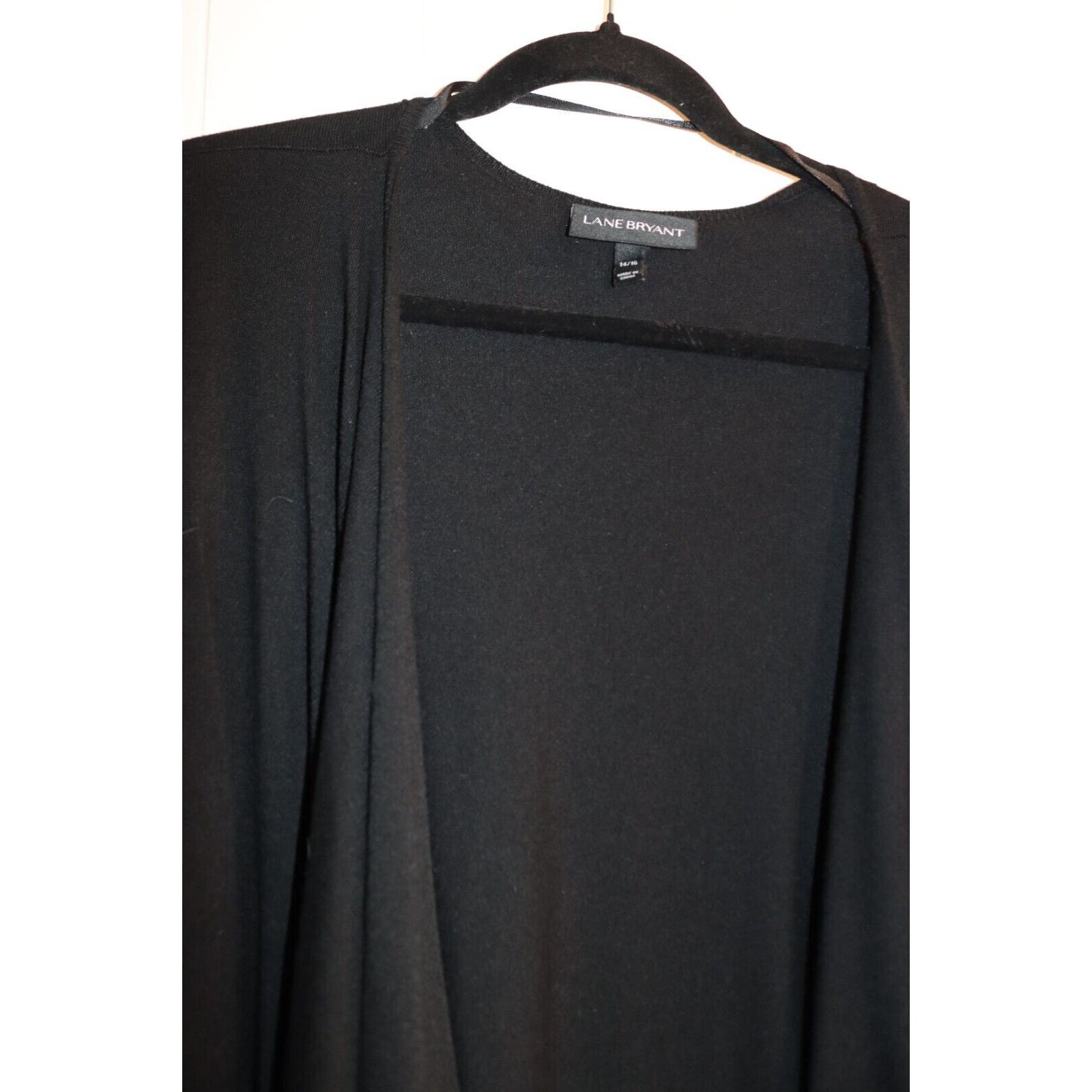 Stay cozy and stylish with this beautiful Lane Bryant Black Open Cardigan in size 14. Made of a combination of Nylon and Rayon, this cardigan features an open design with a waterfall front that drapes beautifully over any outfit. The 3/4 sleeve length is perfect for any occasion, whether it's for travel, casual or work wear. The classic and bohemian theme of this cardigan makes it a versatile addition to your wardrobe. It comes in solid black color and can be paired with any outfit. This sweater will keep you comfortable and warm during winter, fall and spring. Don't miss out on this perfect piece for your collection!