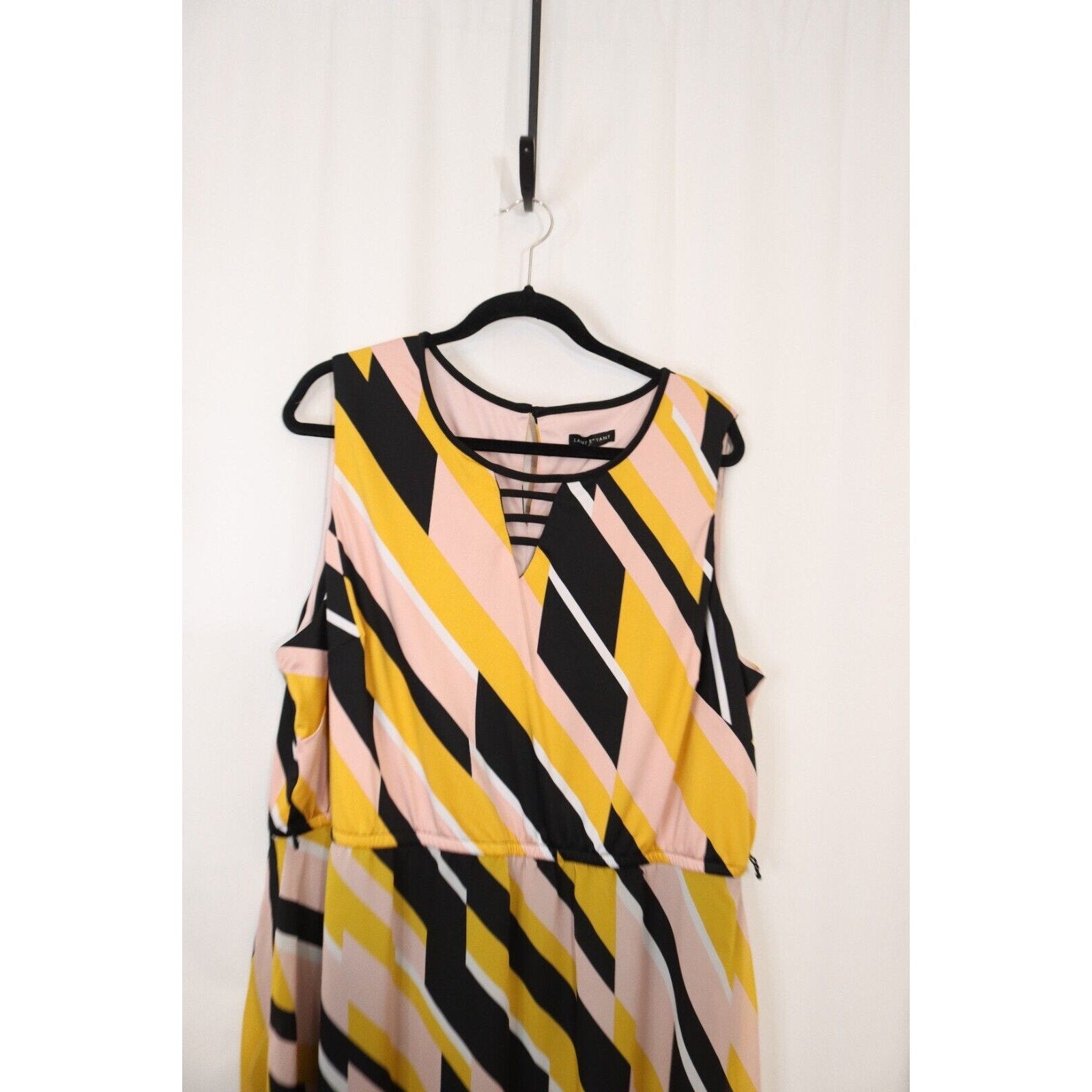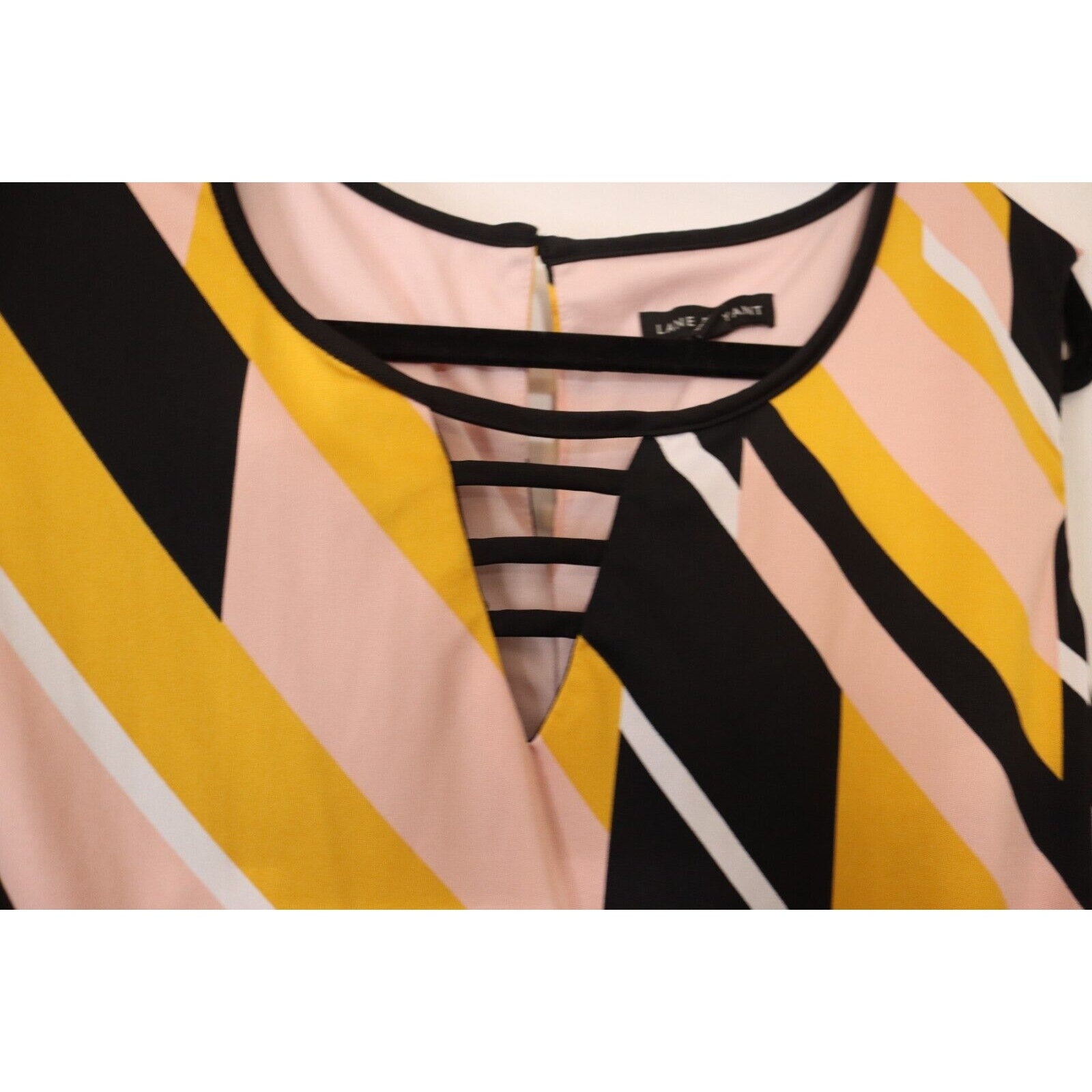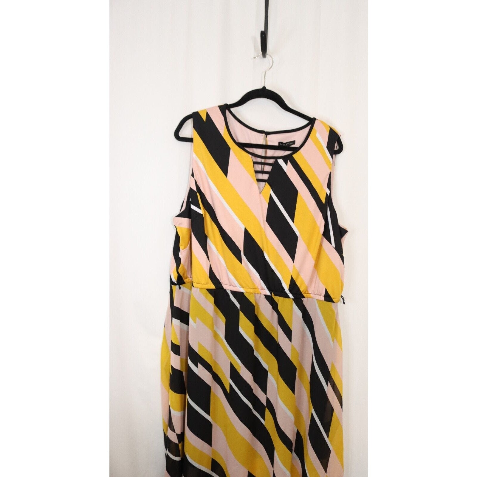 This colorful Lane Bryant dress is perfect for any summer or spring occasion. The sleeveless, pullover style features a geometric pattern in multicolor shades, made from a blend of polyester and spandex for a comfortable fit. The dress is a size 26, plus size, and has a long maxi length with a fit and flare style. The dress is perfect for travel or casual wear, and is fully lined for added comfort. Its vibrant colors and stylish design make it a great addition to any wardrobe. Whether you're going on vacation or just out for a day with friends, this Lane Bryant dress is sure to impress.