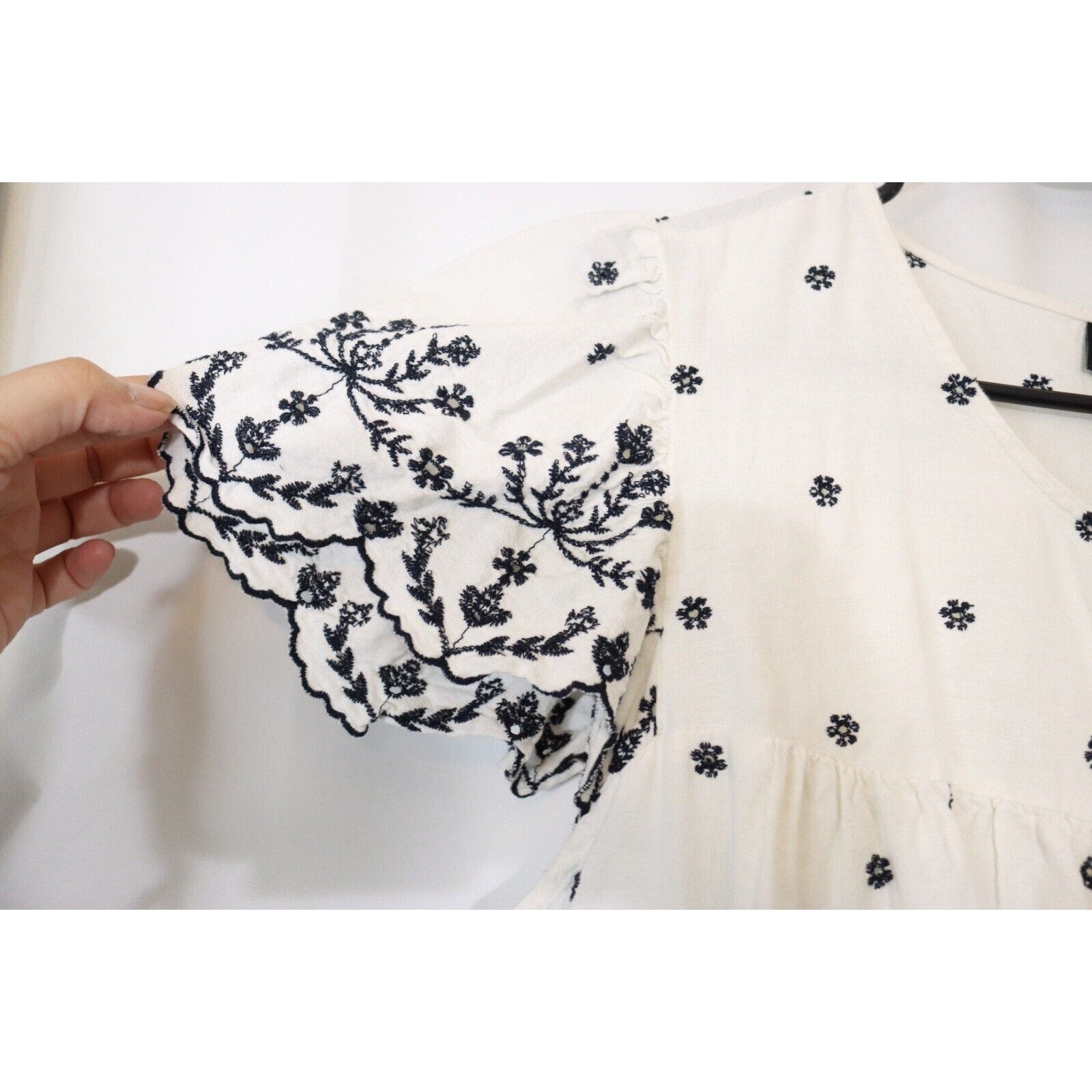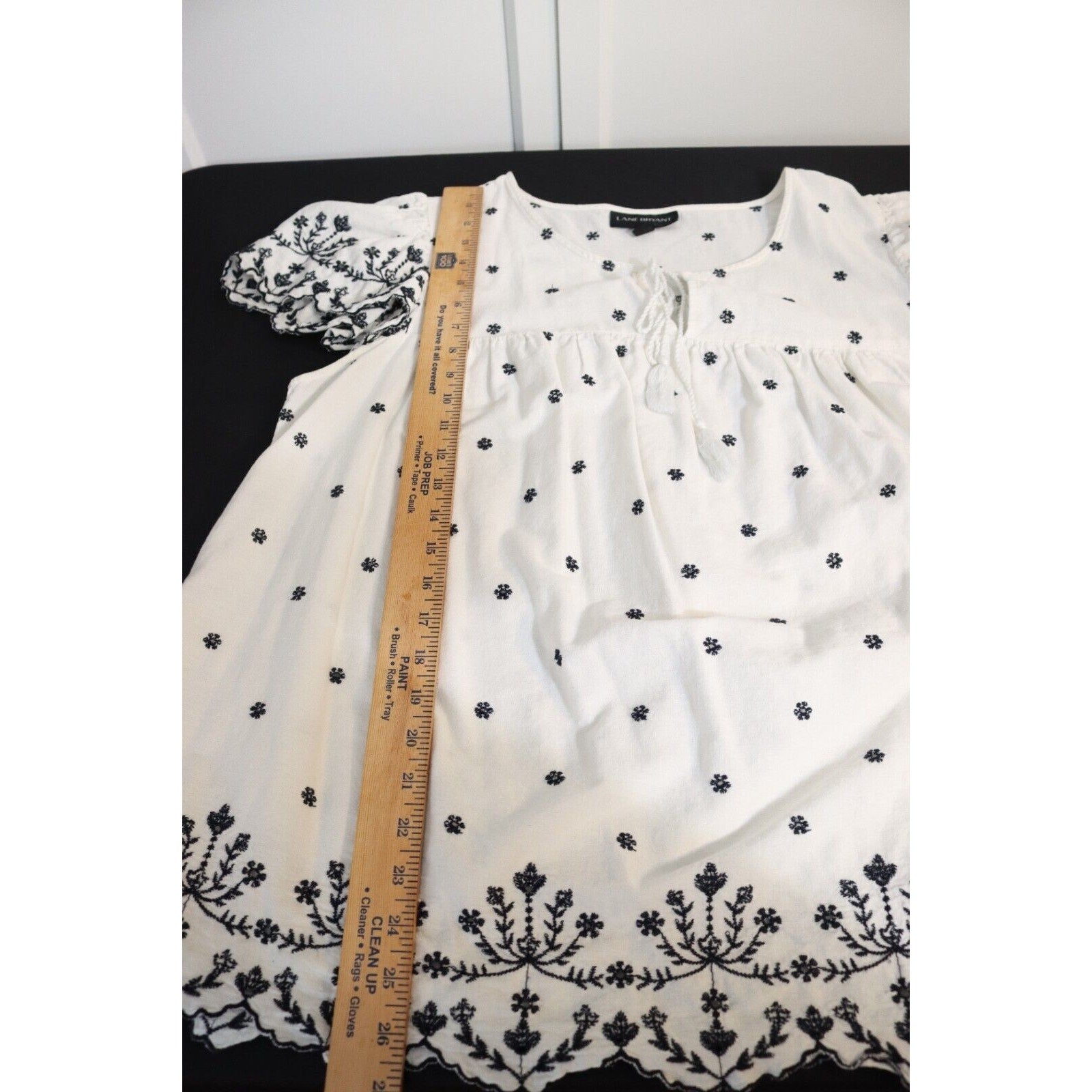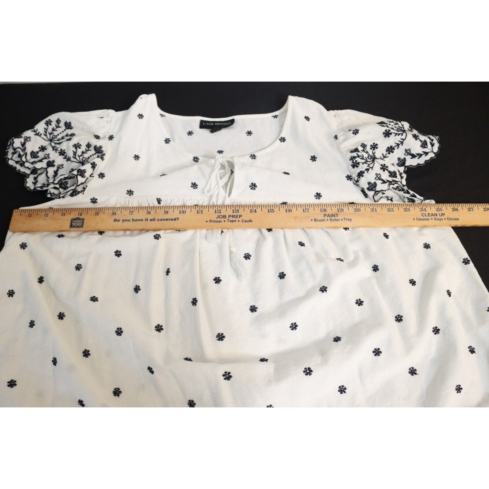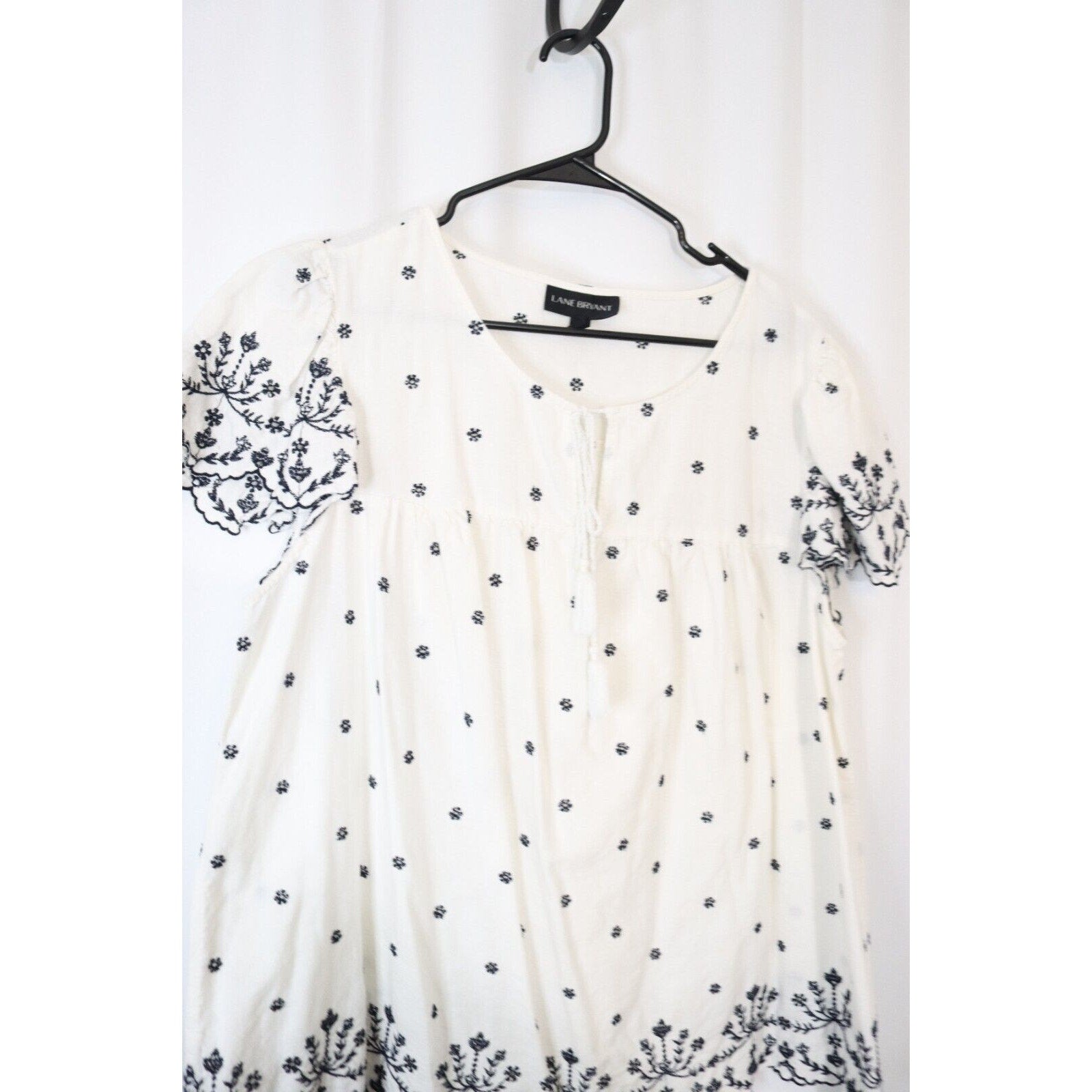 This Lane Bryant blouse is a versatile addition to any wardrobe. The white and black floral pattern is perfect for any occasion. The short sleeves and pullover closure make it easy to wear, while the embroidered accents add a touch of elegance. Made of a blend of polyester, linen, and cotton, it is comfortable and breathable. This blouse is perfect for any woman looking for a basic yet stylish top.
