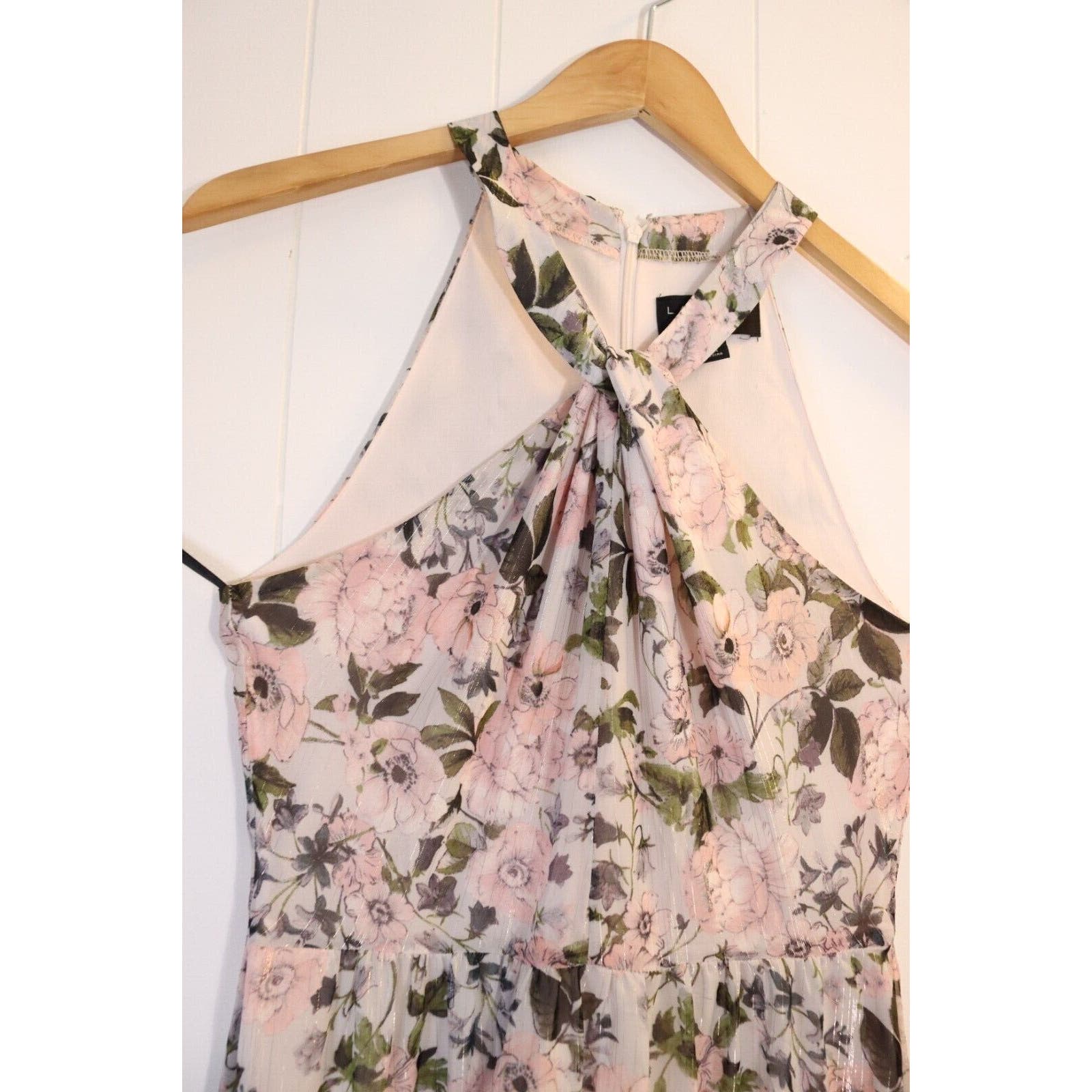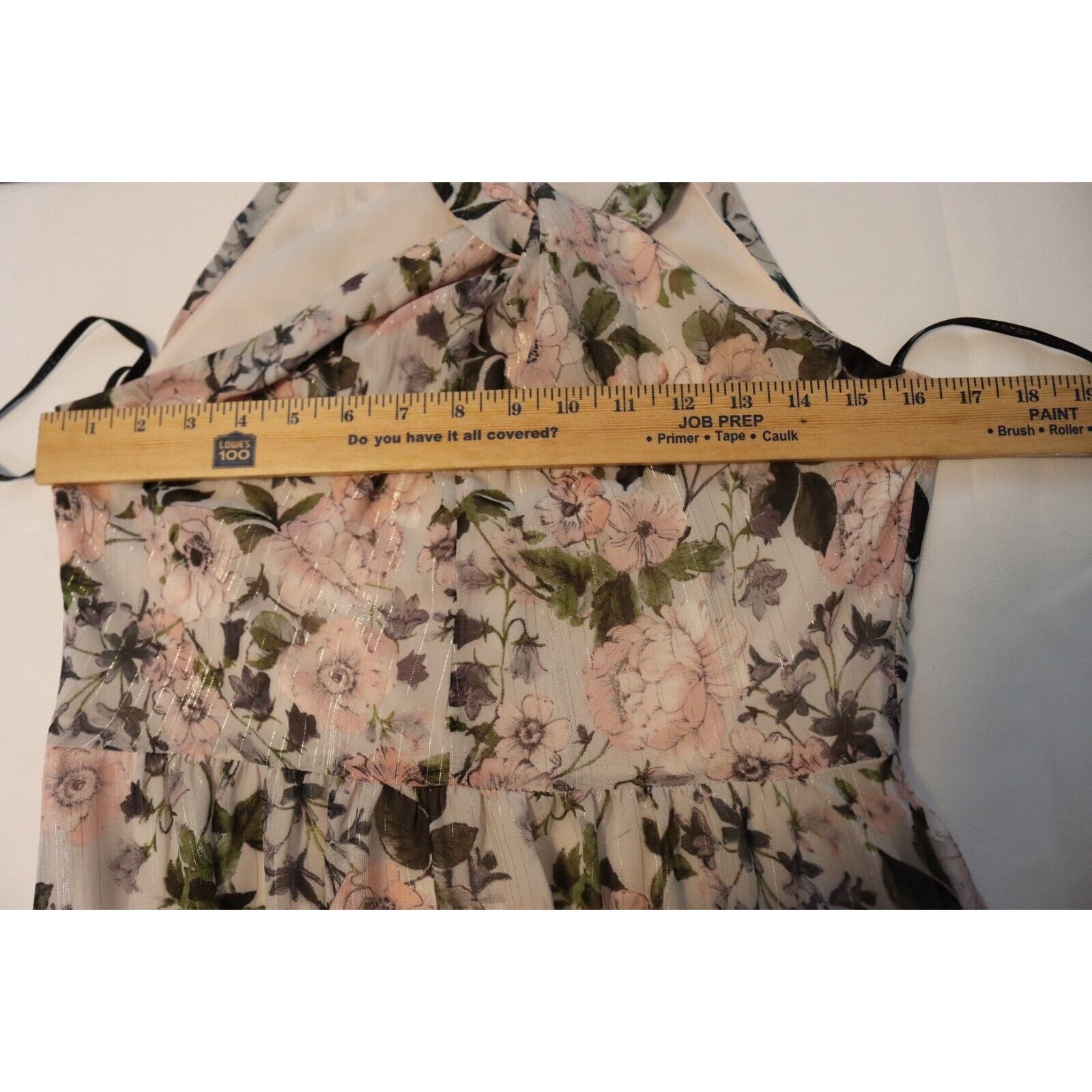 Introducing the Laundry by Shelli Segal Women's Pink Floral Metallic Long Maxi Dress – a breathtaking fusion of romance and glamour that's sure to turn heads. Crafted with meticulous attention to detail, this dress captures the essence of feminine beauty and contemporary elegance.