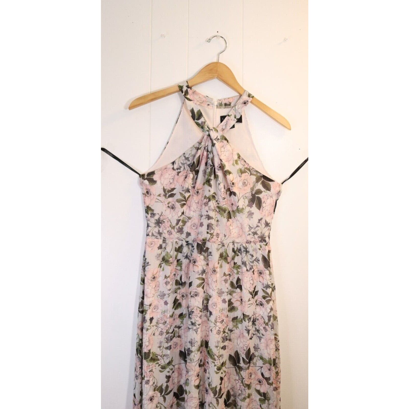 In a size 6, this dress is tailored to provide a flattering fit that accentuates your silhouette while allowing you to move with grace and comfort. The long maxi length adds a touch of drama, making it a perfect choice for special occasions.