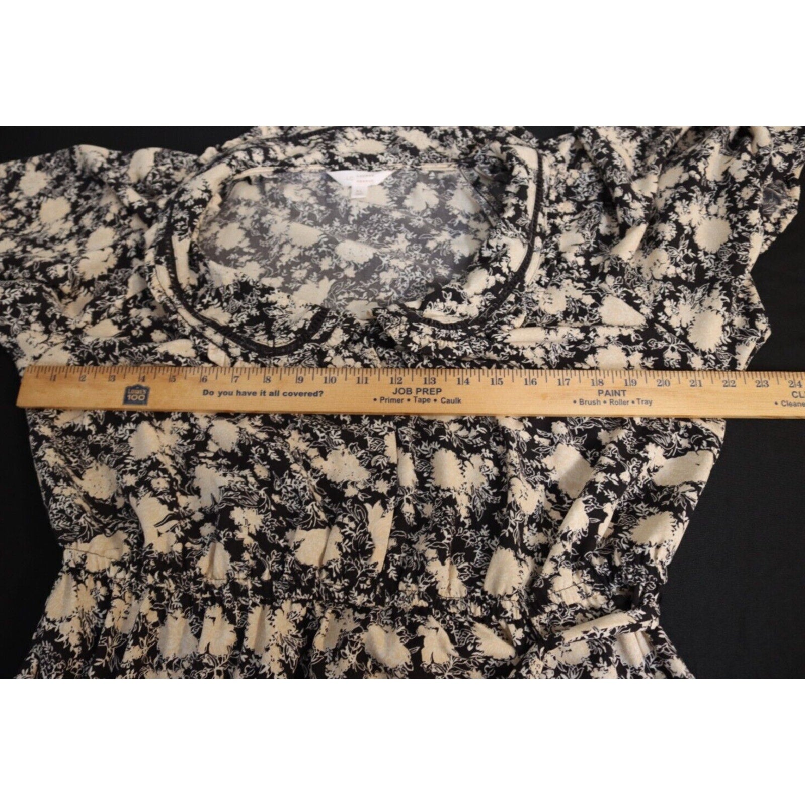Elevate your wardrobe with this stunning Lauren Conrad dress featuring a striped pattern, collared neckline, and a fit & flare style. The dress comes in a beige and black color combination and is made of lightweight polyester material that is perfect for summer, fall, and spring seasons. It also has 3/4 sleeves and a knee-length hemline, making it suitable for a variety of occasions including parties, casual outings, and business meetings. The dress is machine washable and has a belted waistline that accentuates your curves. It is available in XL. The garment care is easy, and it is not handmade. This dress is a must-have for any fashion-forward woman who wants to look her best without compromising on comfort.