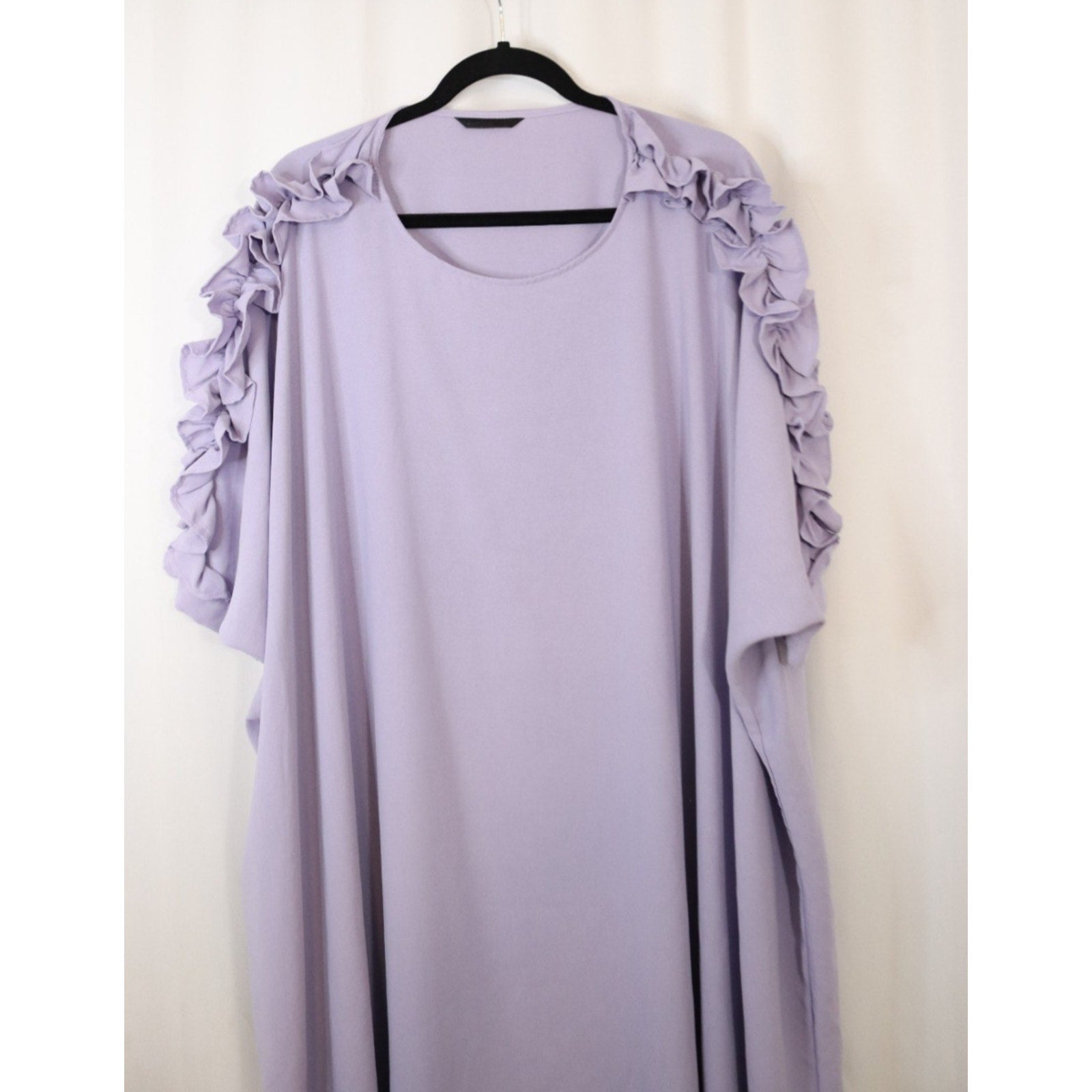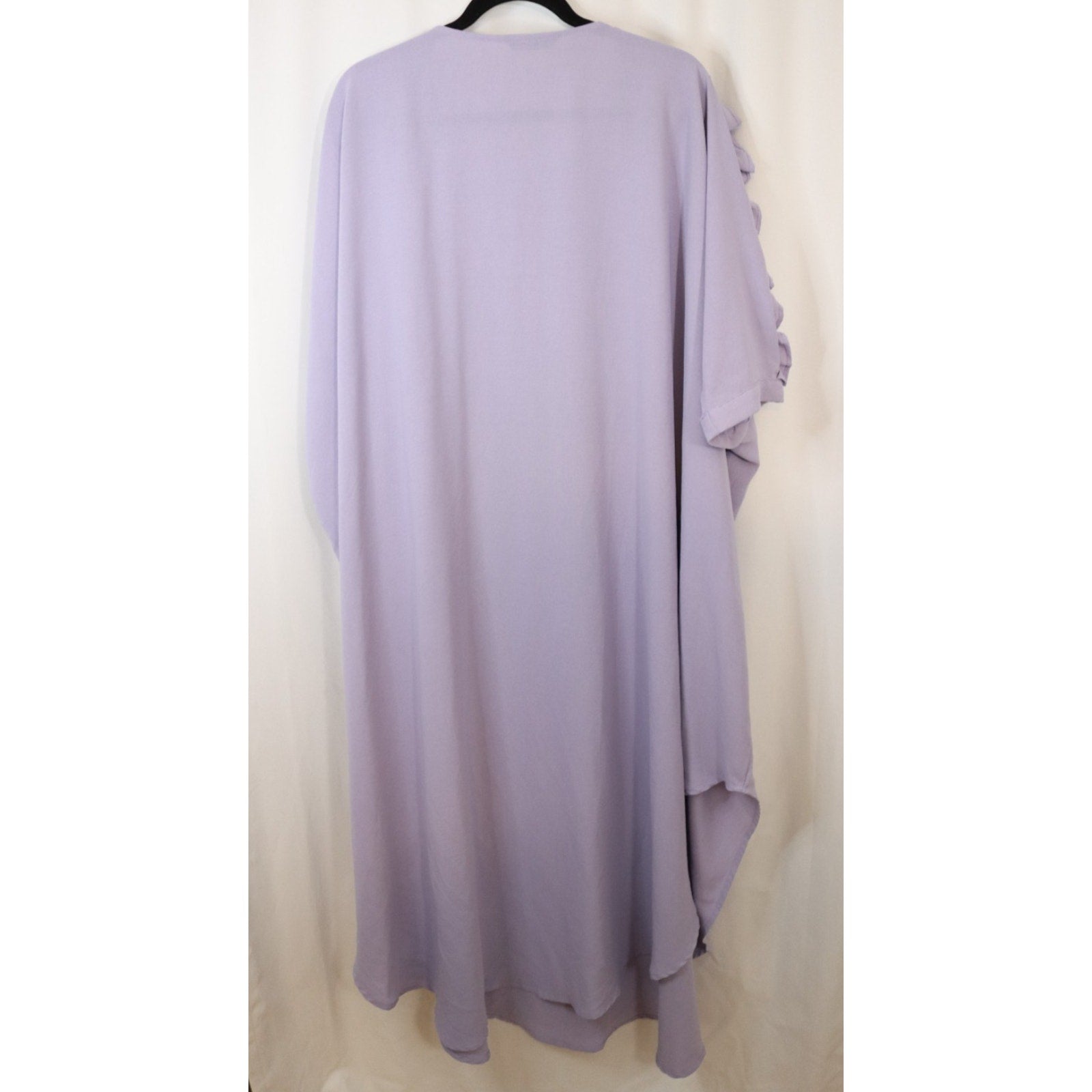 The Lilac Lavender Short Sleeve Batwing Abaya Jilbab is a stylish and versatile kaftan designed for women. This one-size outfit features a round bottom and a beautiful purple color, perfect for adding a touch of elegance to any outfit. The comfortable and loose fit of this abaya allows for easy movement and stylish wear, making it a popular choice for those looking for a special piece to add to their wardrobe.