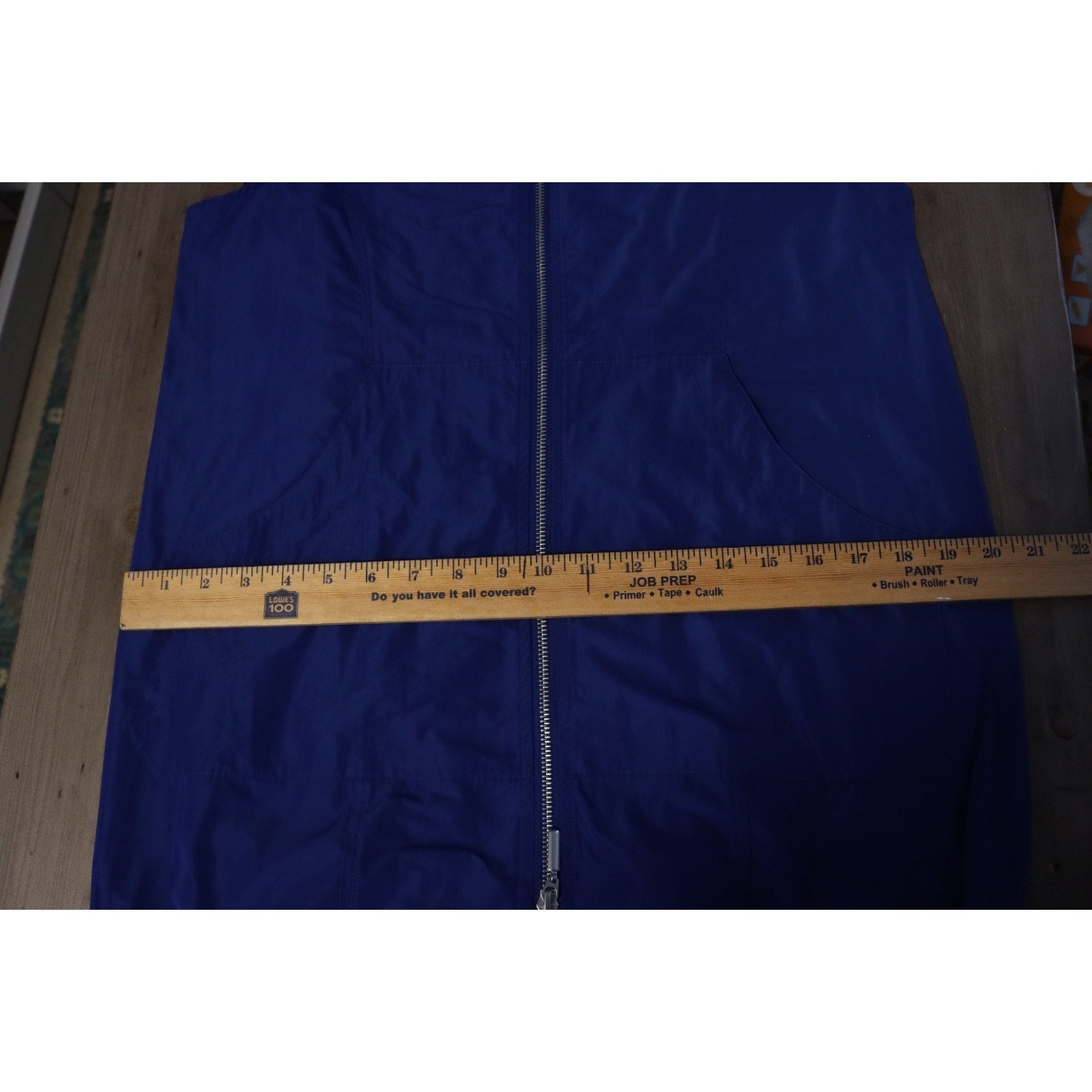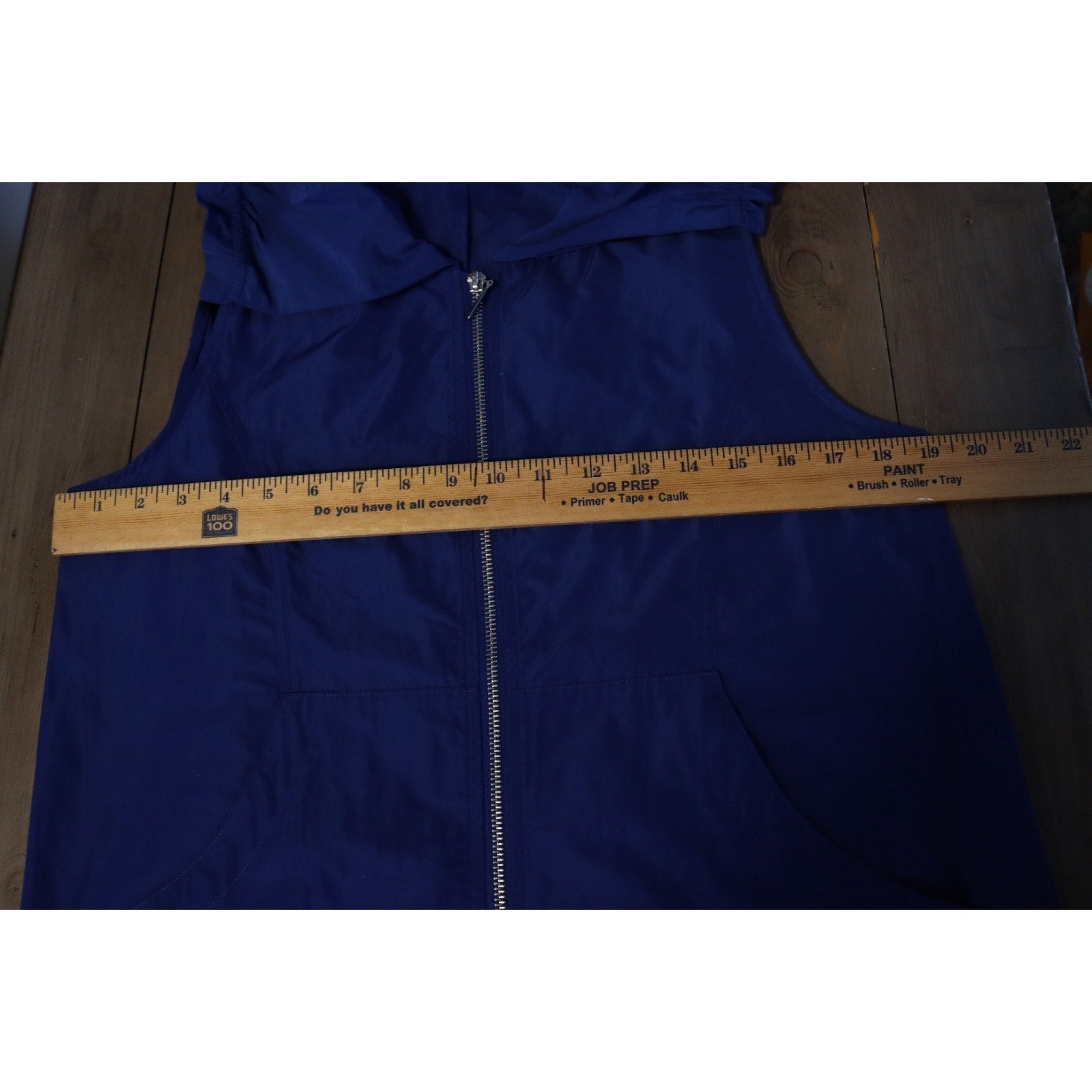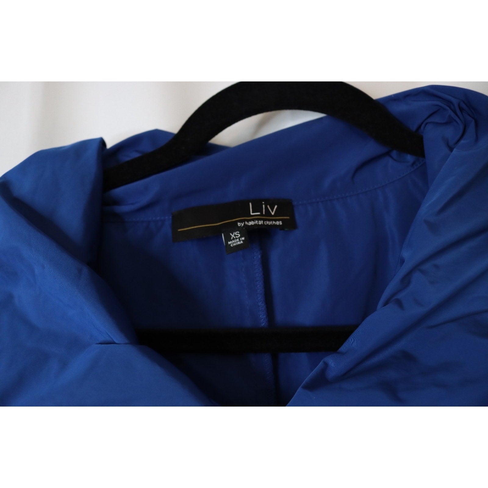 The Liv by Habitat Clothes XS Blue Zip Up Vest is a stylish and versatile outerwear piece perfect for casual occasions. Made from lightweight polyester, this sleeveless vest features a solid blue color with a zip closure for easy wear. Ideal for sports-themed outfits or layering during the winter, fall, or spring seasons, this windbreaker from the brand Liv by Habitat Clothes is a must-have addition to any woman's wardrobe.