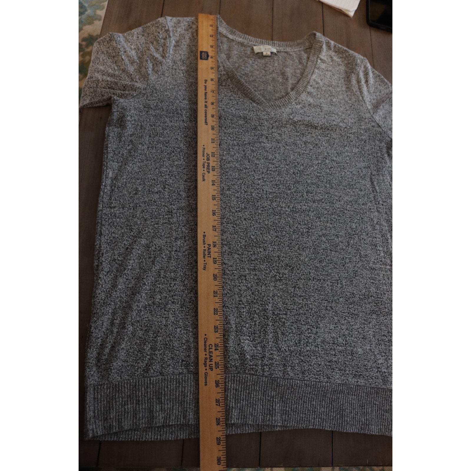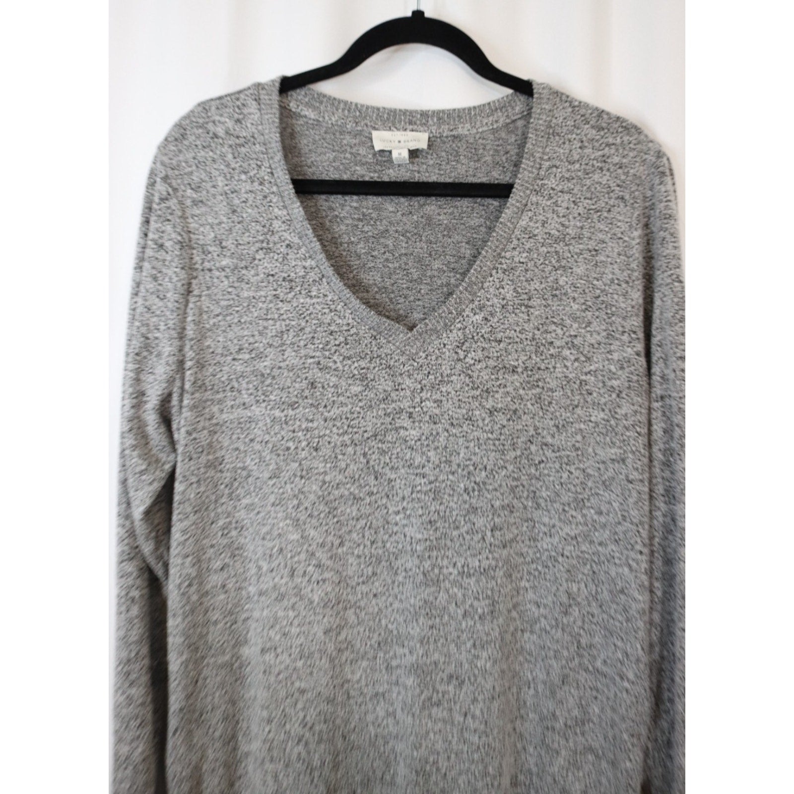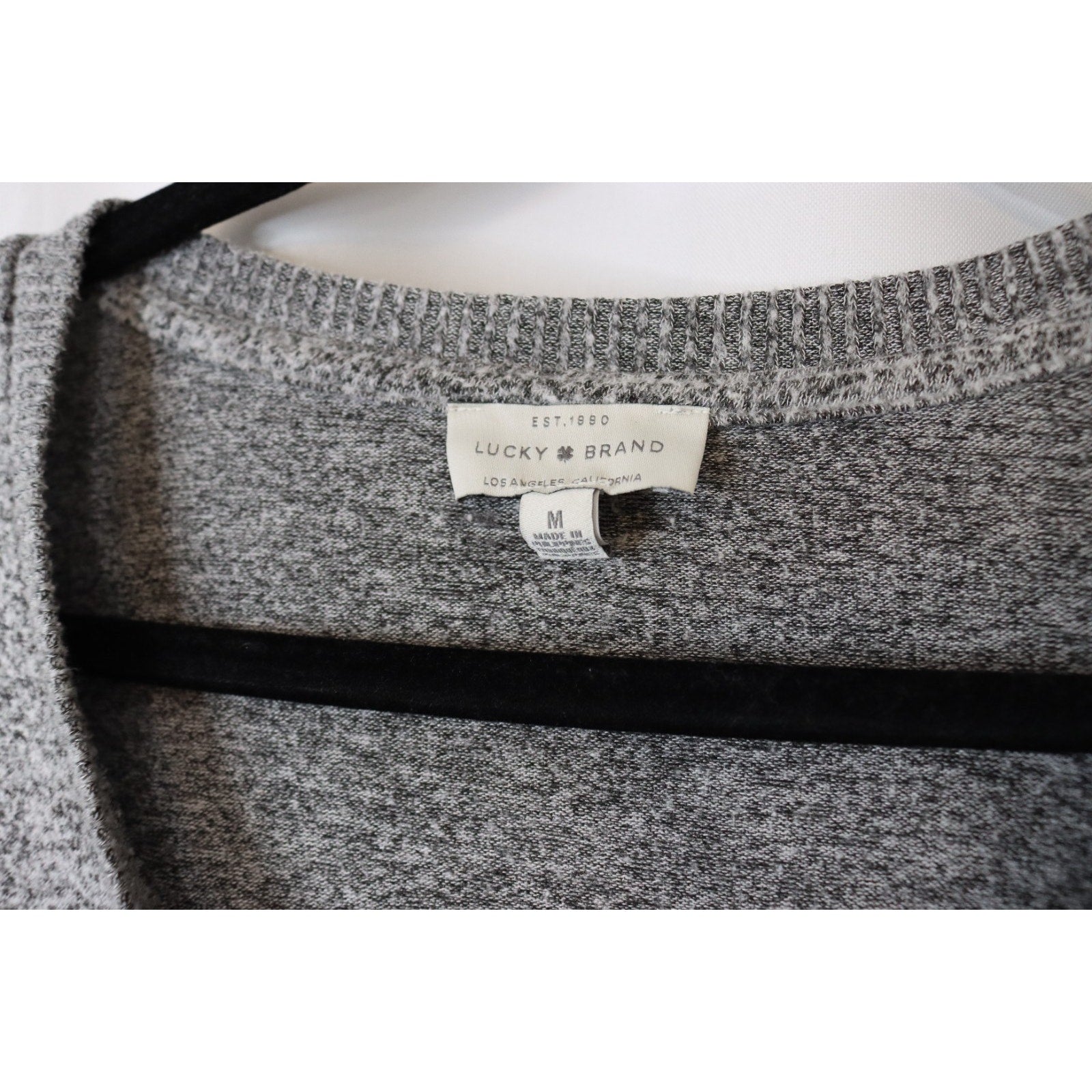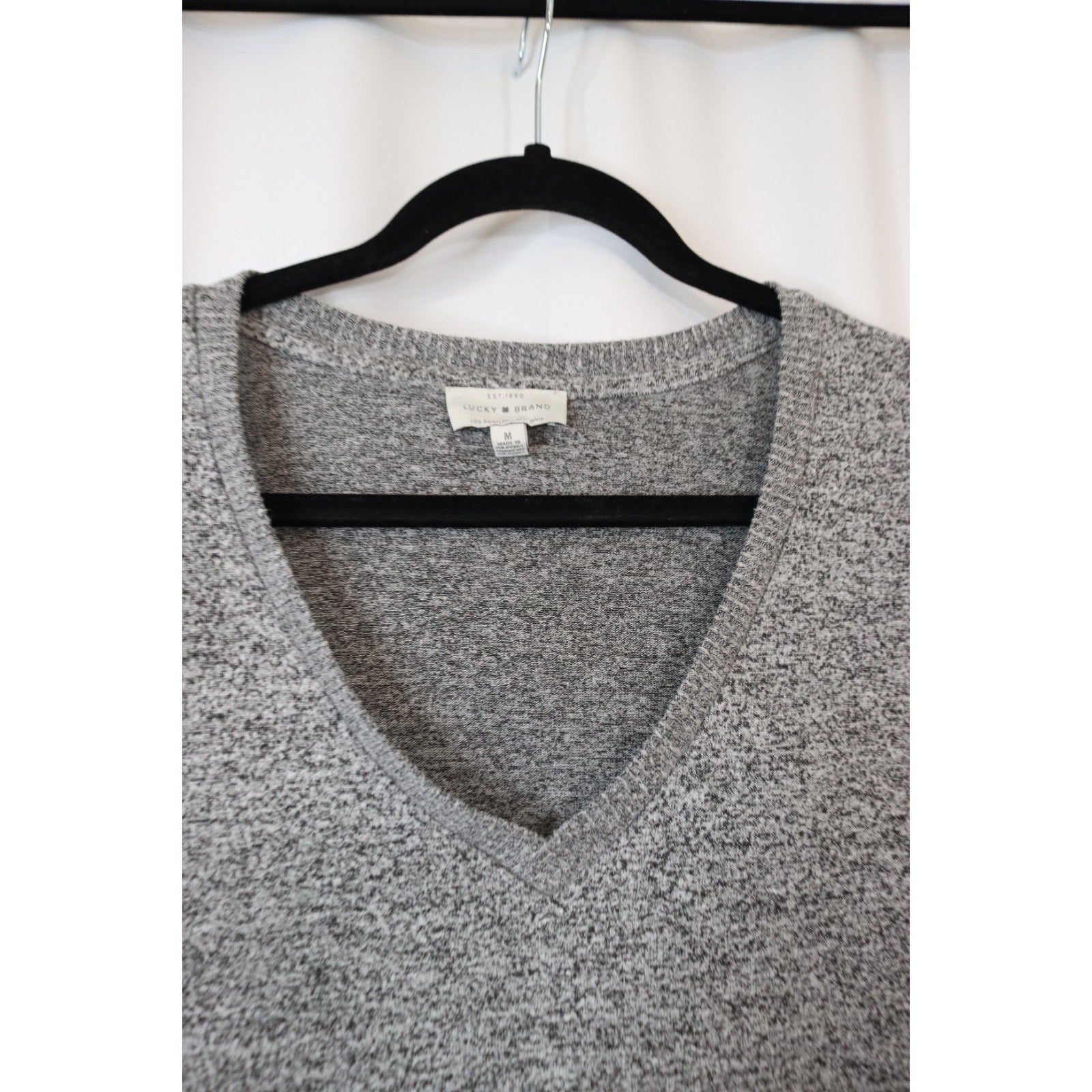 The Lucky Brand M Sweater in Heathered Gray is a versatile and stylish addition to any woman's wardrobe. This lightweight V-neck sweater features a tight-knit construction, making it perfect for layering during the winter, fall, or spring seasons. Made from a blend of polyester, spandex, and viscose, this sweater offers a relaxed fit for comfort and ease of movement. Whether for casual outings, workwear, or business settings, this sweater is machine washable and easy to care for, making it a convenient and fashionable choice for any occasion.