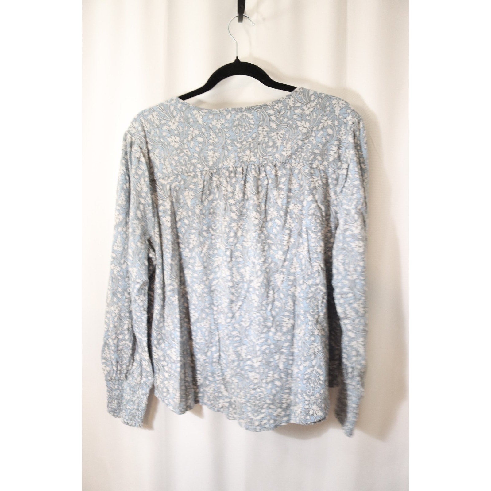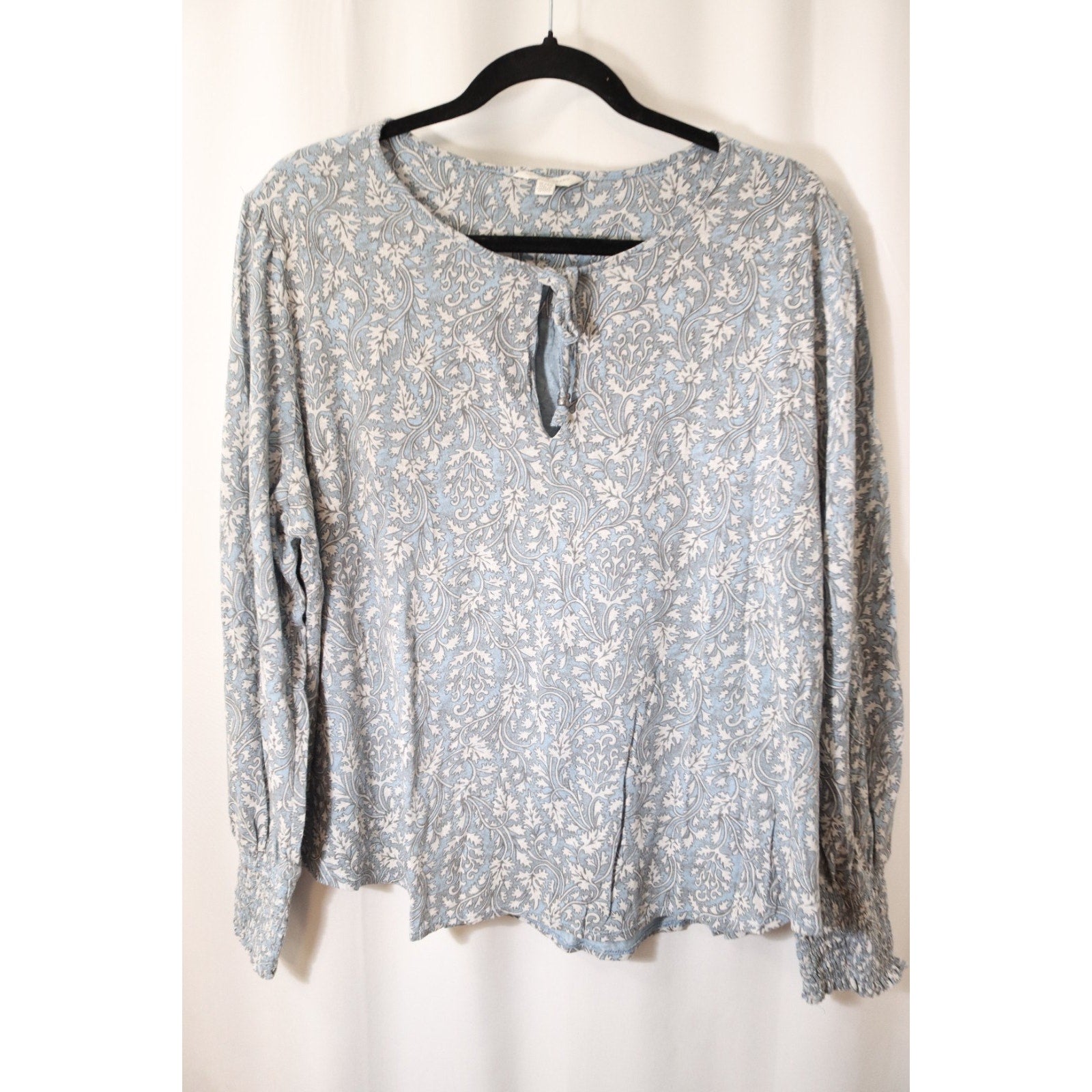 The Lucky Brand Grey Blue Long Sleeve Top in XL size is a versatile and stylish addition to any woman's wardrobe. Made from a comfortable blend of cotton and modal, this lightweight top features a floral pattern, perfect for a casual bohemian or peasant style. The long sleeves and basic style make it suitable for everyday wear, while the gray/blue color adds a trendy touch. Perfect for pairing with jeans or leggings, this top is both fashionable and easy to wear.