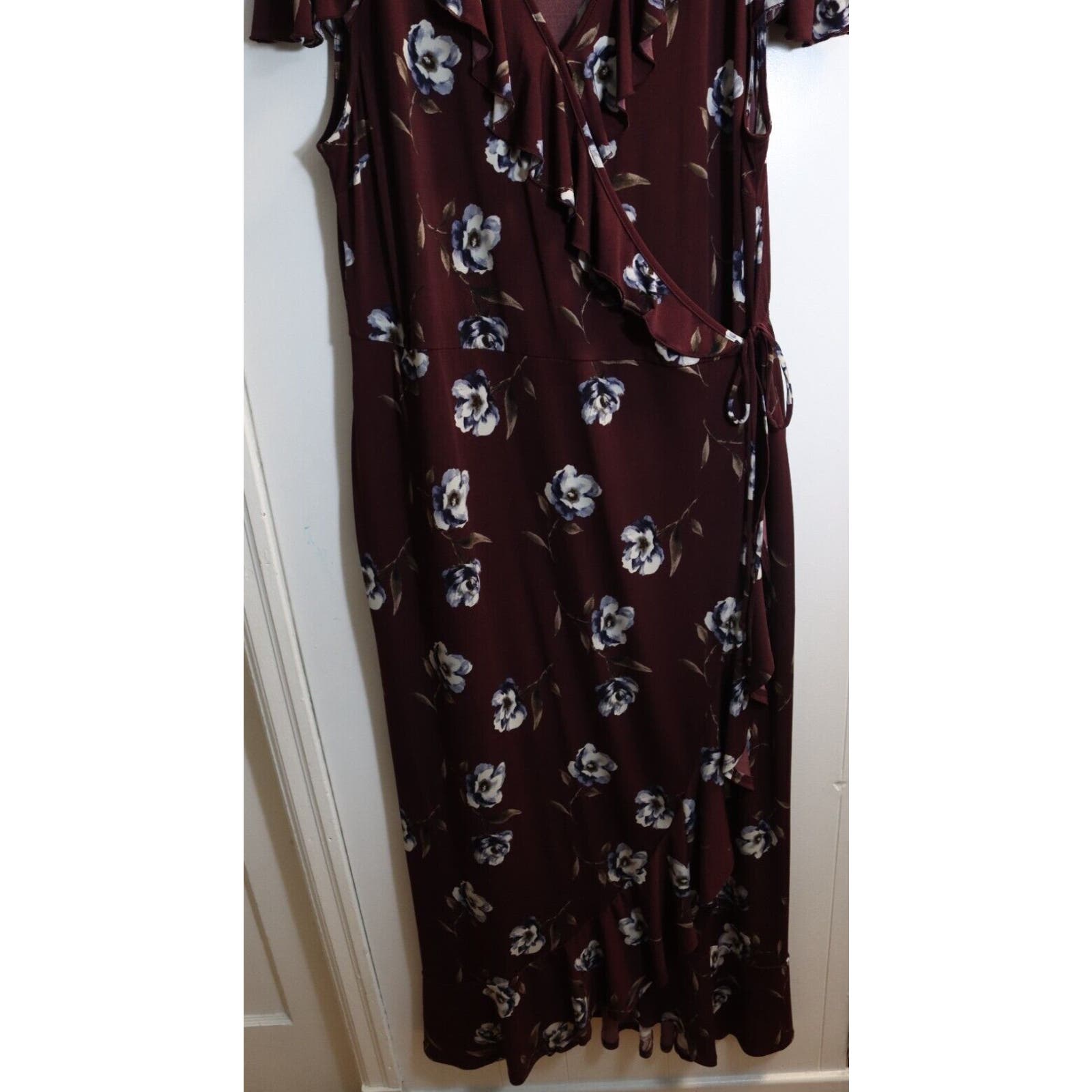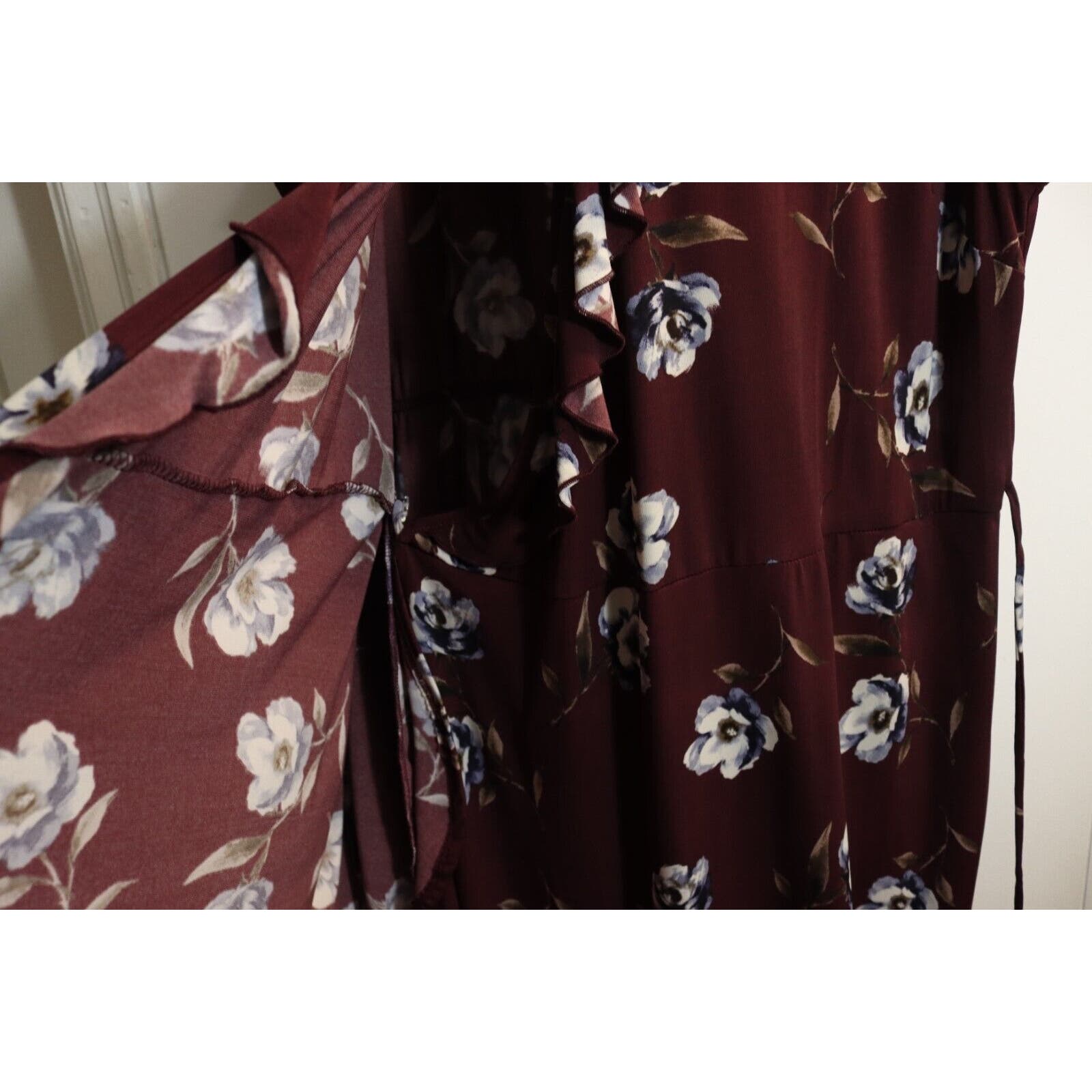 This beautiful black floral wrap dress from Maurices is perfect for any occasion whether it's a casual day out, a party, or even for travel. Made of a comfortable blend of polyester and spandex, this dress is designed to flatter with a tie closure and short sleeves. The dress length is long, making it suitable for any height, and the pattern is a lovely floral theme that adds a touch of femininity. The dress is a plus size 2 and is perfect for women who want to feel comfortable and confident in their clothing. The brand, Maurices, is known for its quality clothing, and this dress is no exception. So, whether you're looking for a dress for a special occasion or just to add to your wardrobe, this black floral wrap dress is the perfect choice.