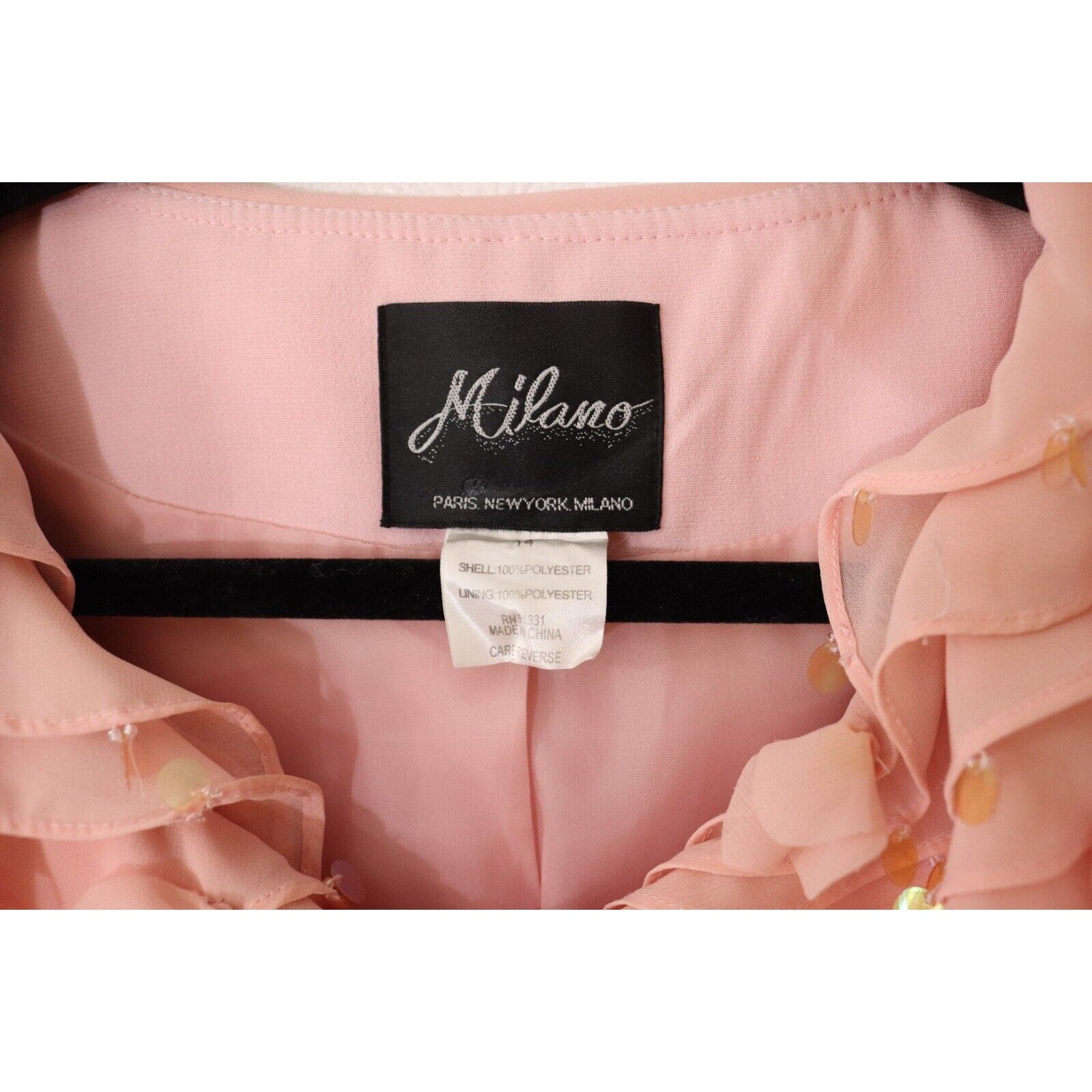 Add a touch of elegance to your wardrobe with this beautiful pink blazer from Milano. Made of high-quality polyester, this mid-length blazer features a solid pattern with button closure and accents. Perfect for any occasion, whether it be a party, formal event or business meeting. The blazer is designed for women in size 14 and is suitable for regular use. The blazer is ideal for the winter, fall and spring seasons. Get ready to turn heads with this stunning piece from Milano.