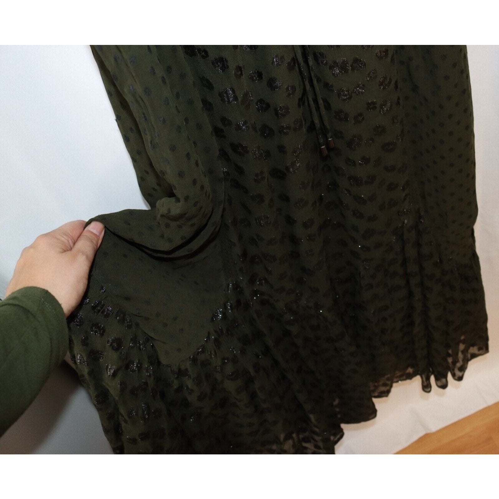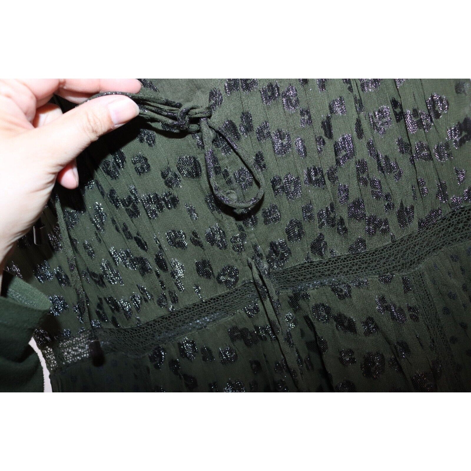 Stunning Mint Velvet maxi dress in a beautiful shade of green. This elegant dress features intricate lace detailing and a comfortable lining. The dress measures 53" in length and has a 21" long section that is a blend of rayon and polyester.