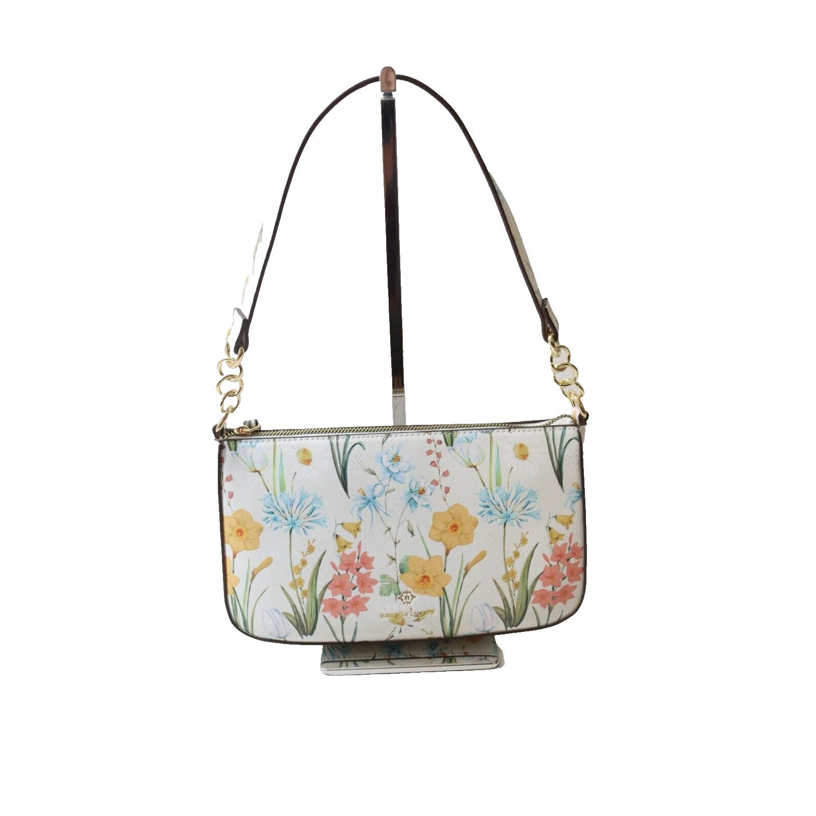 This adorable small shoulder bag is perfect for the girl looking for style and function. From Nanette Lepore, this bag features a beautiful floral pattern giving it a girly touch. The bag is equipped with a zipper closure to keep your belongings safe and secure. The bag is made of high-quality faux leather and the hardware is gold, giving it a chic and expensive look. The bag has a few compartments, including inner and outer pockets, allowing you to organize your belongings. This bag also features a lightweight design so it won't weigh you down.