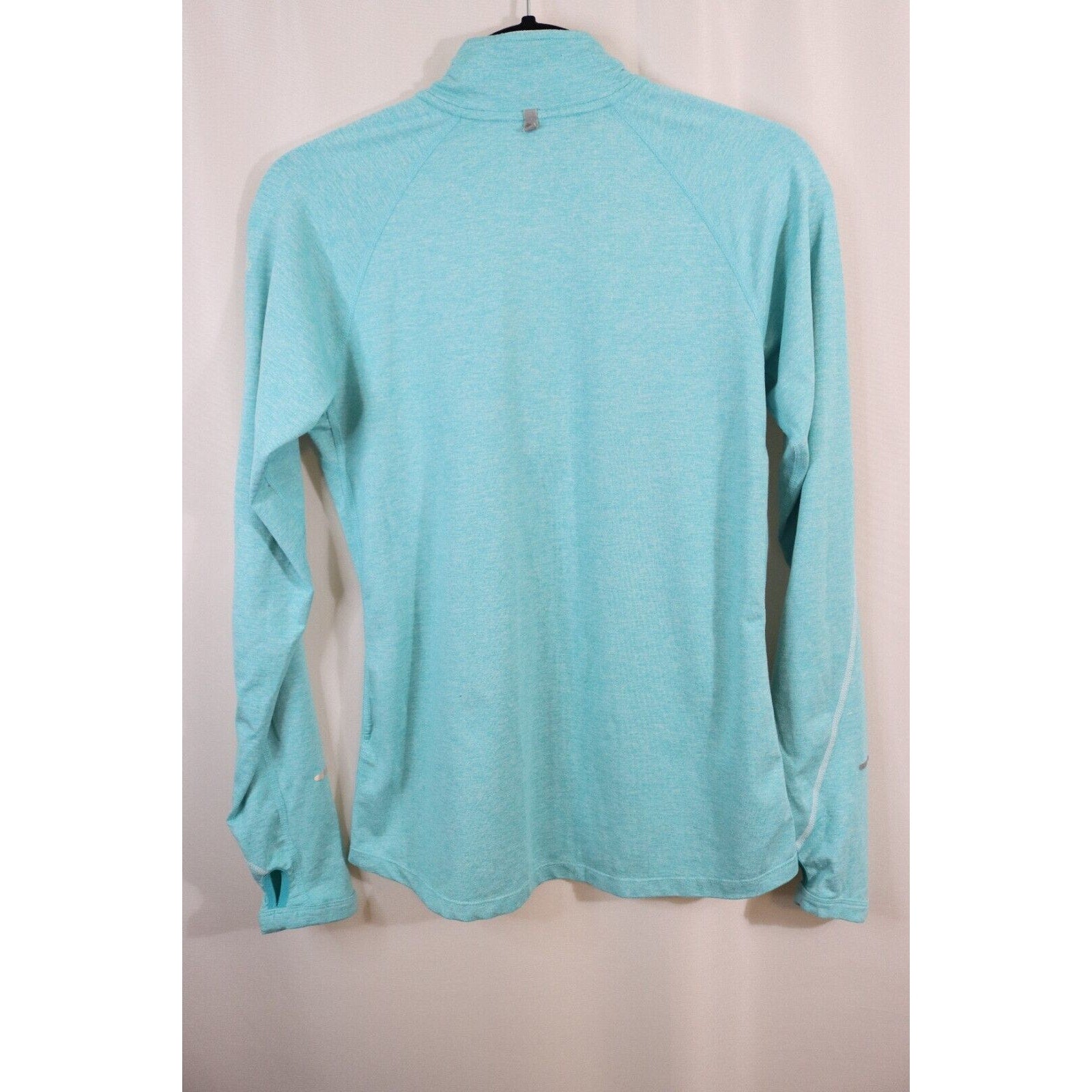 This Nike Dri-Fit running sweater in teal is perfect for any athlete. The long sleeves and breathable fabric make it ideal for running and jogging, while the solid pattern and athletic fit ensure comfort and style. The sweater is designed for casual wear, and its size small makes it perfect for women who prefer regular size clothing. The Nike brand guarantees quality, and the Dri-FIT technology ensures that you stay dry and comfortable during your workout. This sweater is a must-have for any woman who loves outdoor and sports activities.