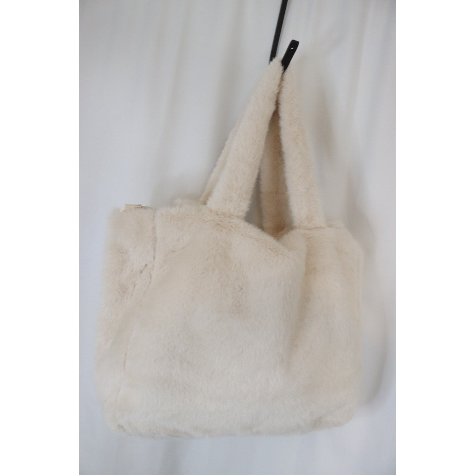The NWT White Faux Fur Victoria's Secret Shoulder Bag is a luxurious and stylish accessory for women. This large rectangular bag features double white faux fur handles, making it easy to carry over the shoulder. The exterior is made of white faux fur, giving it a chic and elegant look. The bag is lined with polyester, providing durability and a comfortable feel. Perfect for adding a touch of glamour to any outfit, this shoulder bag is a must-have for fashion-forward individuals.