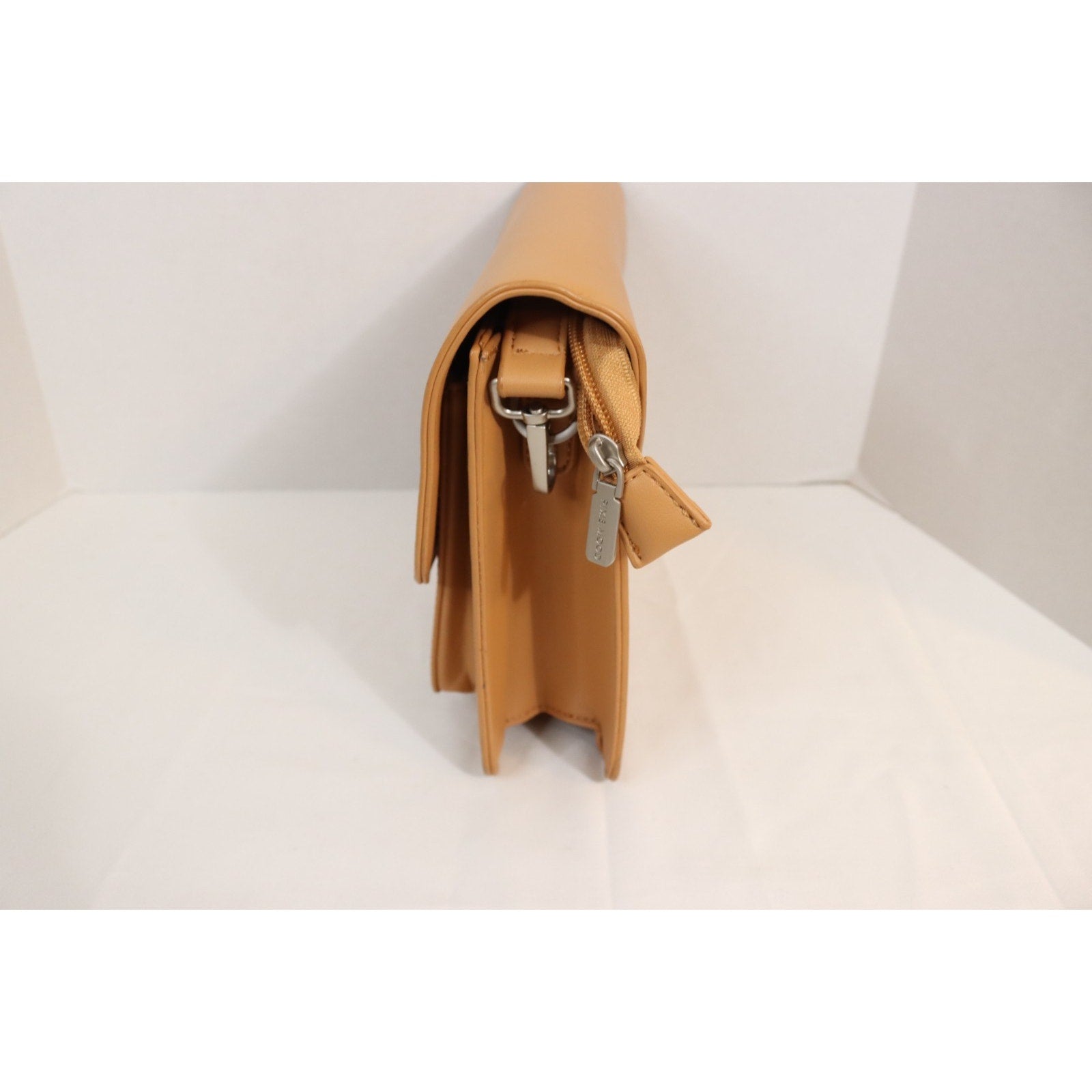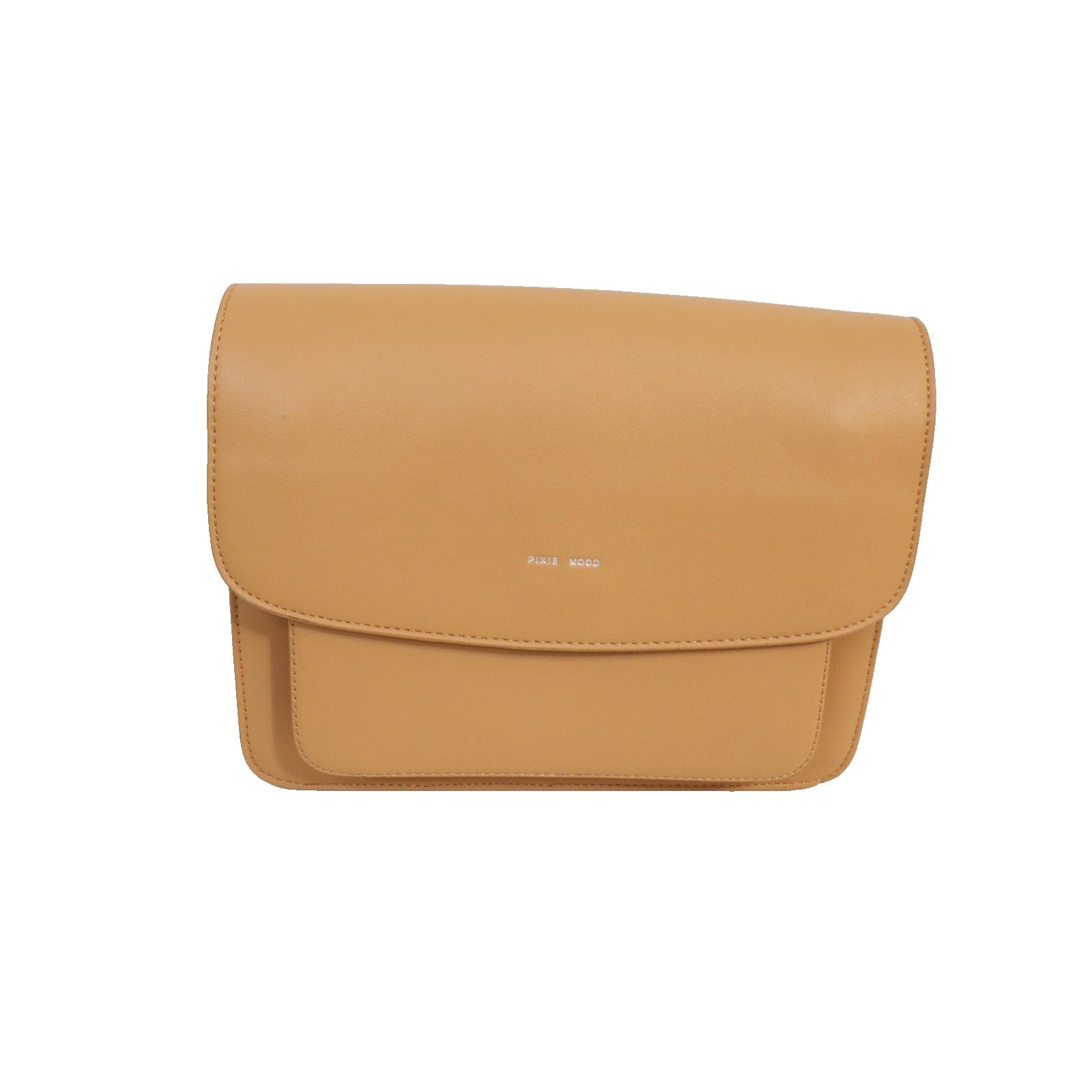 The Pixie Mood Honey Crossbody Bag is a medium-sized vegan leather bag with a solid honey color exterior and brown accents. It features an adjustable crossbody strap made of faux leather and a classic theme. The interior lining is brown, making it a stylish and versatile accessory for women on the go. The Pixie Mood brand is known for its quality craftsmanship and unique designs, making this bag a fashionable choice for everyday use.