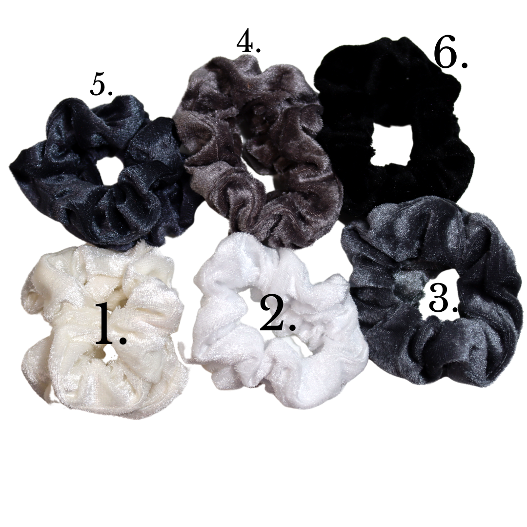 Whether you're fashioning a sleek bun, a chic ponytail, or a loose and carefree hairstyle, our Grey, Black, and White Velvet Poofs guarantee a secure and comfortable hold that won't compromise your hair's health. The elastic interior adapts seamlessly to various hair types and thicknesses, making these scrunchies a reliable choice for any occasion.