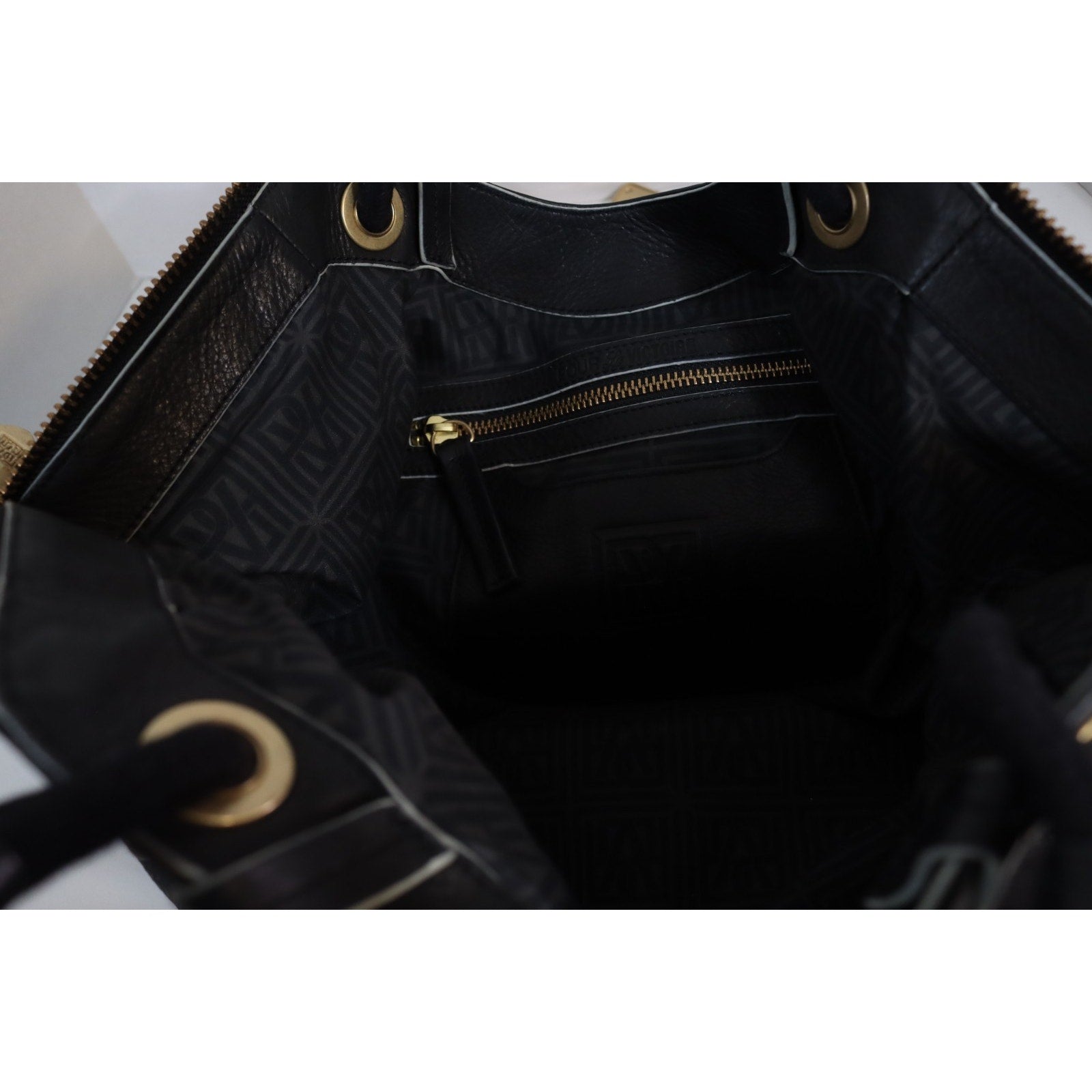 The Pour La Victoire Black Leather Bag is a stylish and spacious shoulder bag with double handles, perfect for carrying all your essentials. Made from high-quality leather with gold hardware accents, this large bag features a solid black exterior with a fabric lining in black. It includes inner pockets for organization and a zip closure for security. The Pour La Victoire brand ensures quality and sophistication, making this bag a versatile accessory for any outfit or occasion.