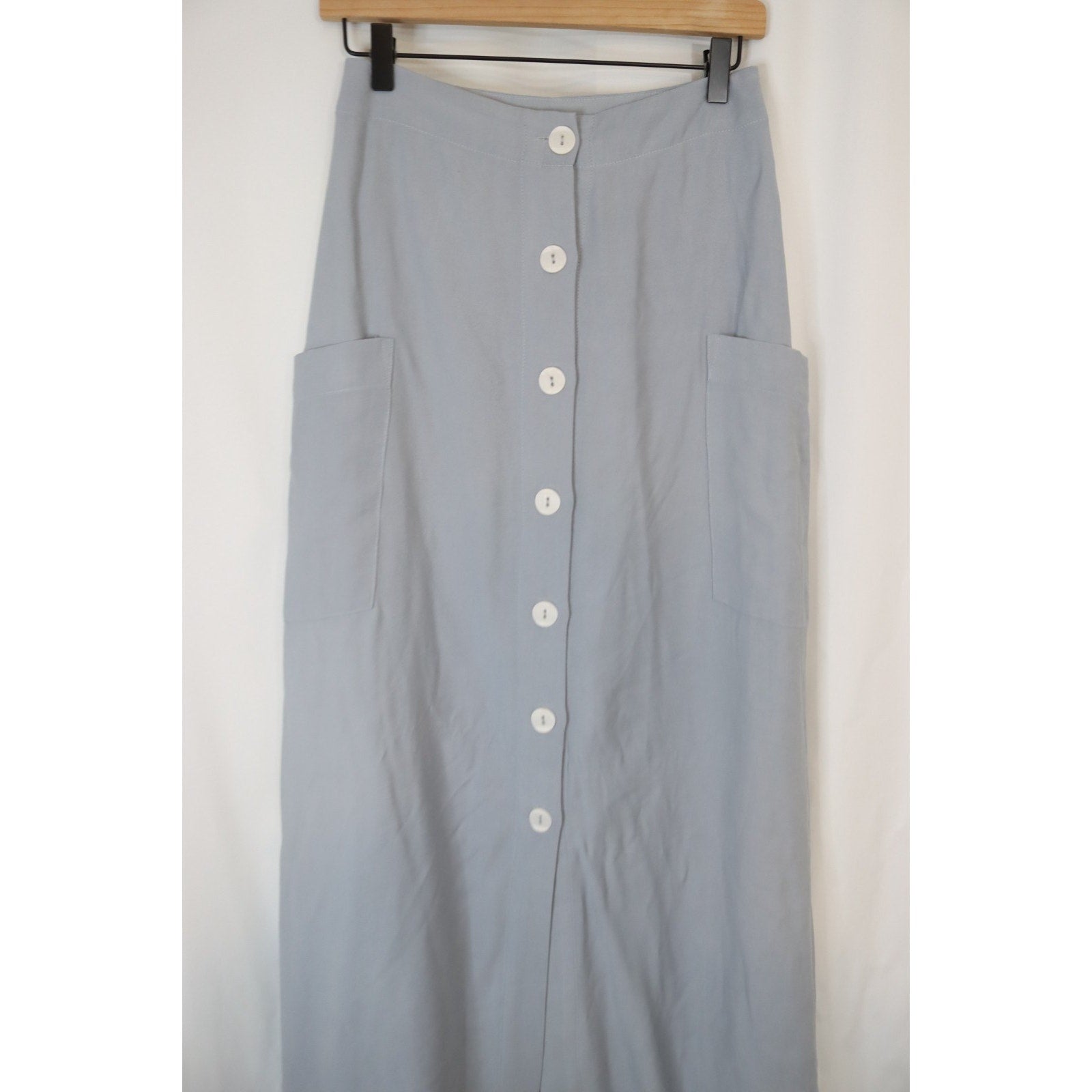 The Promesa Small Maxi Skirt is a stylish and versatile piece perfect for casual occasions during the summer and spring seasons. Made from a blend of polyester and rayon, this blue skirt features a solid pattern with a button-down detail and slit accents, adding a touch of bohemian and 90s flair to your wardrobe. The long maxi length and regular fit make this skirt a fashionable choice for women looking for a trendy and comfortable option for their everyday outfits.