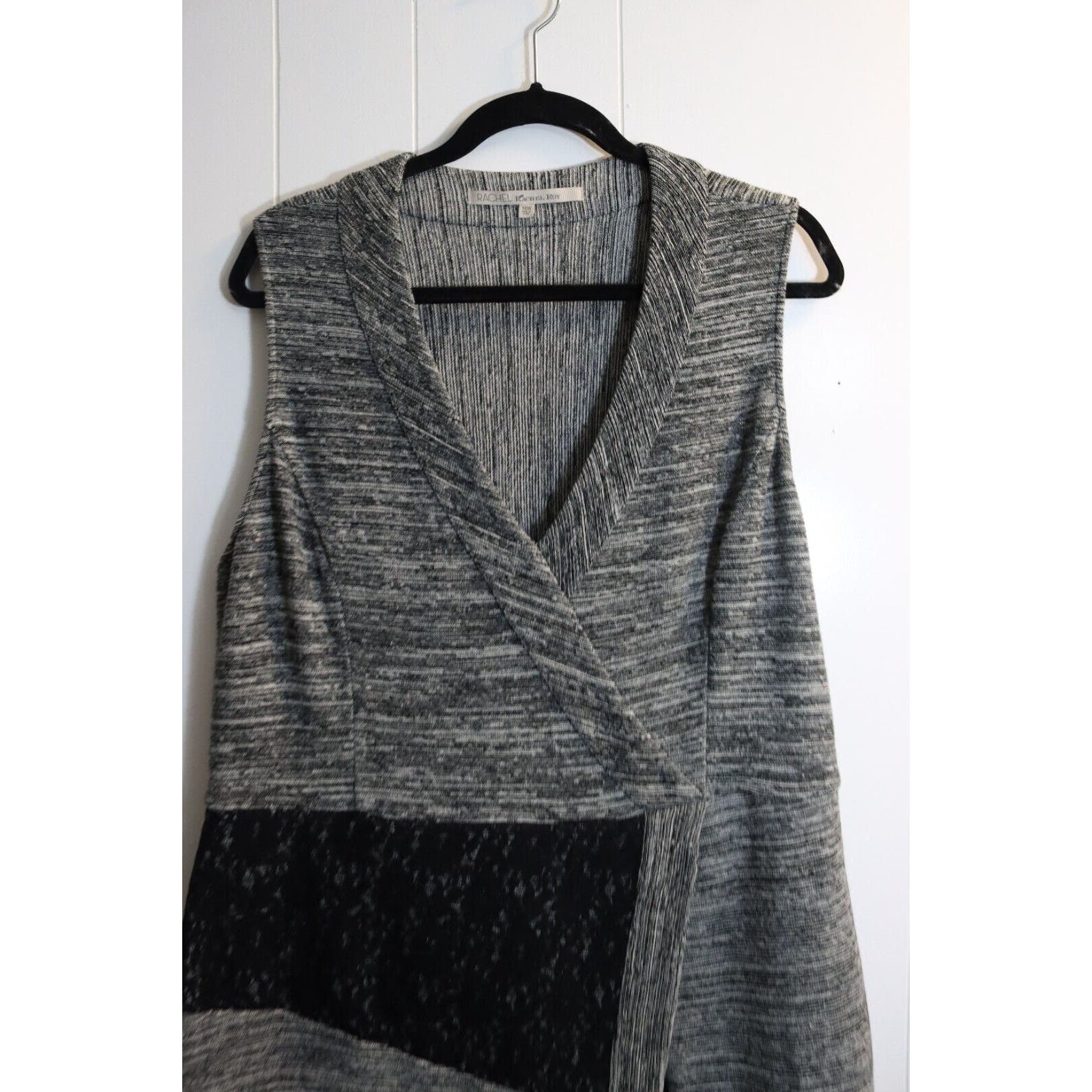 Elevate your wardrobe with this stunning Rachel Roy dress in size 16. The sleeveless faux wrap dress features a flattering V-neckline and a beautiful gray color with black accents. Perfect for any occasion, this dress can be dressed up for a party or worn casually for work or a day out. Crafted from a blend of polyester, cotton, wool, and acrylic, this dress is perfect for the summer, fall, and spring seasons. The short length and stylish wrap design make it a versatile addition to any wardrobe. Don't miss out on this wardrobe staple.