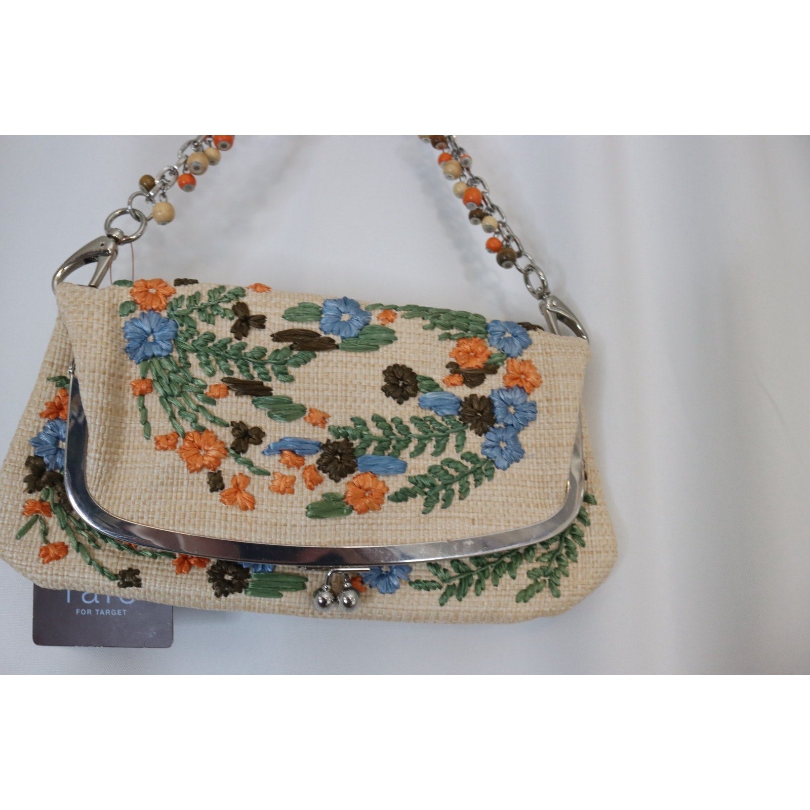 The Rafe for Target Straw Embriodery Shoulder Bag is a stylish and trendy accessory for women. Made from natural straw material with metal/bead accents, this brown shoulder bag features colorful multicolor lining and intricate embroidered details. With a beachy and bohemian theme that brings back 90s vibes, this lined bag is perfect for adding a touch of personality to any outfit.