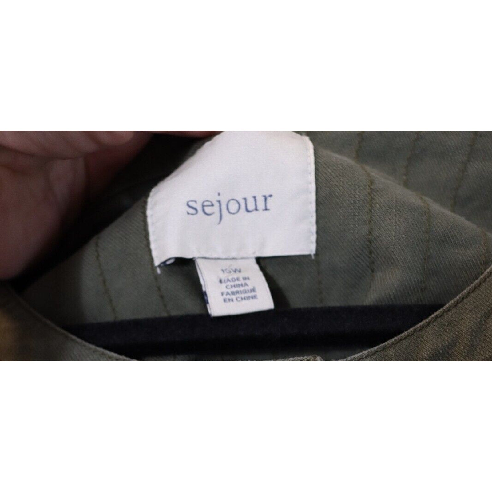 This Sejour blouse is a must-have for any wardrobe. With a solid pattern and long sleeves, it's perfect for casual occasions. The button closure adds a touch of sophistication, while the cotton material ensures comfort. This blouse is available in size 16W and comes in a beautiful green color. The blouse is from a well-known brand, Sejour, and is plus-sized. It's a basic style top that can be personalized to fit your style. Overall, this is a great addition to your wardrobe.
