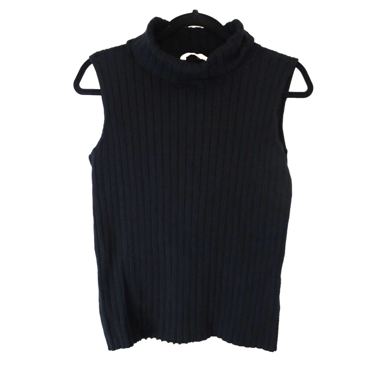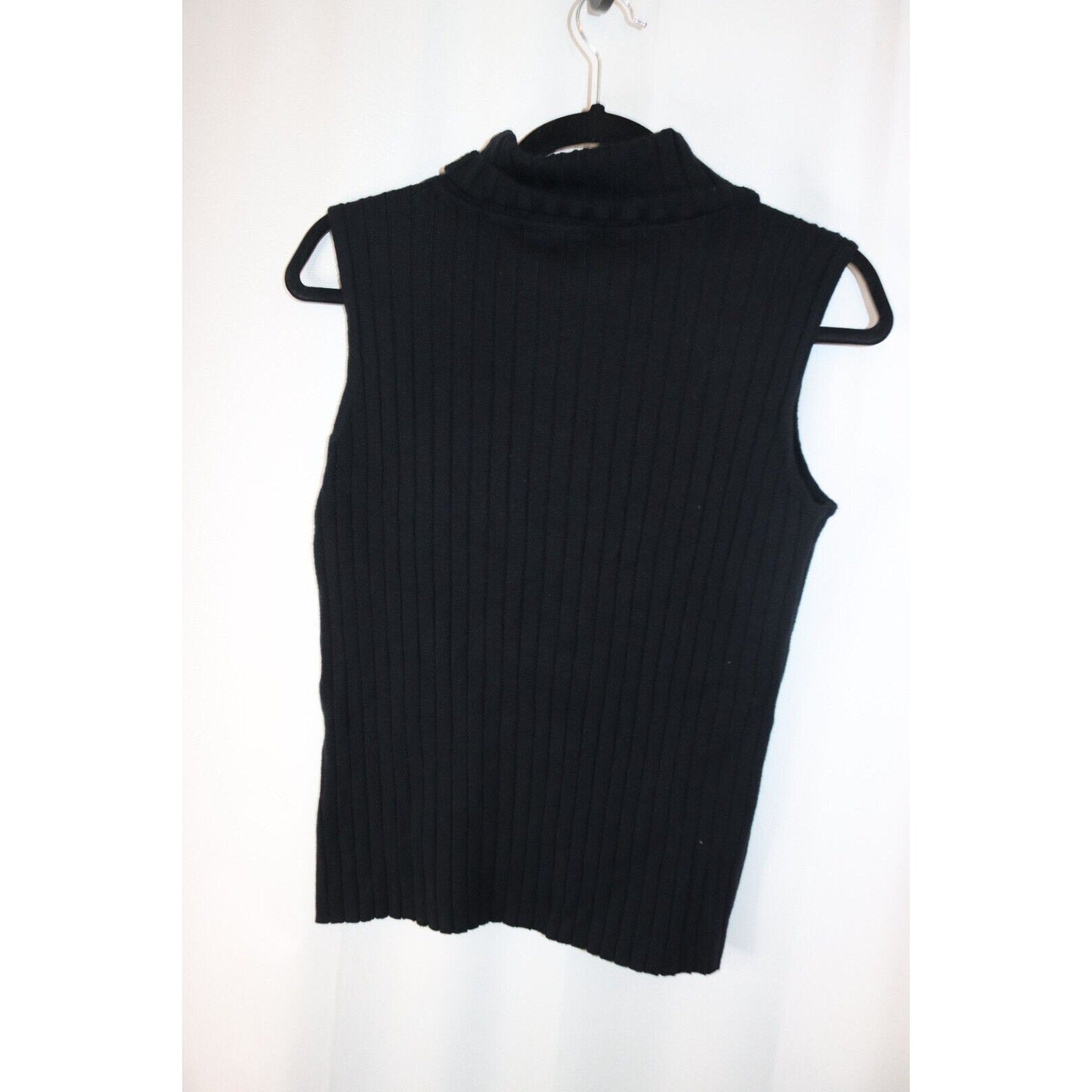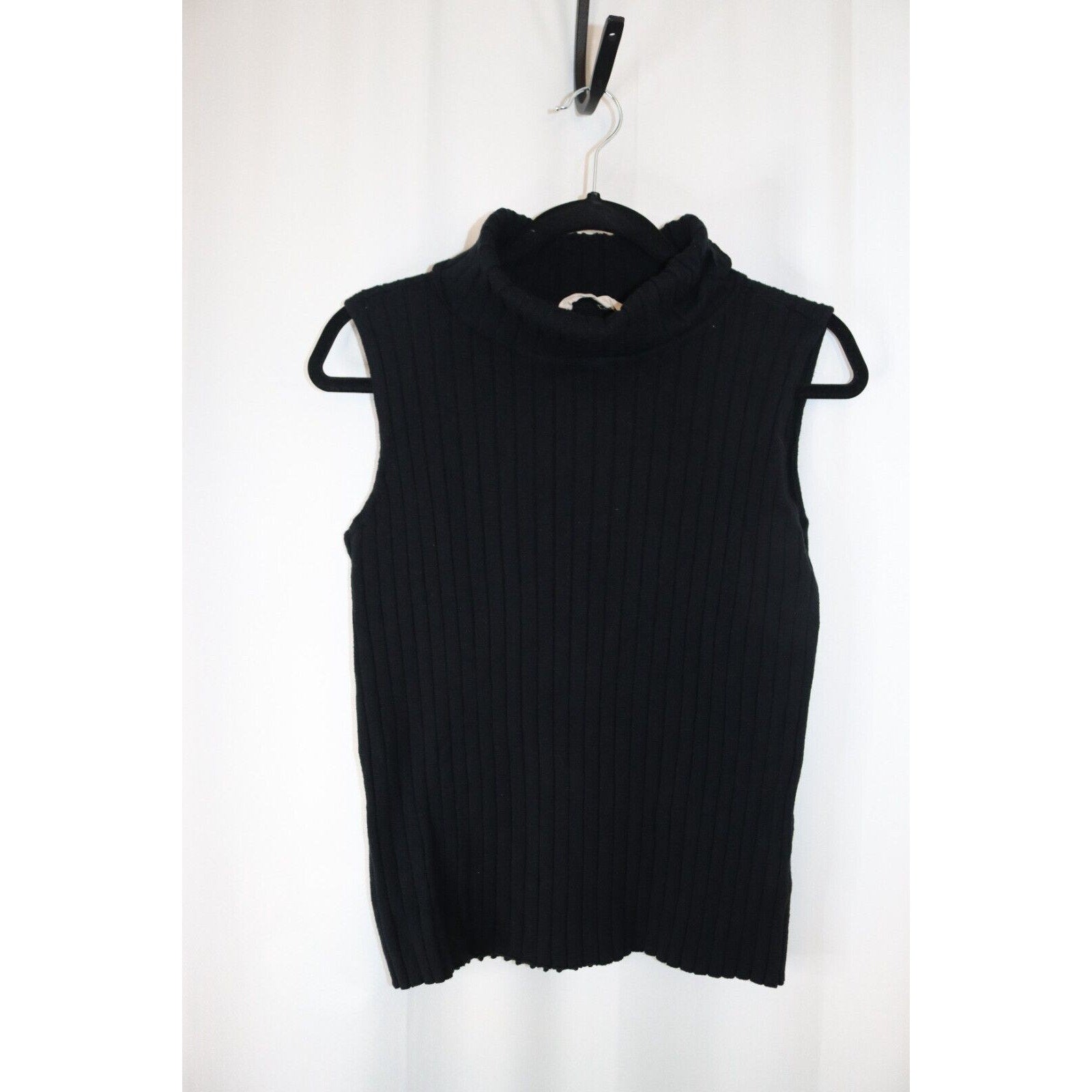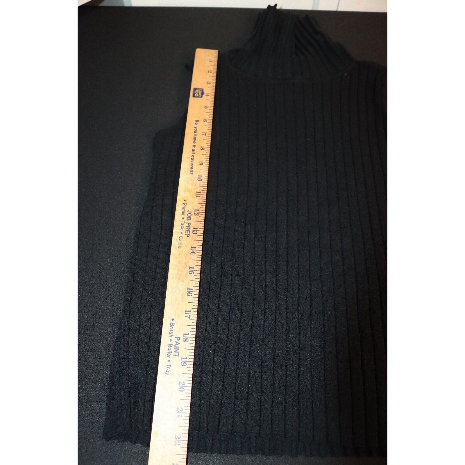 This is a black sleeveless turtleneck top by Soft Surroundings, in size Small. It is a solid tank top, suitable for various occasions like travel, parties, work, and casual wear. The top has a pullover closure and is designed for women. The style is basic, making it versatile for different seasons like winter, fall, and spring.