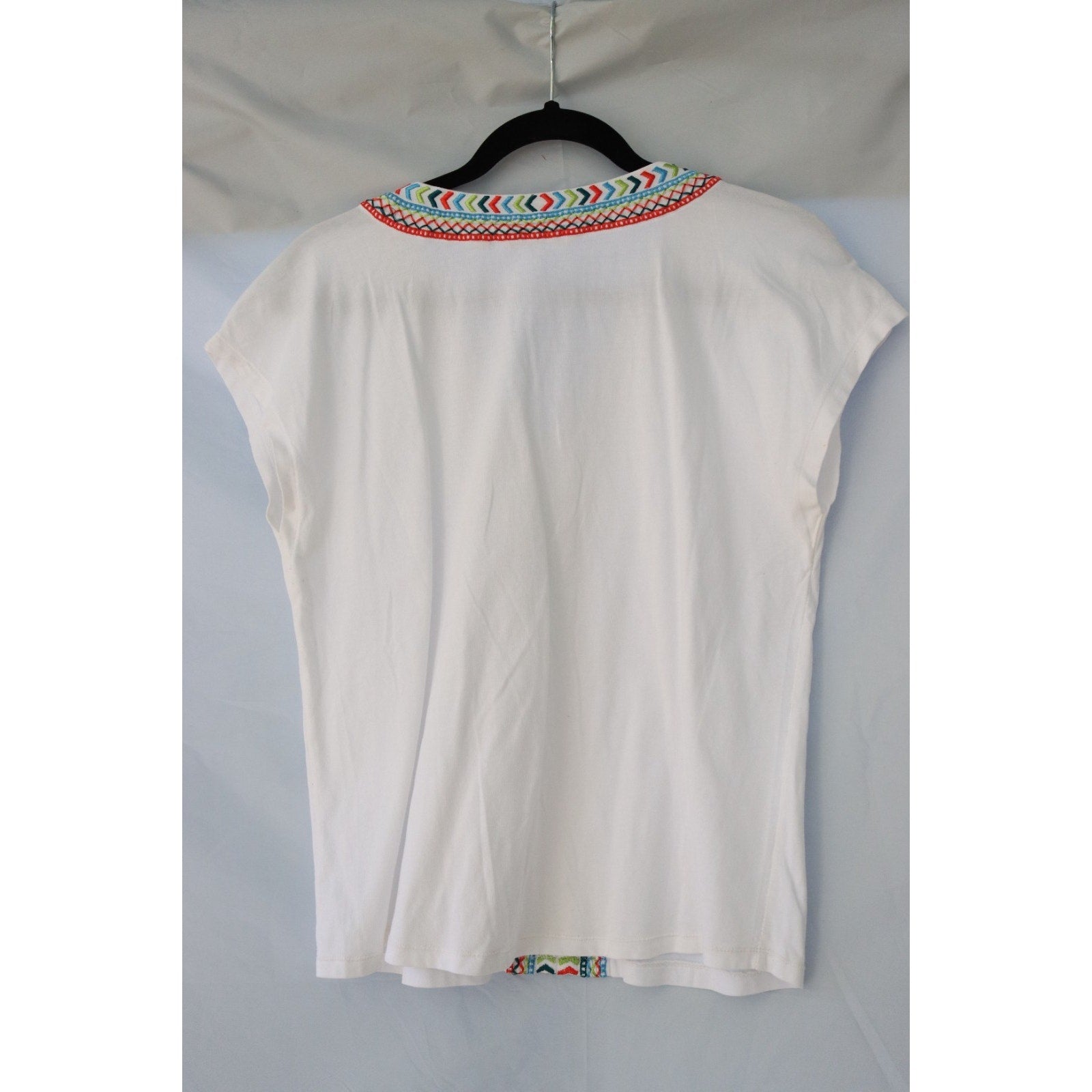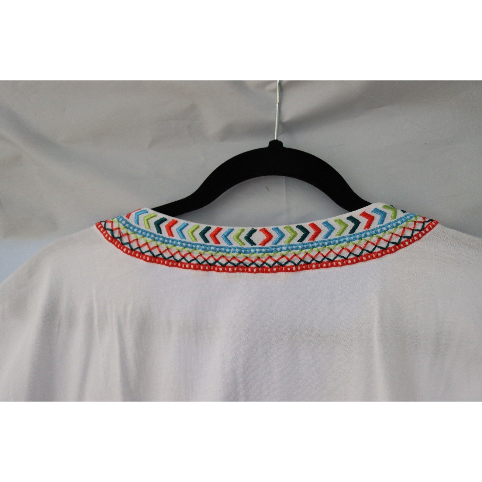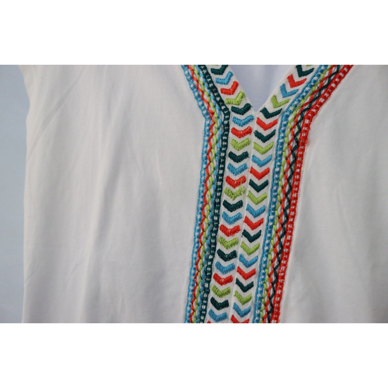 This Soft Surroundings white short sleeve top in size small features delicate embroidered accents, making it a stylish and comfortable option for casual occasions during the summer and spring seasons. The V-neckline adds a subtle touch of sophistication, while the pullover closure makes it easy to wear. With a solid pattern and classic style, this blouse is a versatile addition to any woman's wardrobe, offering a regular fit for a flattering silhouette.