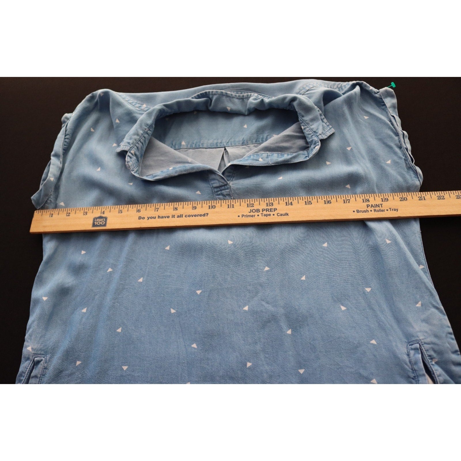 The Thread and Supply Light Denim Dress in size Small is a stylish and versatile piece made of lyocell material. Featuring a geometric pattern, short sleeves, a V-neckline, and a pullover closure, this dress is perfect for casual occasions during the summer and spring seasons. The short dress length adds a trendy touch, while the inclusion of pockets adds both functionality and style. Ideal for women looking for a comfortable and chic shirt dress option in a classic blue color.
