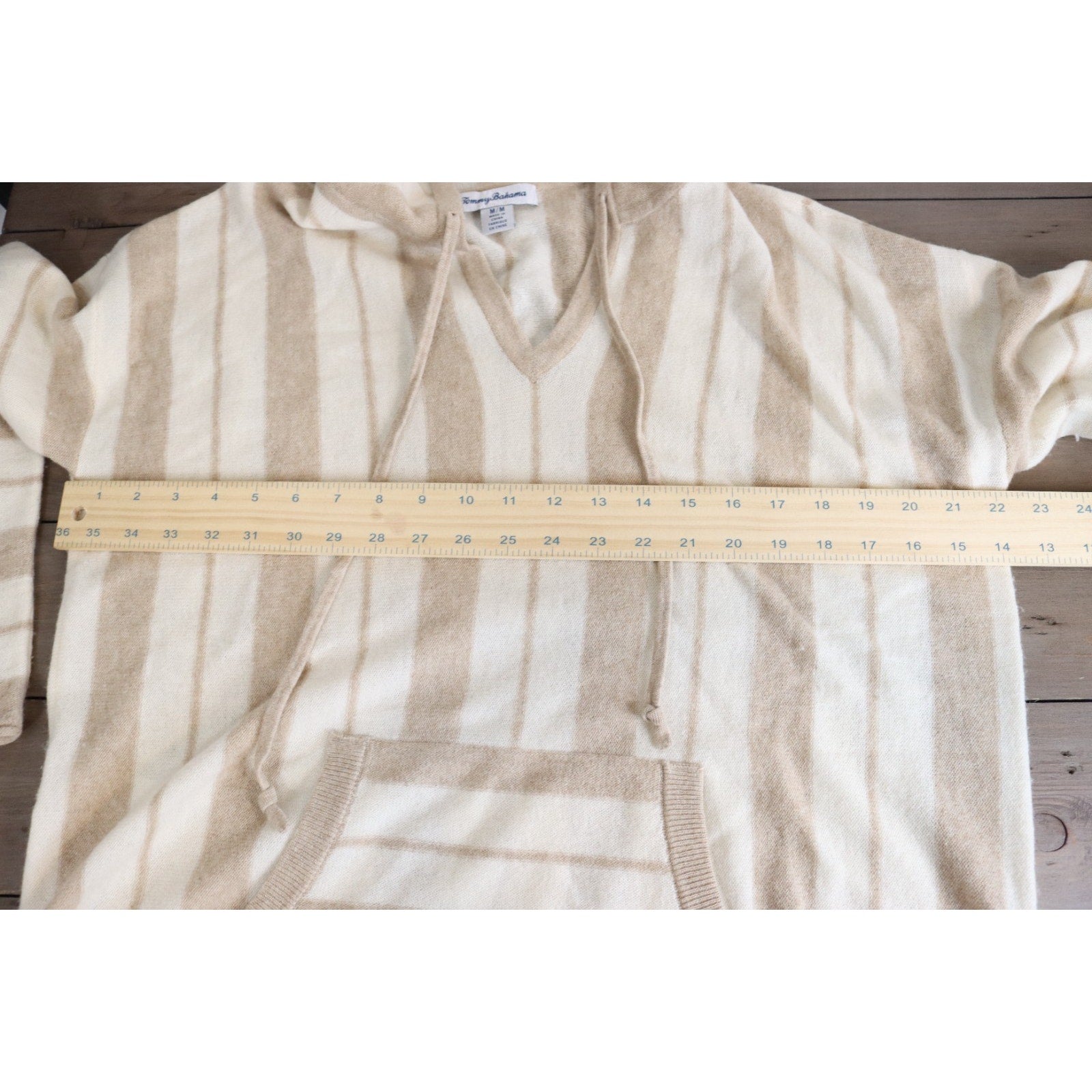 The Tommy Bahama Medium Wool Cashmere V Neck Long Sleeve Hoodie is a stylish and cozy sweater perfect for casual occasions during the winter, fall, and spring seasons. Made from a blend of cashmere and wool, this lightweight pullover exudes a chic and comfortable vibe. The classic V-neck design and long sleeves add a touch of sophistication, while the beige color adds a versatile and timeless appeal. This sweater is a must-have for women looking to stay warm and fashionable in colder weather.
