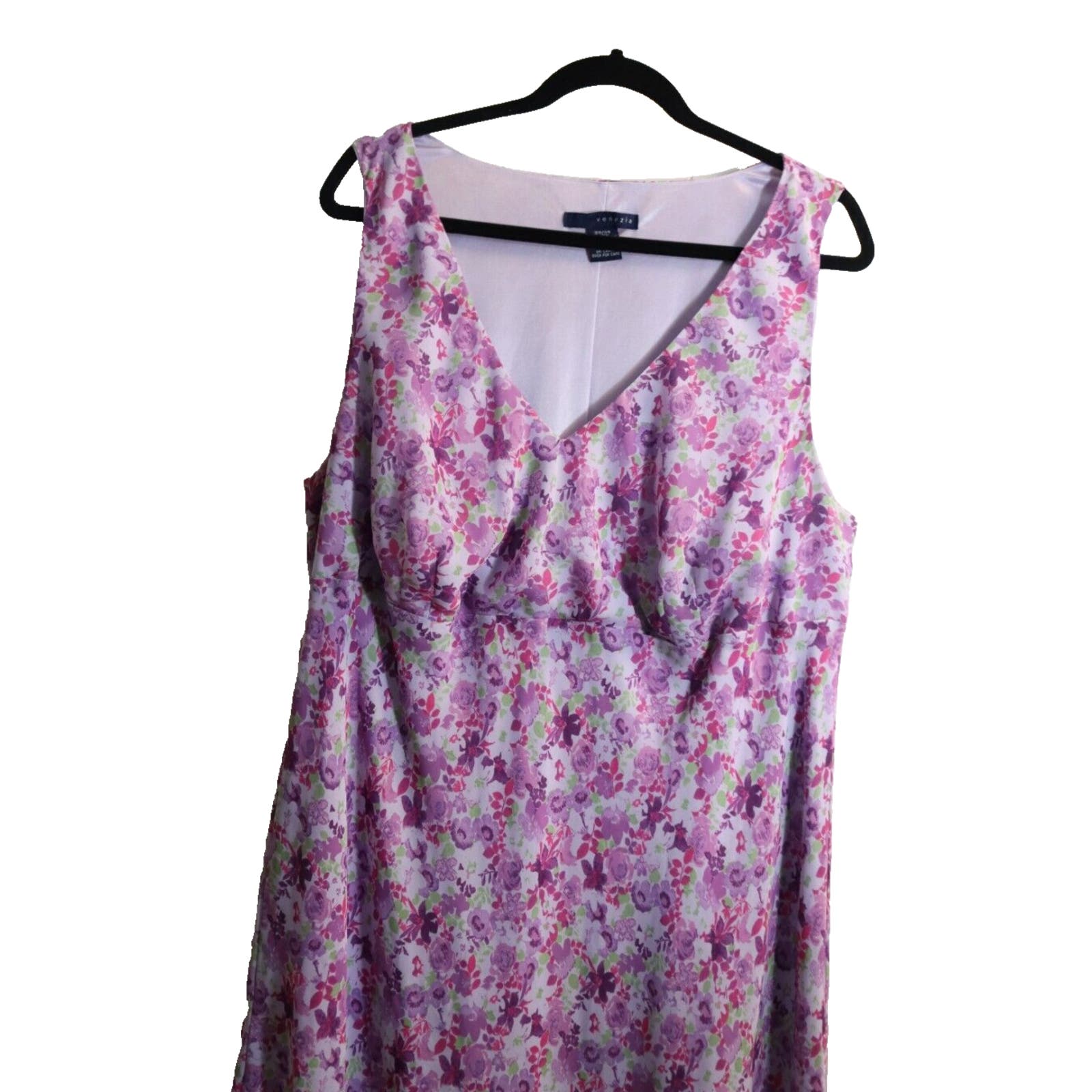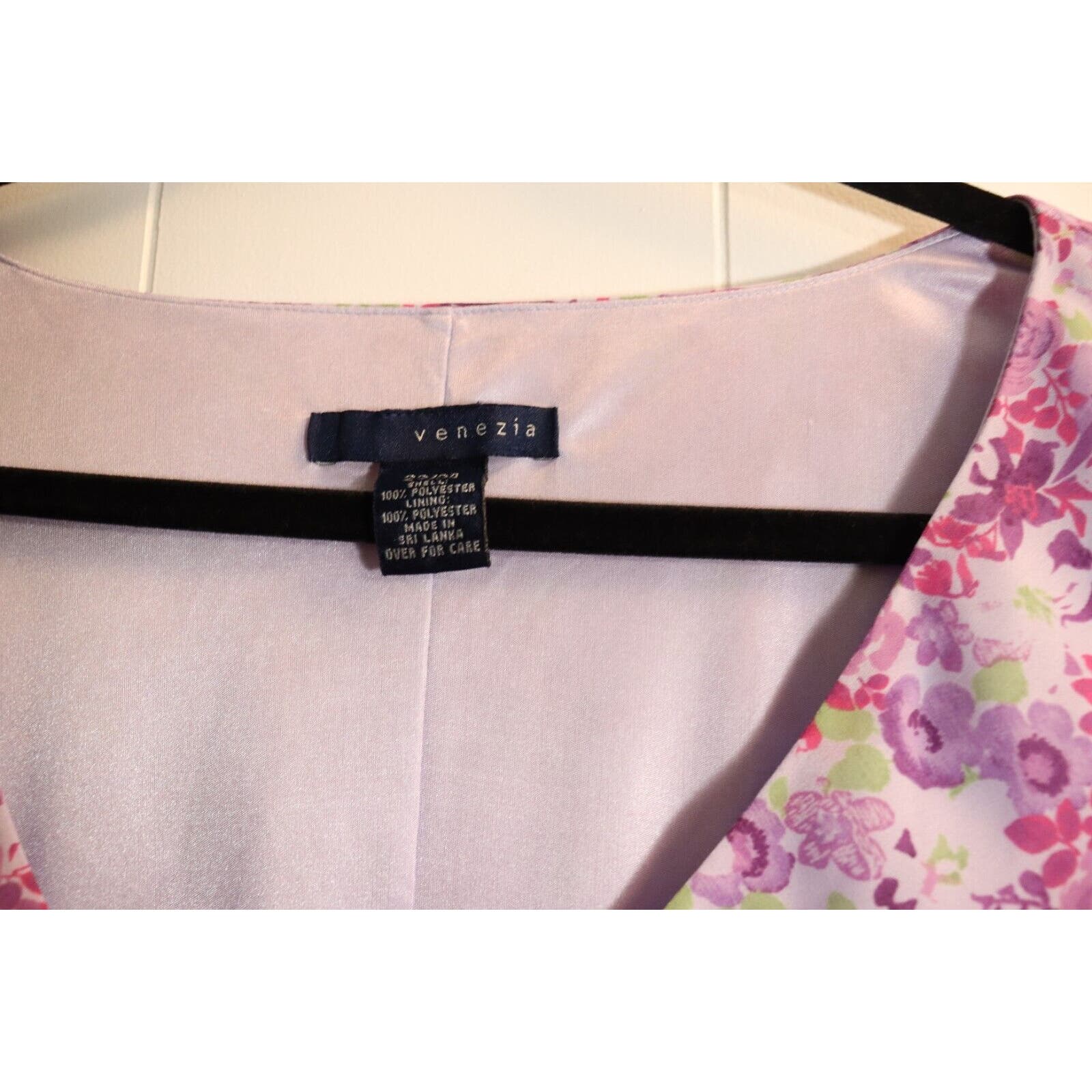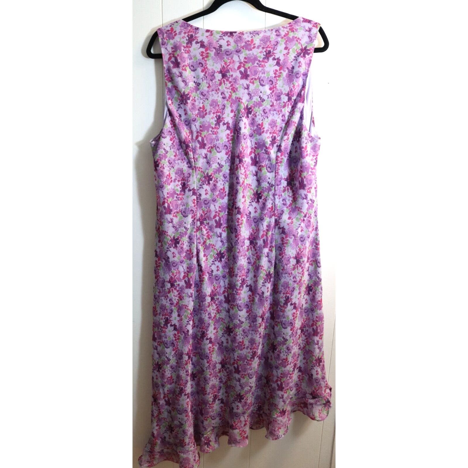 This beautiful floral dress in a stunning shade of purple is perfect for any occasion, from parties to casual outings. It features a V-neckline and sleeveless design, with a ruffle hem that adds a flirty touch. The dress is made of high-quality polyester material and has a pullover closure for easy wear. The knee-length to mid dress has a fit and flare style that is sure to flatter any body type. It is fully lined and has accents like delicate flowers for an added touch of elegance. The dress is perfect for the spring and summer seasons, and comes in a plus size to fit women of all shapes and sizes. Get ready to turn heads with this gorgeous dress from Venezia!