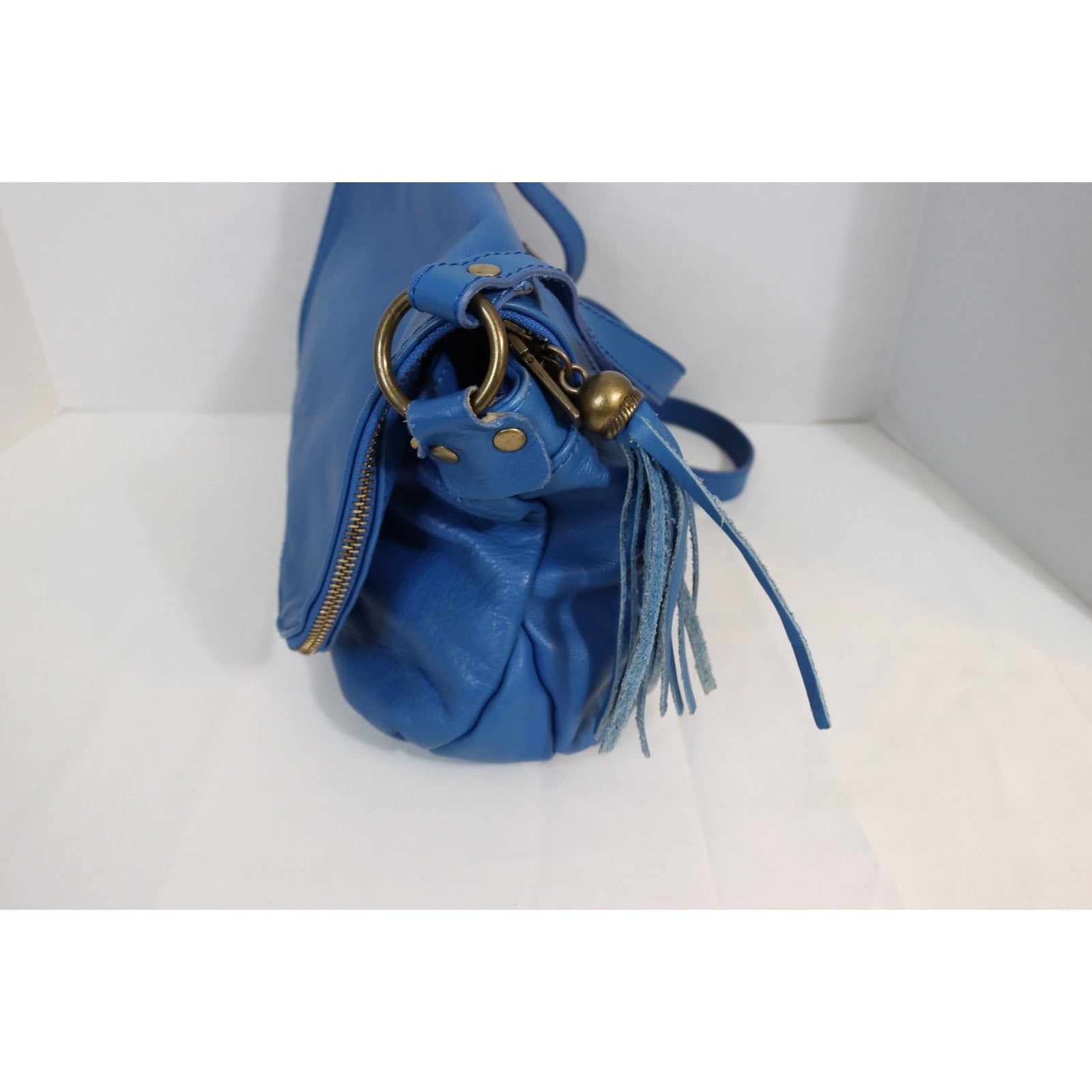 The Vera Pelle Blue Crossbody Adjustable Fold Over Zip is a stylish and practical handbag made in Italy. Crafted from leather with a solid blue exterior, this crossbody bag features a zip closure and tassel accents for added flair. The adjustable crossbody strap in blue leather adds a touch of sophistication, making it perfect for any occasion. Ideal for women who appreciate Italian craftsmanship and timeless design, this Vera Pelle bag is a versatile accessory that can easily elevate any outfit.