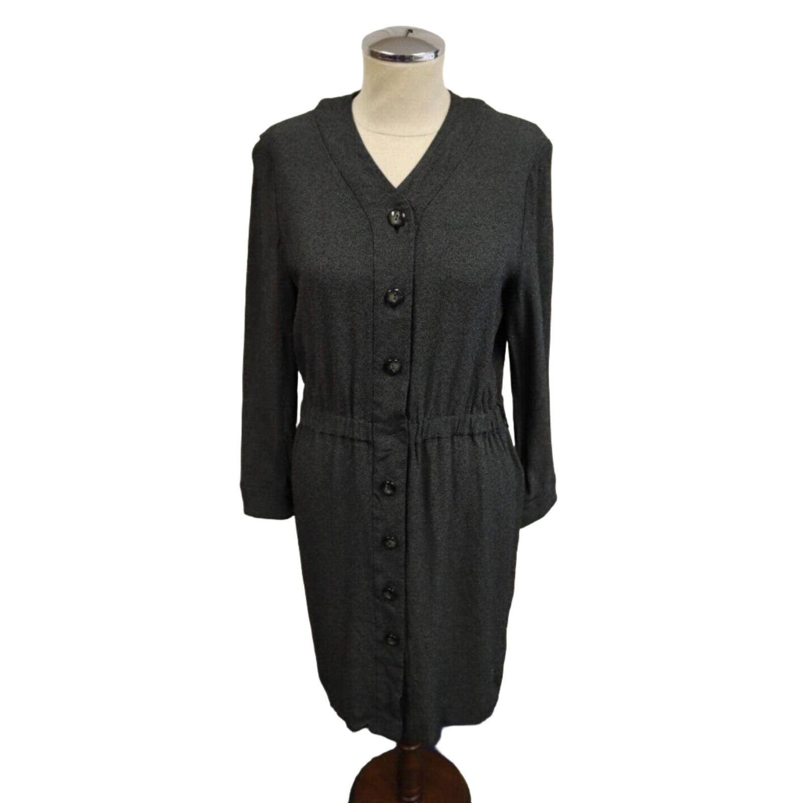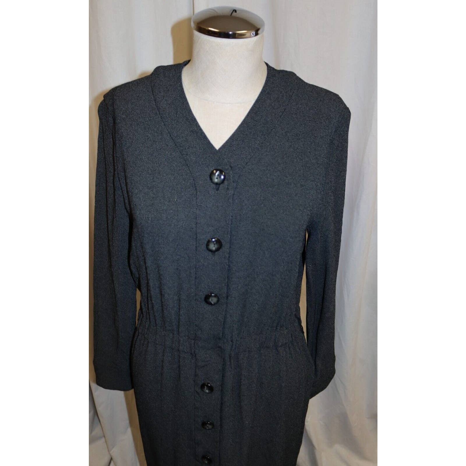 Introducing the Vintage Linda Allard Ellen Tracy Dress – a timeless button-down gray dress in a size 6 that epitomizes sophistication and classic style. Crafted with meticulous attention to detail, this dress captures the essence of vintage elegance that has stood the test of time.