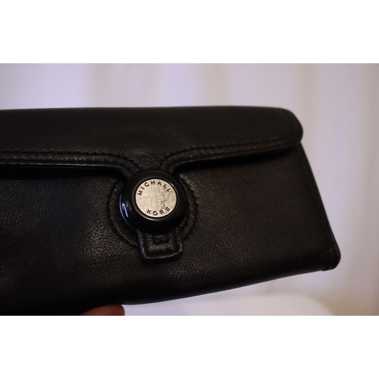 This Vintage Michael Kors Black Wallet is a stylish and practical accessory for women. Made from leather, this solid black wallet features a zip closure and multiple credit card slots, perfect for keeping your essentials organized. The design adds a touch of nostalgia to your look, making it a versatile piece for any outfit. Ideal for travel or everyday use, this Michael Kors wallet is both functional and fashionable.
